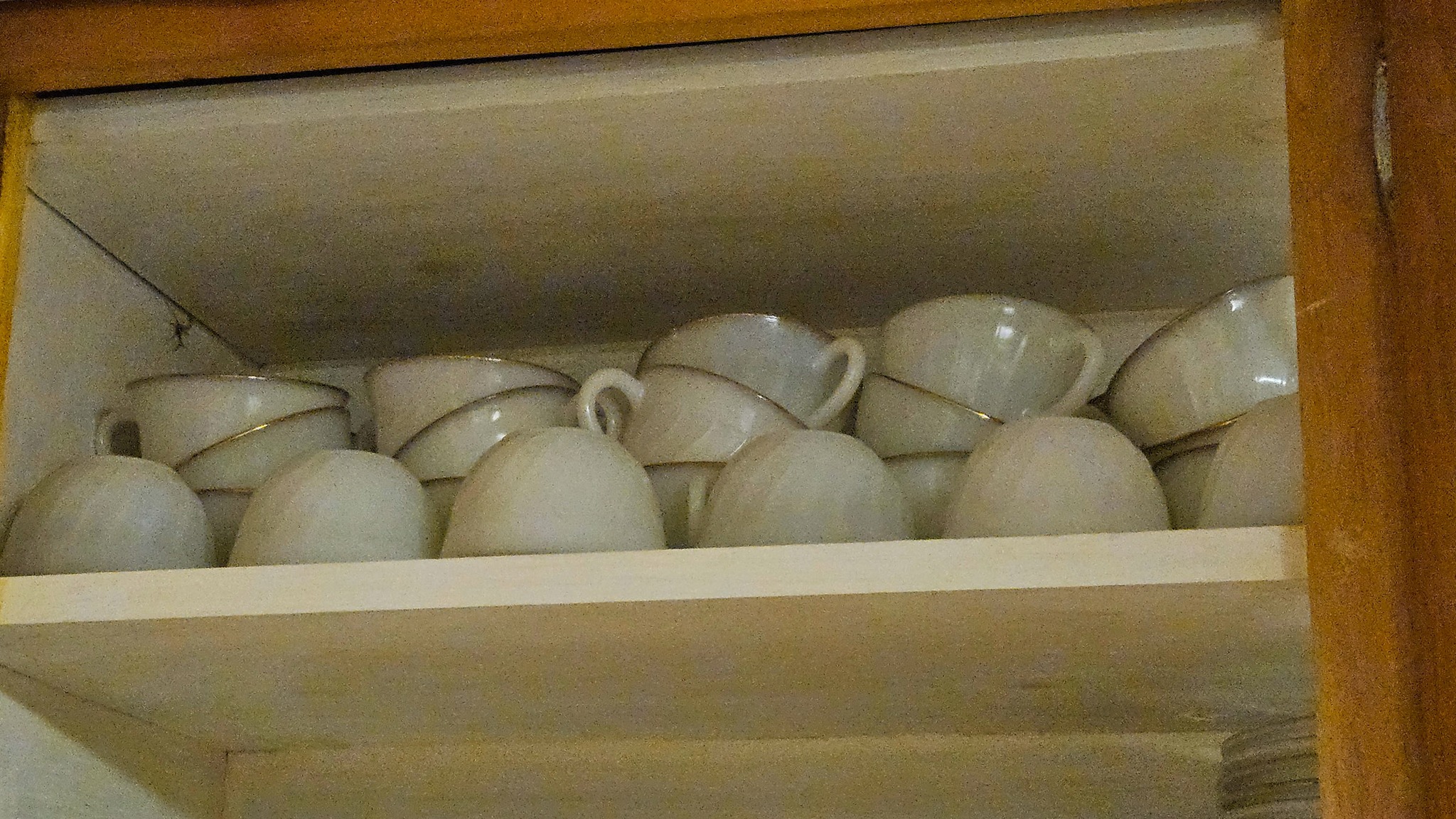 Lots of gold rimmed dishes (plates, saucers, cups & bowls)