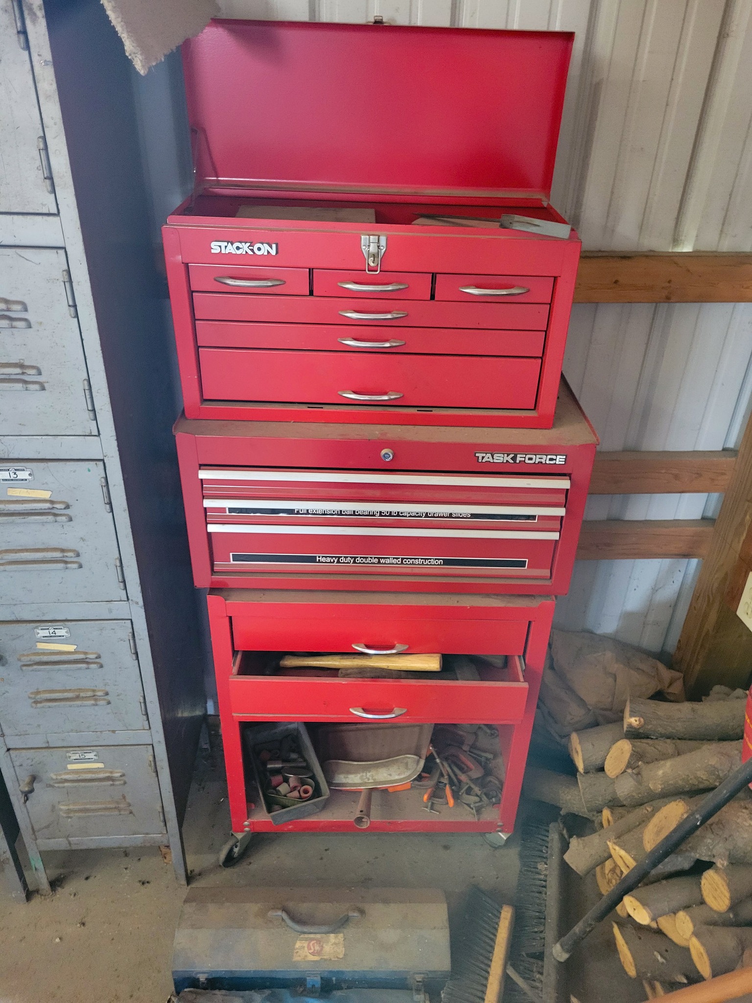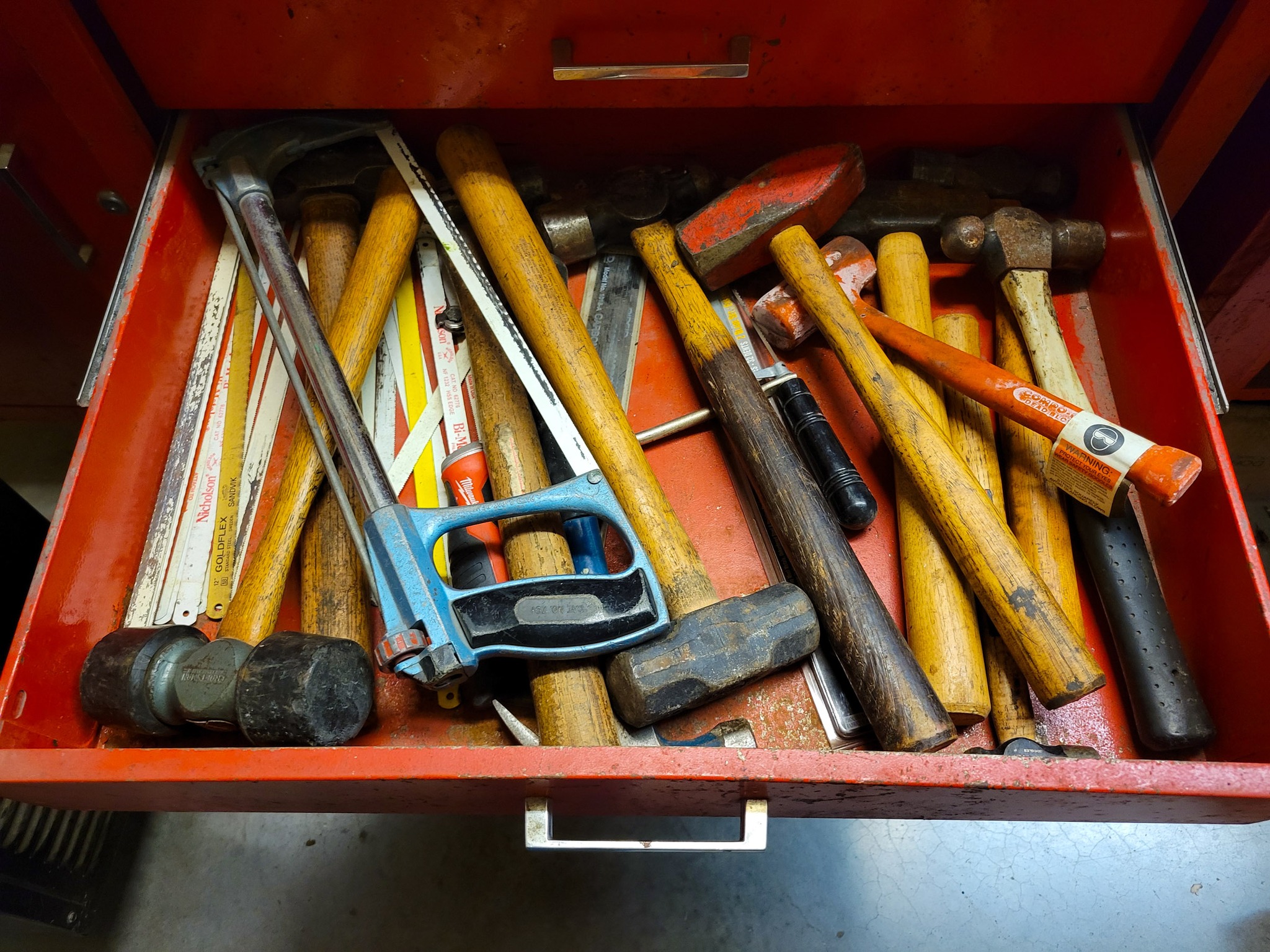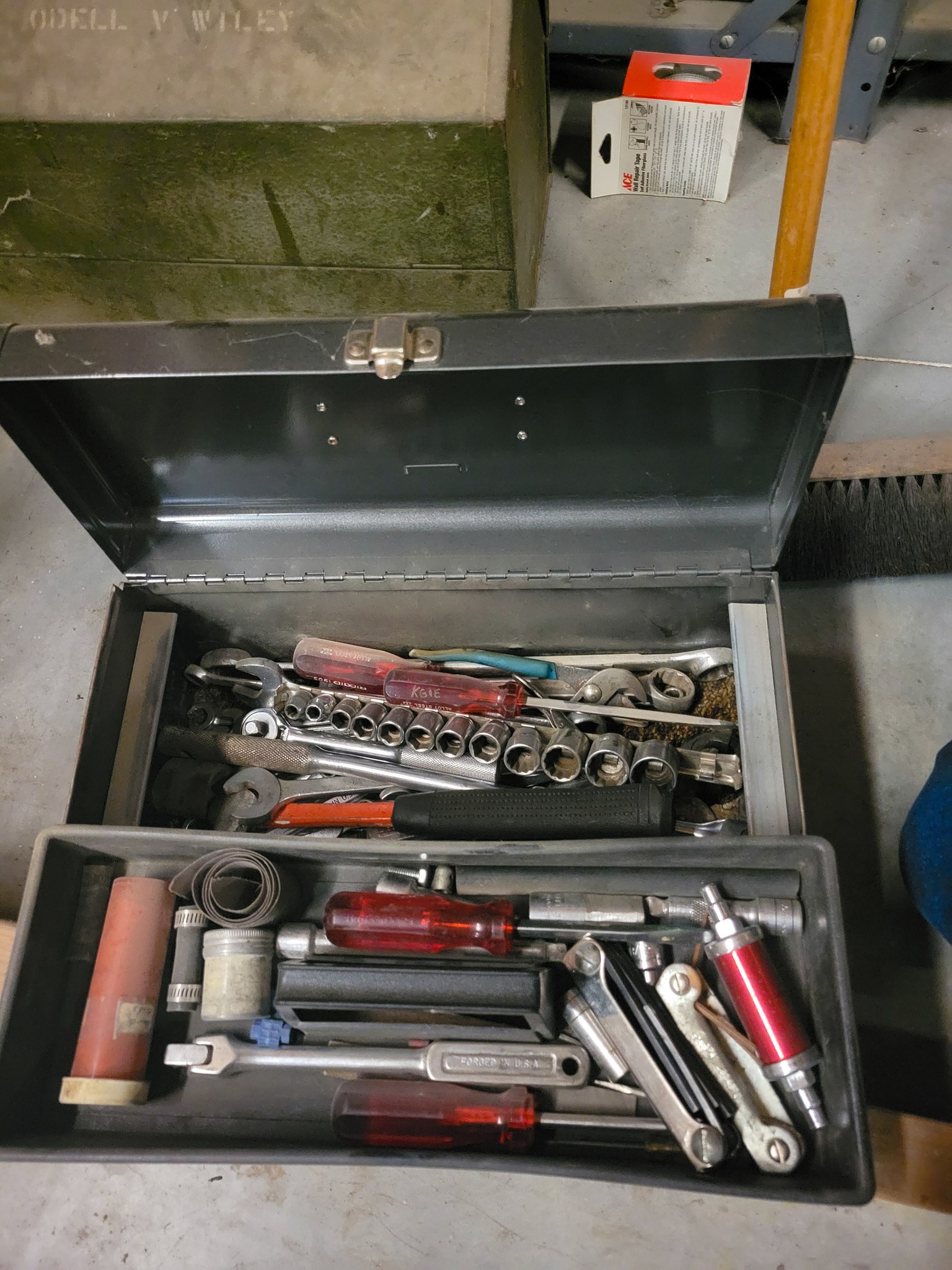 Craftsman: ½ in break over bar, 3 / 8 drive ratchets, open end wrenches 5 / 16- 1 5 / 16, tubing wrenches, sockets, 15" drill press.