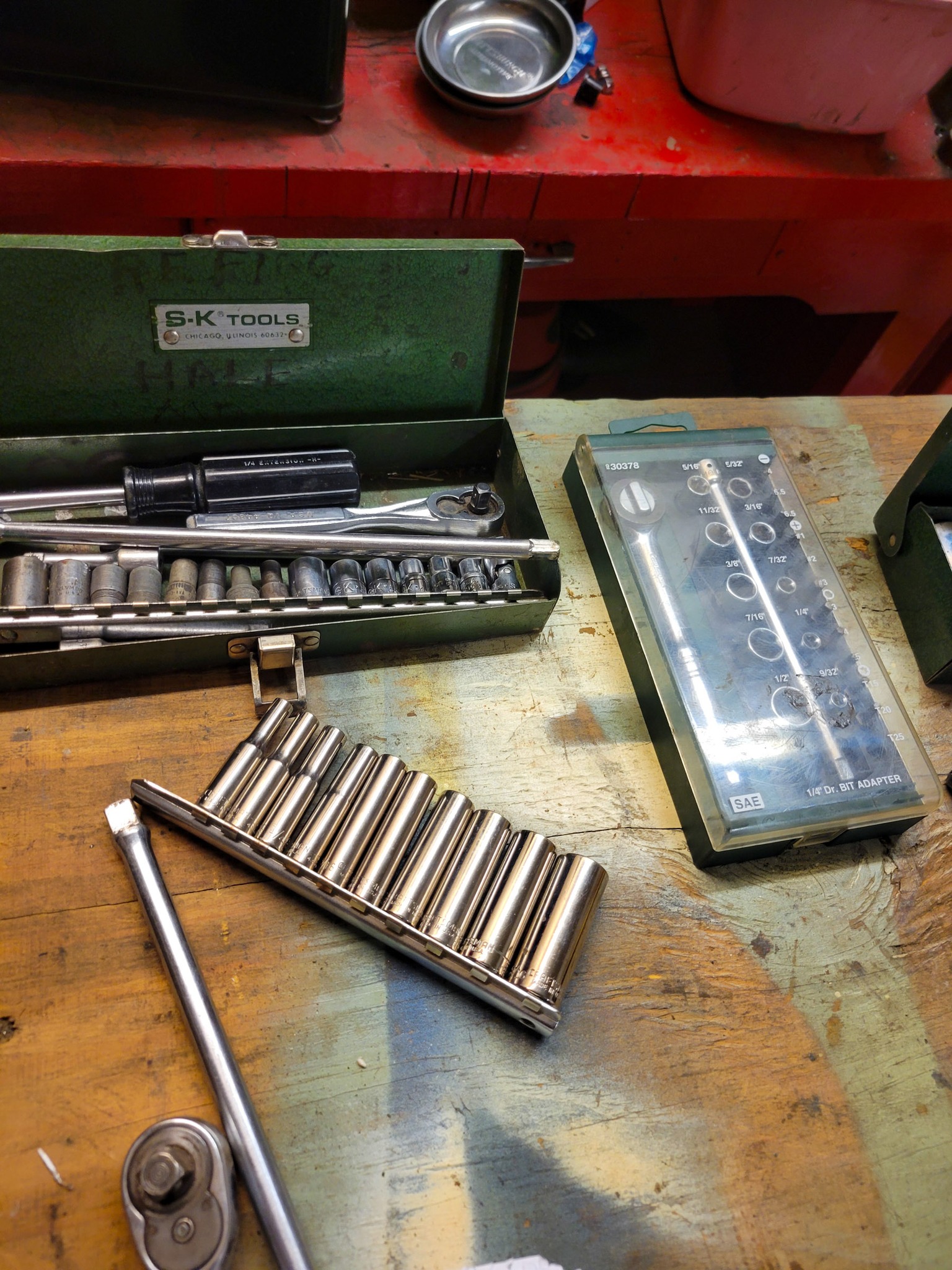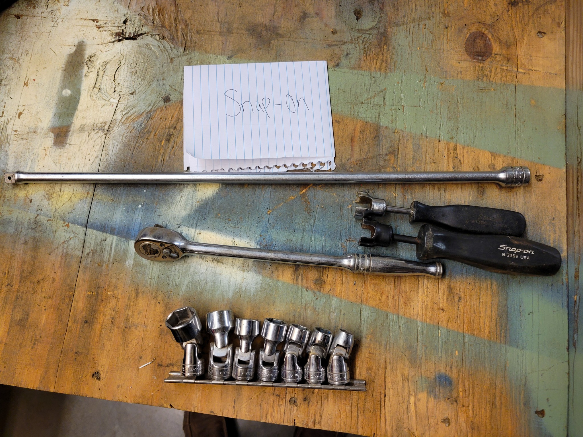 Snap-on: standard swivel socket, Allen head sockets, ratchet.