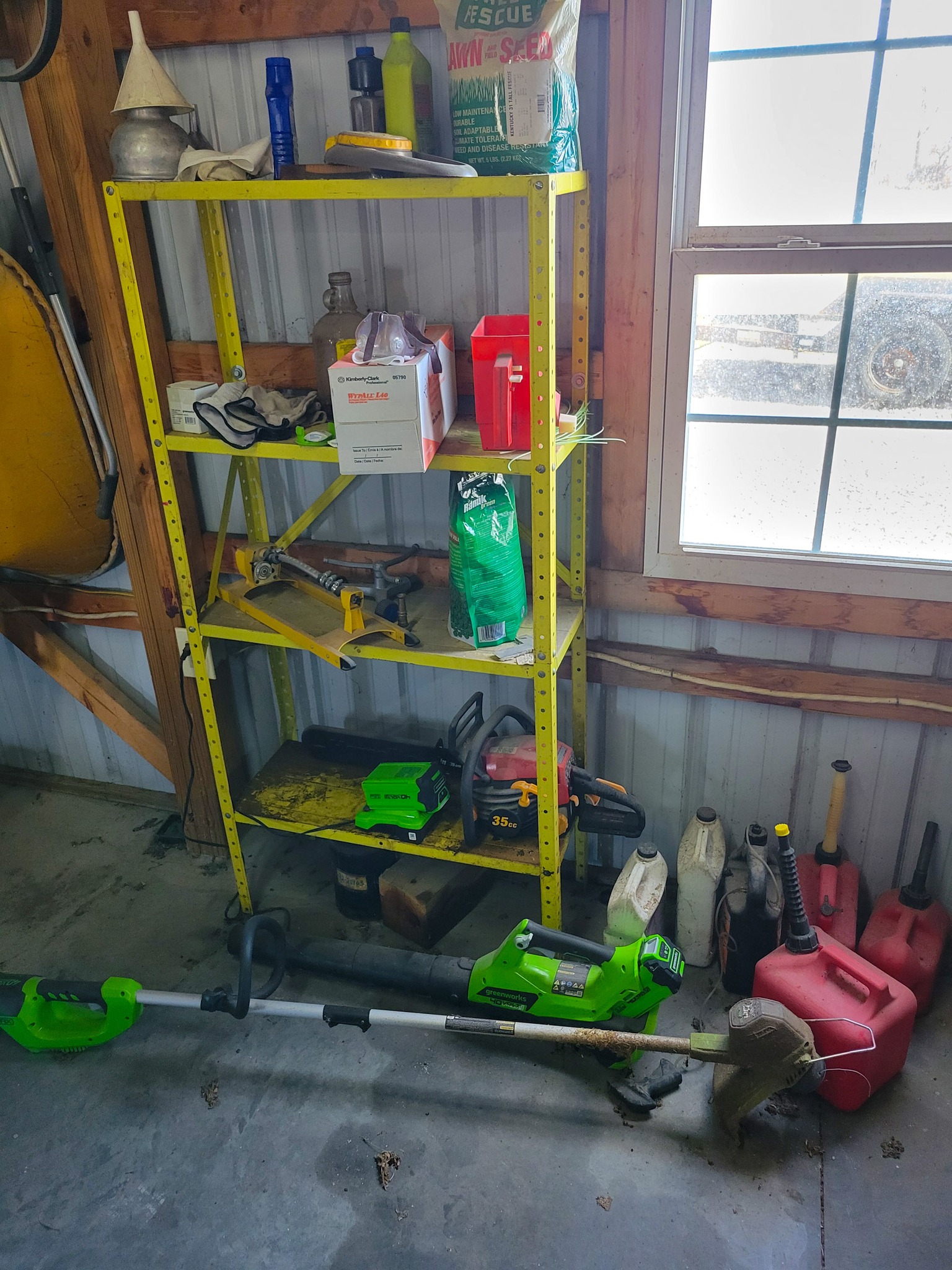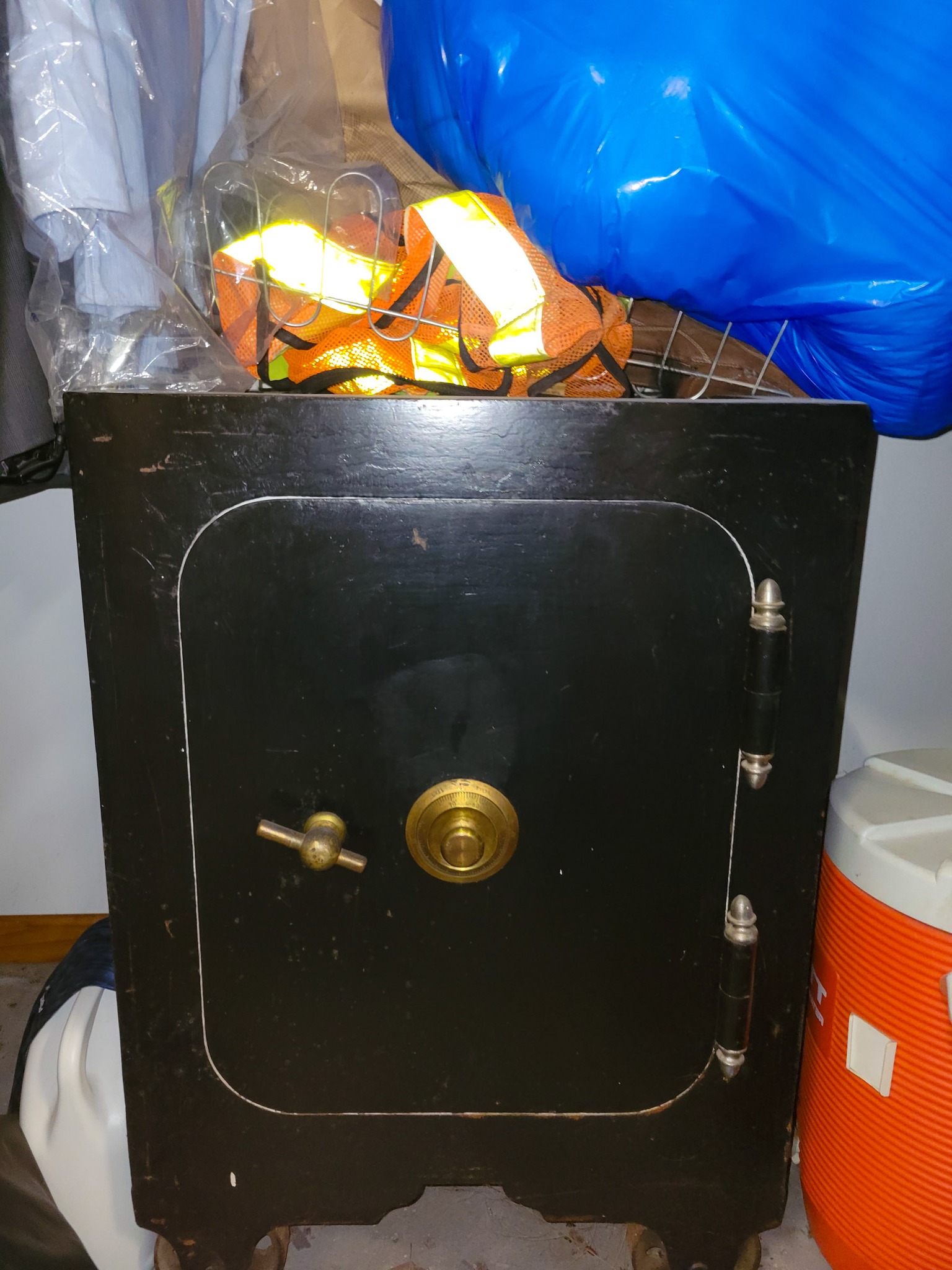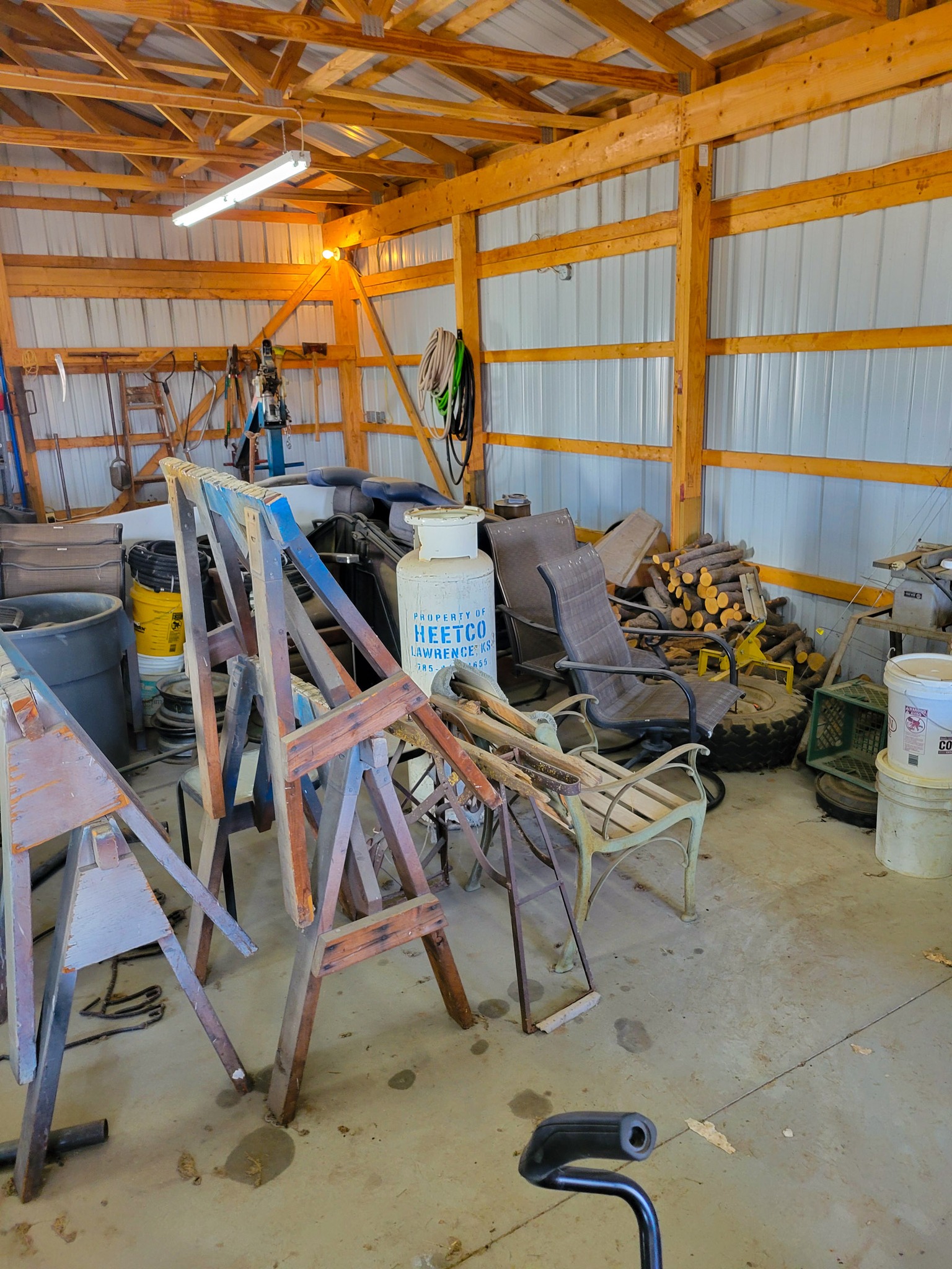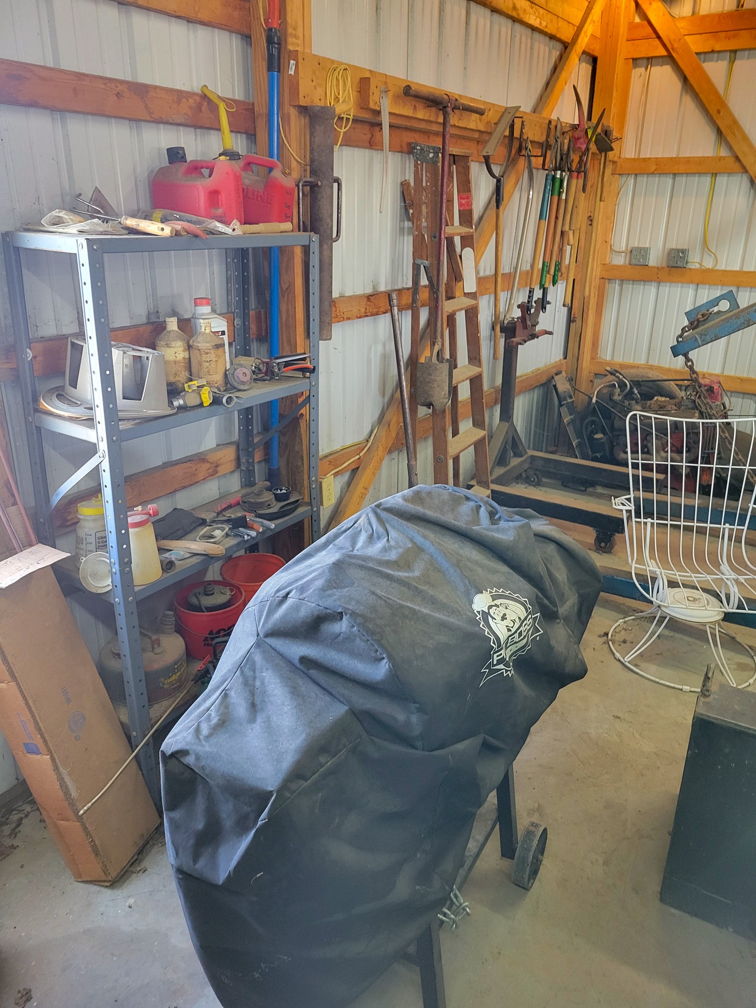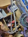 Household / Jewelry equipment / Outdoor: mail box stand, Coleman cooler, camping cot, 6 chairs 2 leaf kitchen table, Card table x 4 chairs, Jewelry tool bench, wagon, TV Stand, Recliner, lawyers Book case, house hold stuff, Cooking and kitchen items, storage totes, space heaters, household decorations, kilns for jewelry, files, Kenwood stereo and TV, jewelry buffer, patio furniture, garden tools, shovels, rakes, green work leaf blower and string trimmer, 2 old safes, salt and pepper collection(around a 100 pieces).