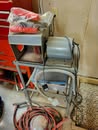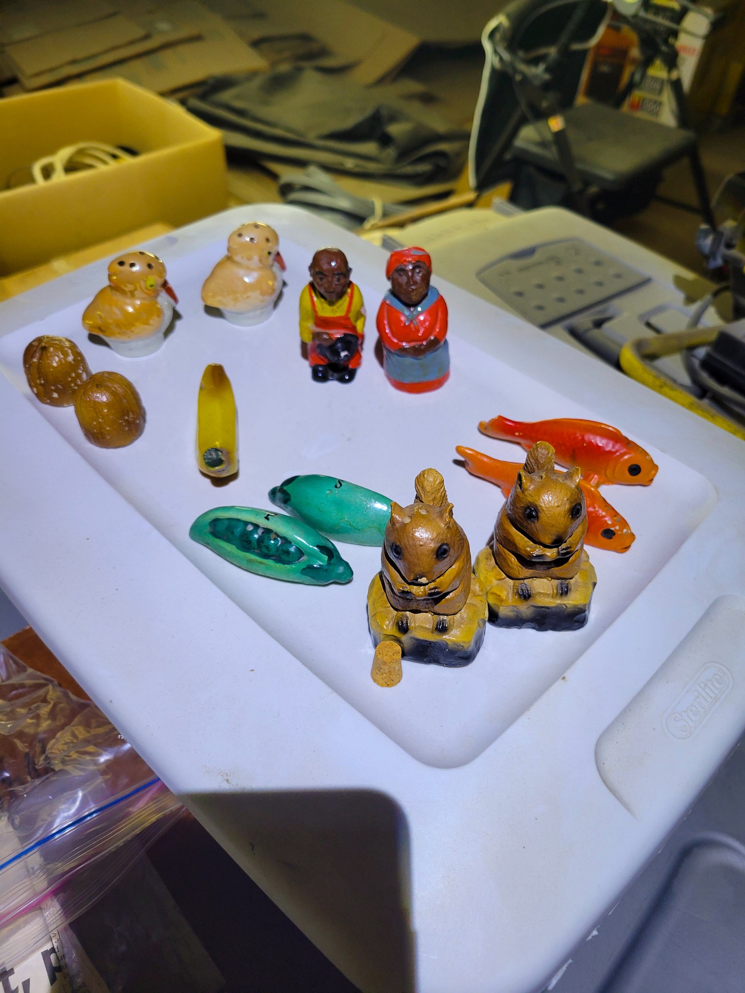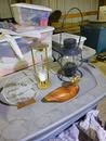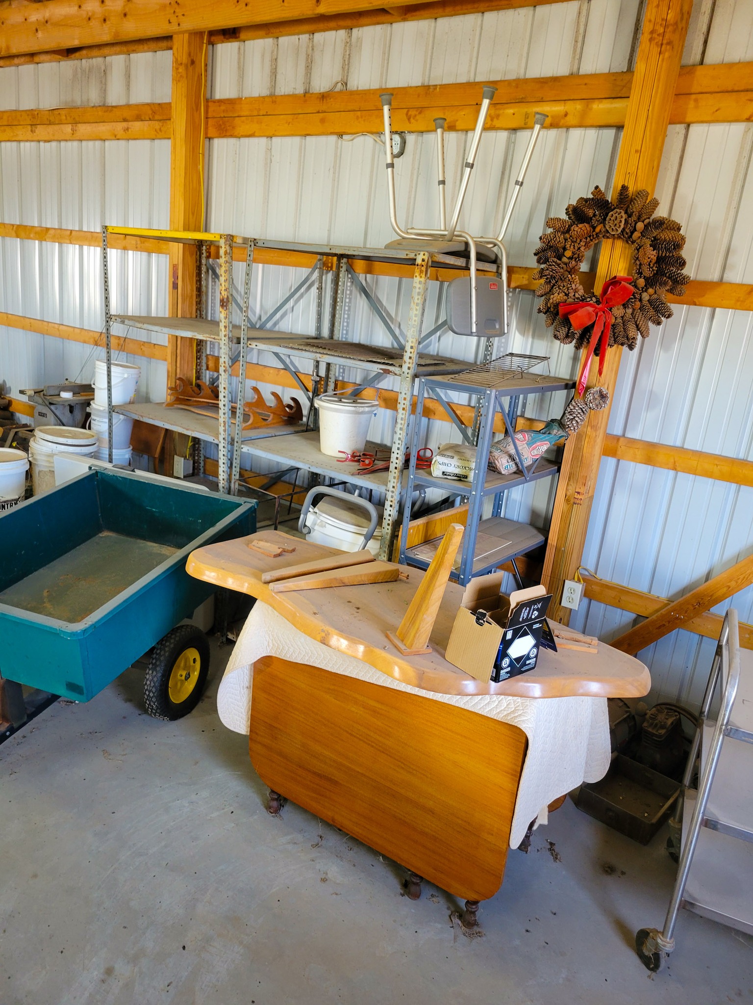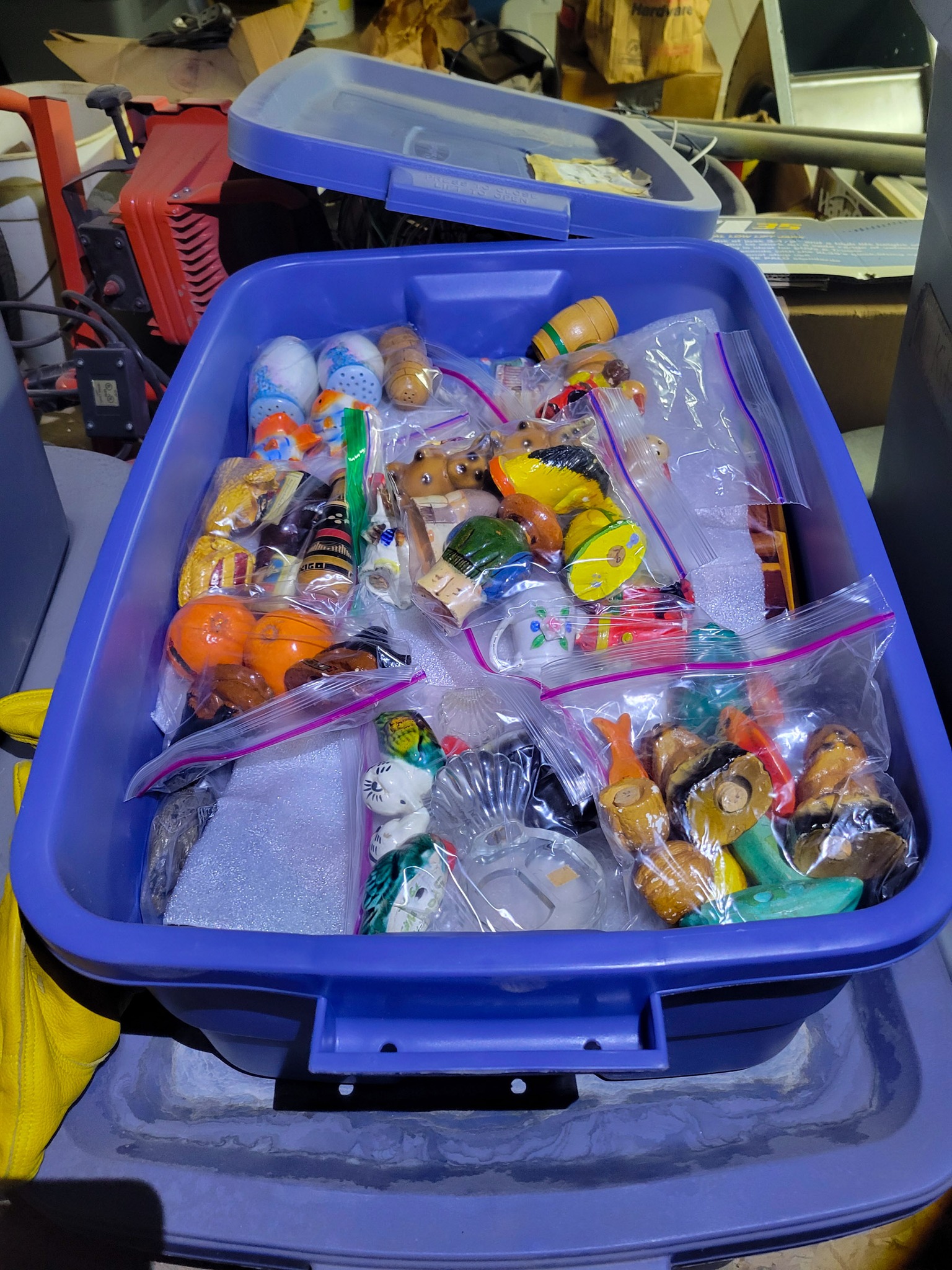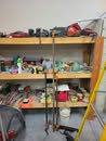 Household / Jewelry equipment / Outdoor: mail box stand, Coleman cooler, camping cot, 6 chairs 2 leaf kitchen table, Card table x 4 chairs, Jewelry tool bench, wagon, TV Stand, Recliner, lawyers Book case, house hold stuff, Cooking and kitchen items, storage totes, space heaters, household decorations, kilns for jewelry, files, Kenwood stereo and TV, jewelry buffer, patio furniture, garden tools, shovels, rakes, green work leaf blower and string trimmer, 2 old safes, salt and pepper collection(around a 100 pieces).