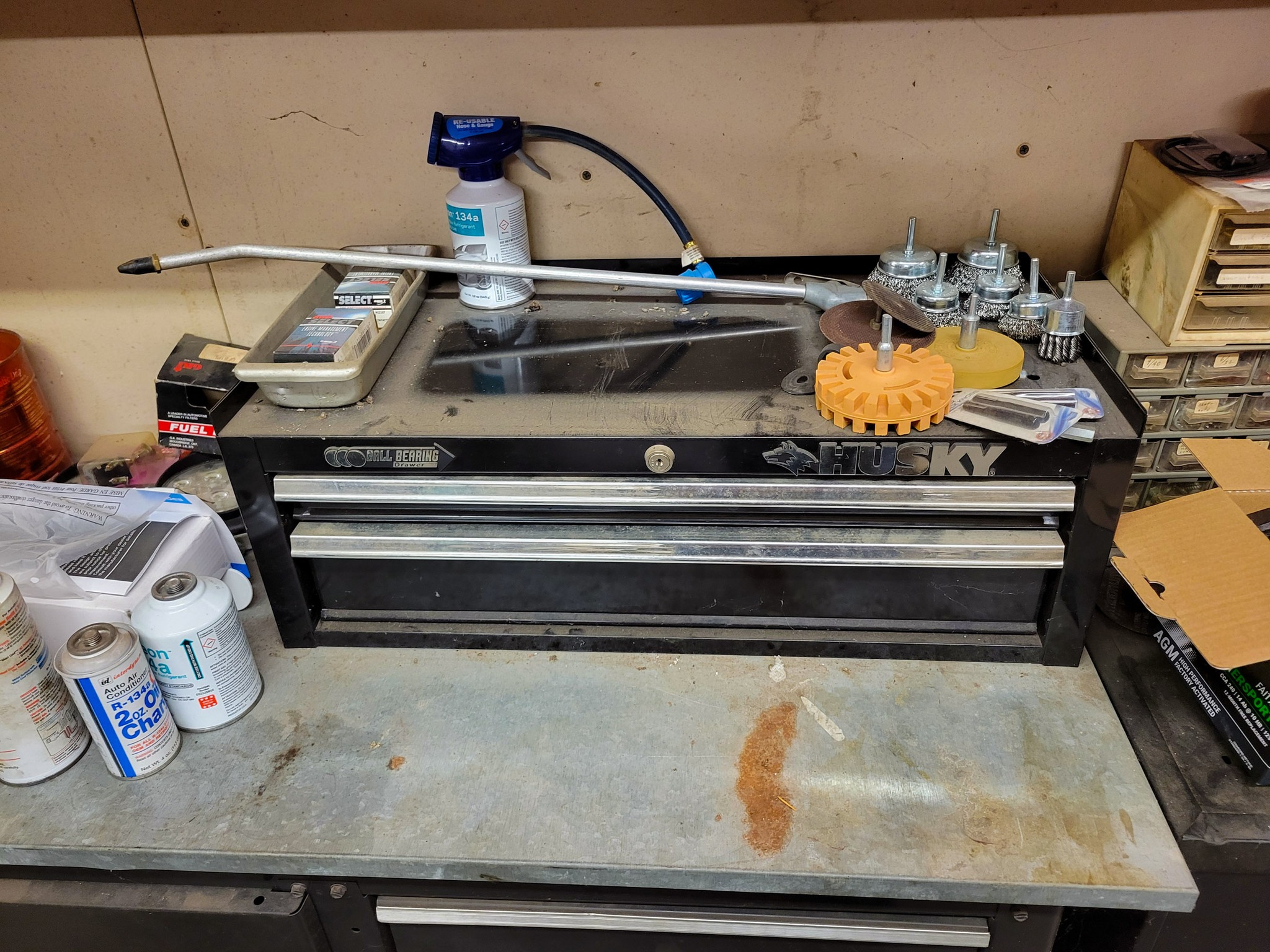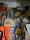 Mechanic: 2 post car lift model: DP10ANOOOM with 6ft of clearance 10,000 lbs. forward lift , screw jack lift, work station, Engine stand, 20 gallon oil drain pan, pneumatic jack, electric sand blaster, creeper, electric motors, monkey wrenches, gasket cutters, calipers, gear and hub puller, spring compressor tools, pipe e-x-p-a-n-d-e-r tool, snap ring plyer set, body tools, Makita car polisher, paint guns, electrical splicing / fuses, gear oils, motor oils, fuel additives, filter wrenches, funnels, brake line tools, manuals, aerosol cans / lubricants / paint / grease / penetrating oil and much more, auto scanner.