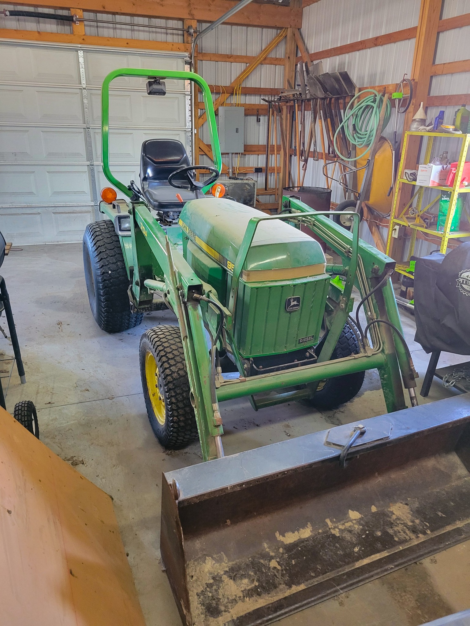 Tractor / attachments / farm: John deer 955 tractor w/ 70A loader (N / A hours), 3pt disc, 3pt blade, king cutter 3pt mower 4ft, T-posts.