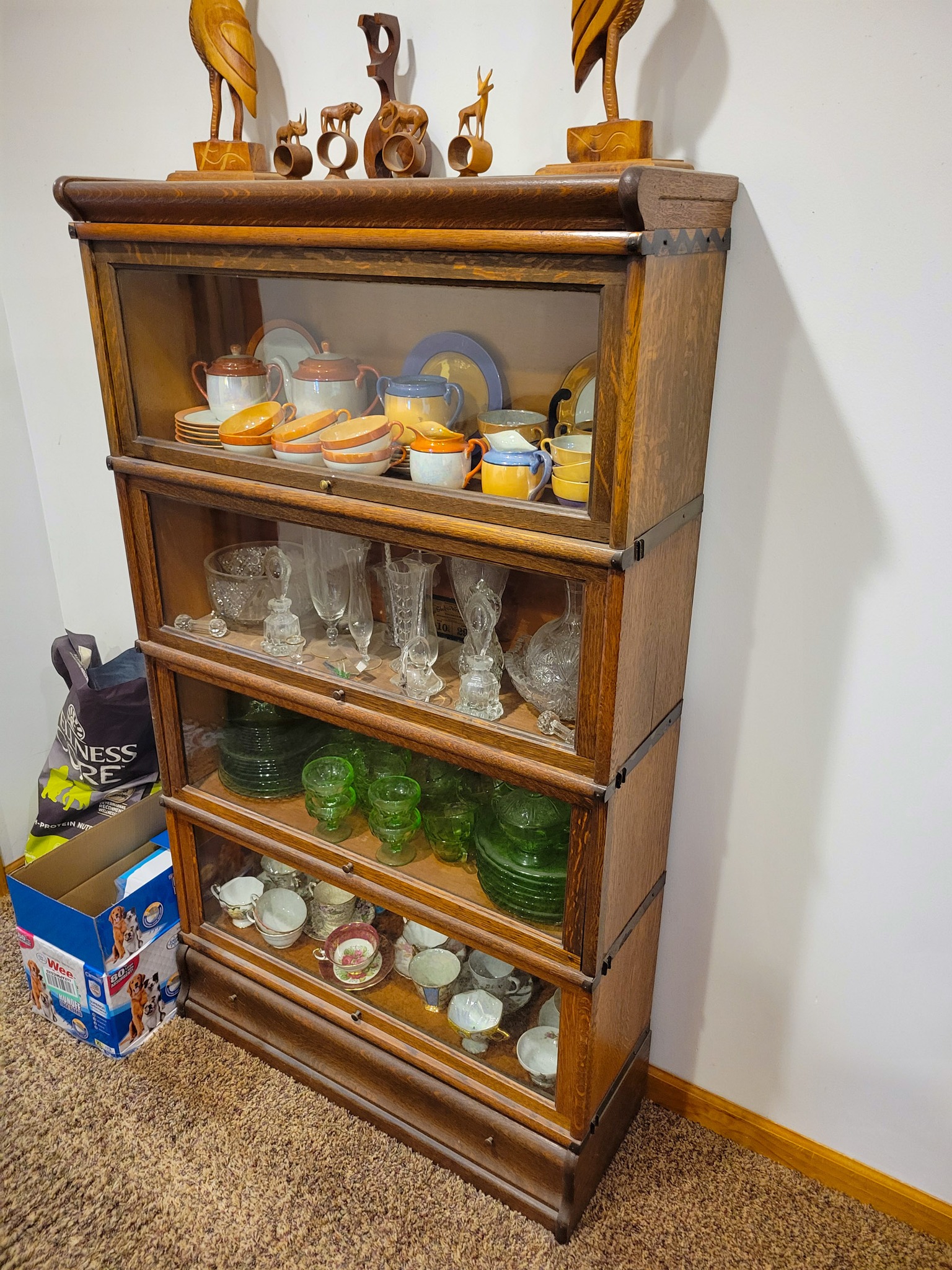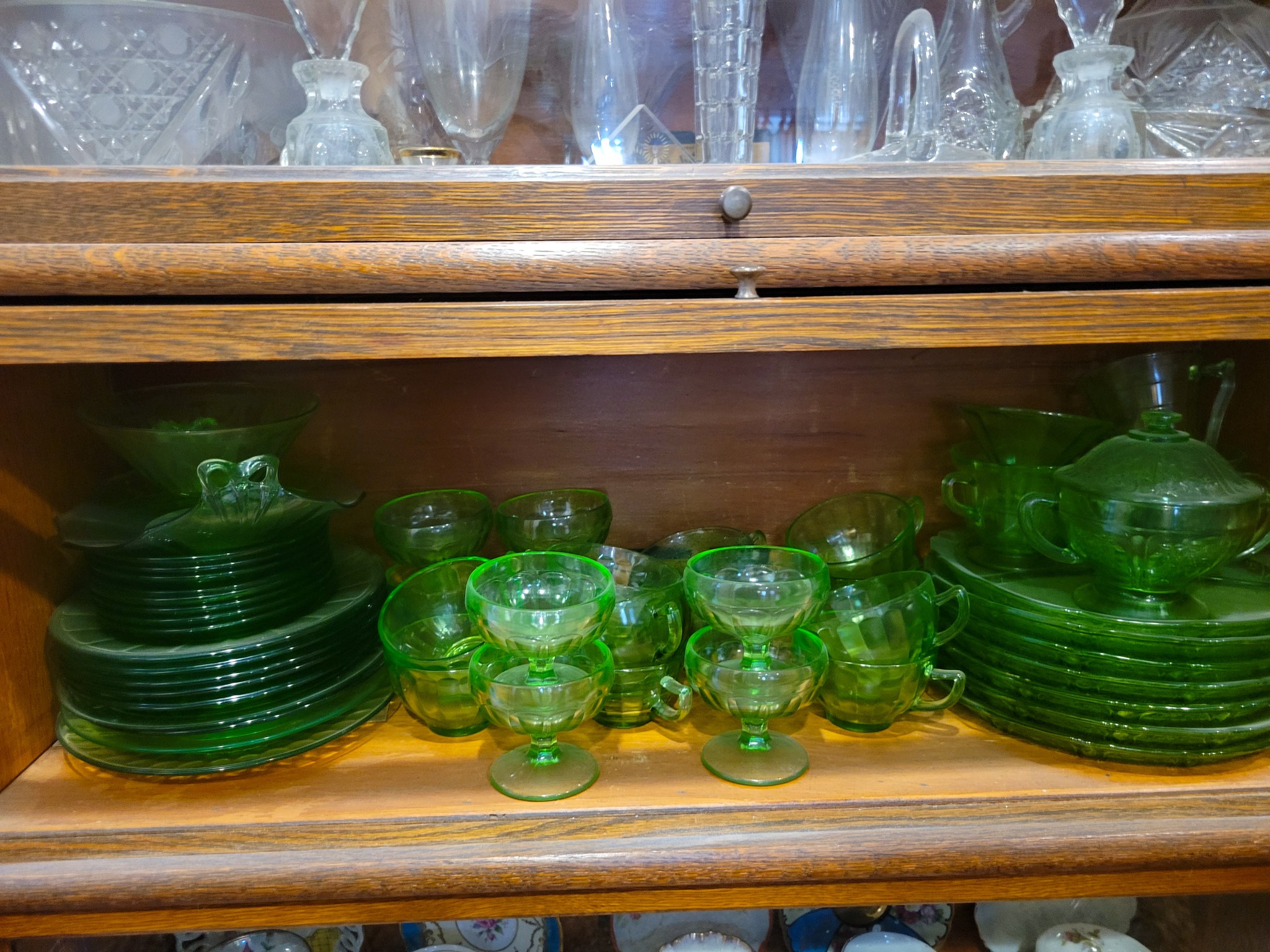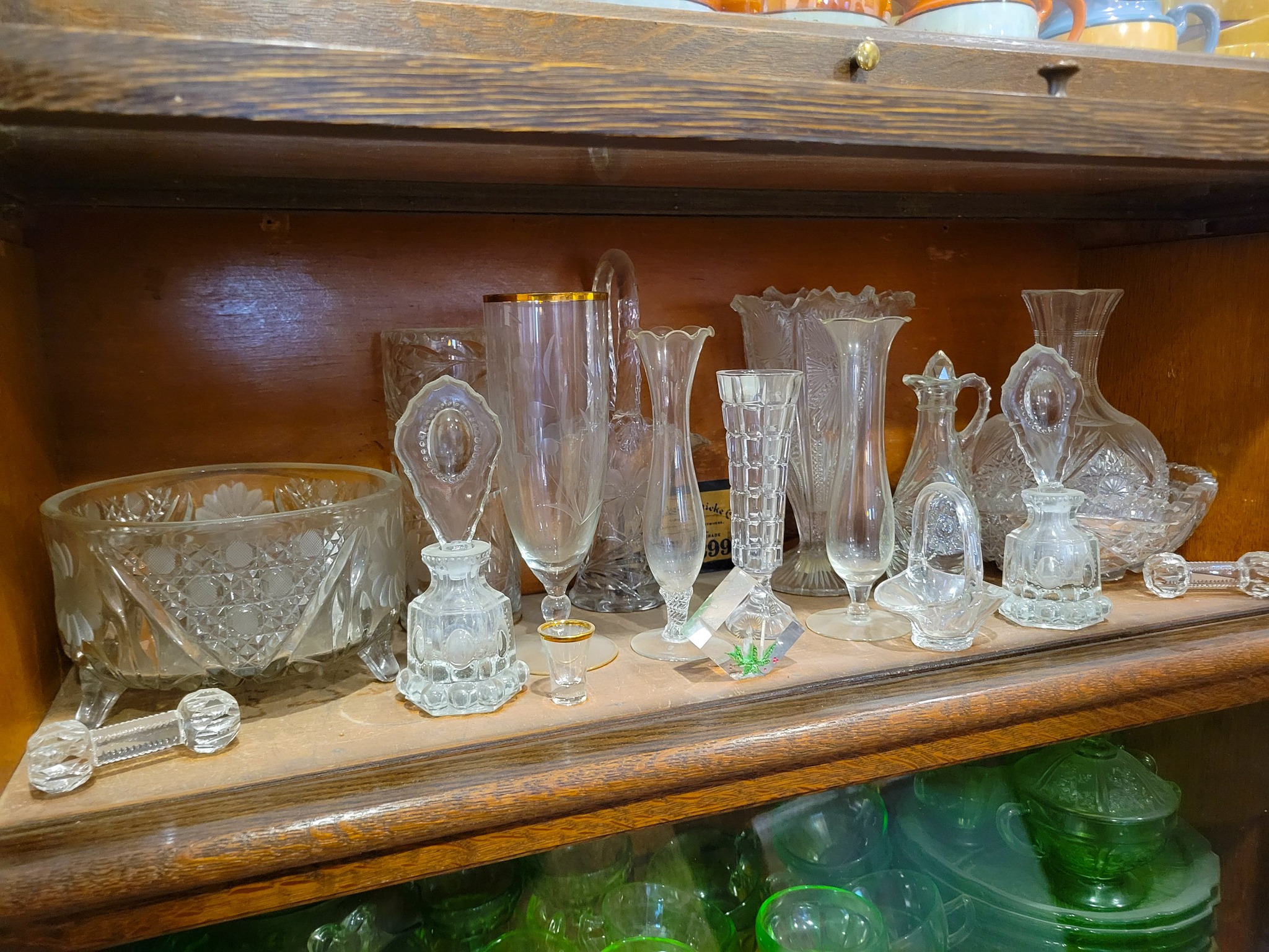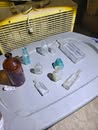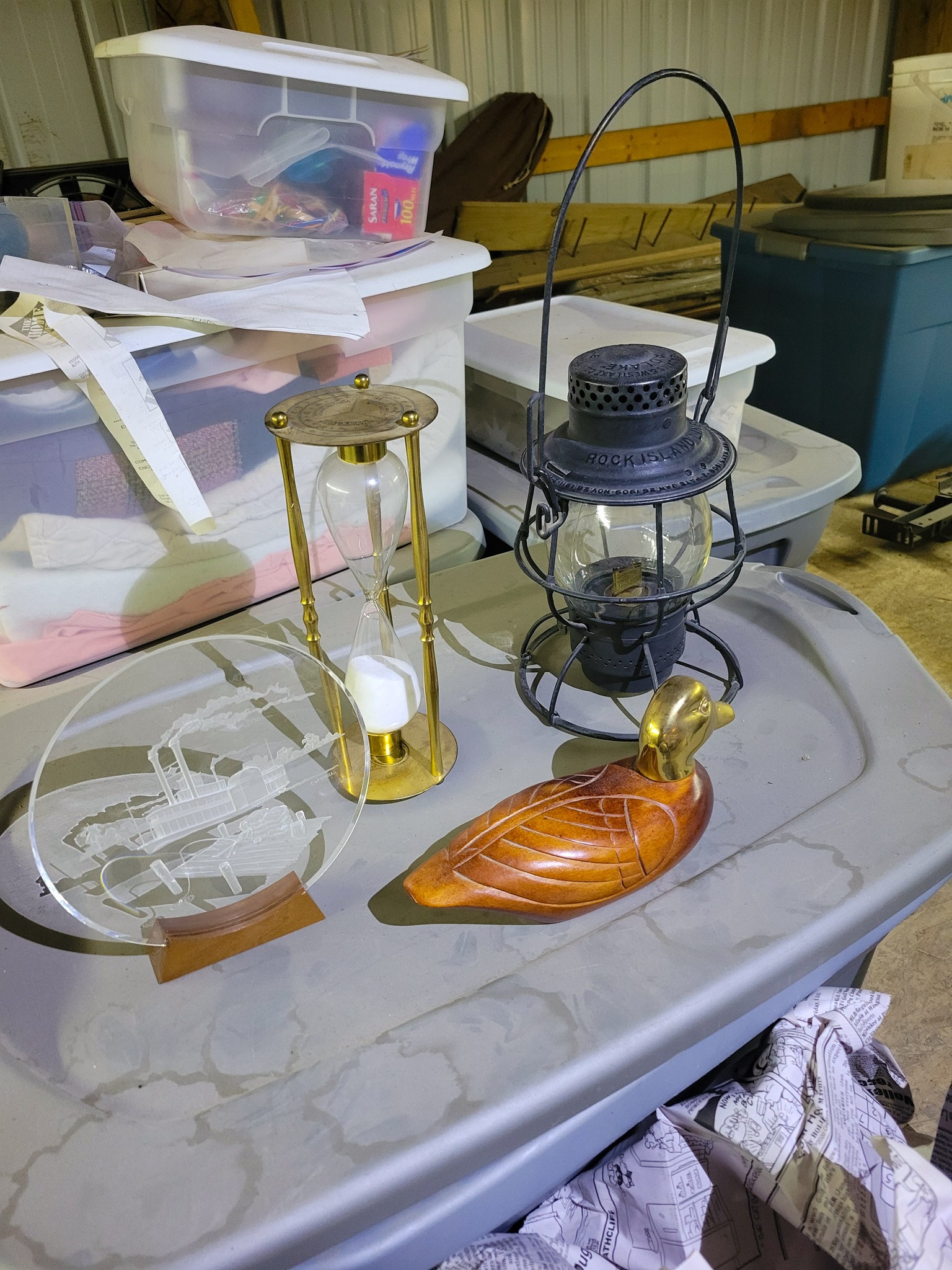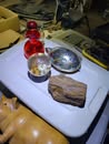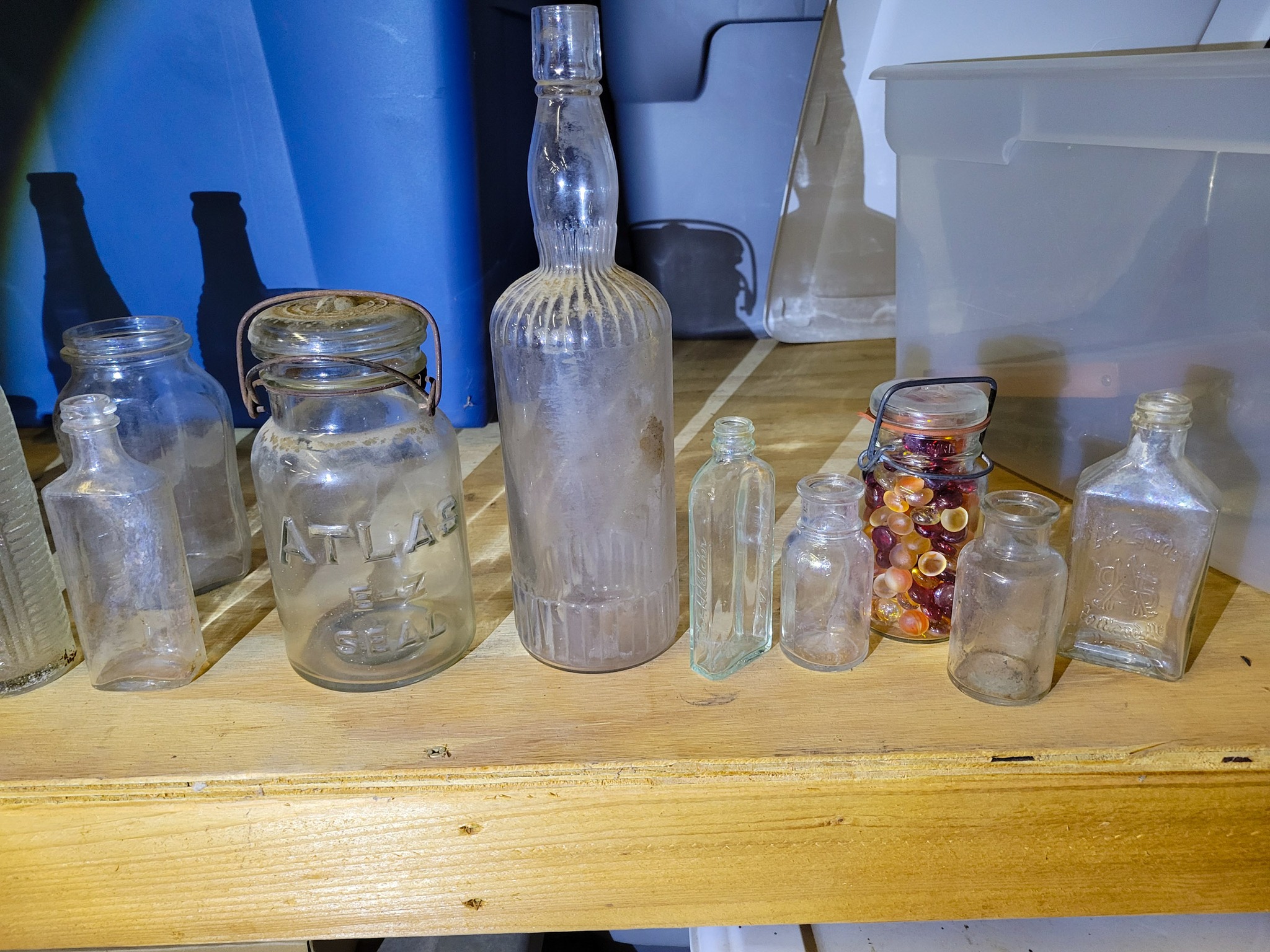 Antiques: Old bottles / small bottle collection, old lanterns, petrified wood.