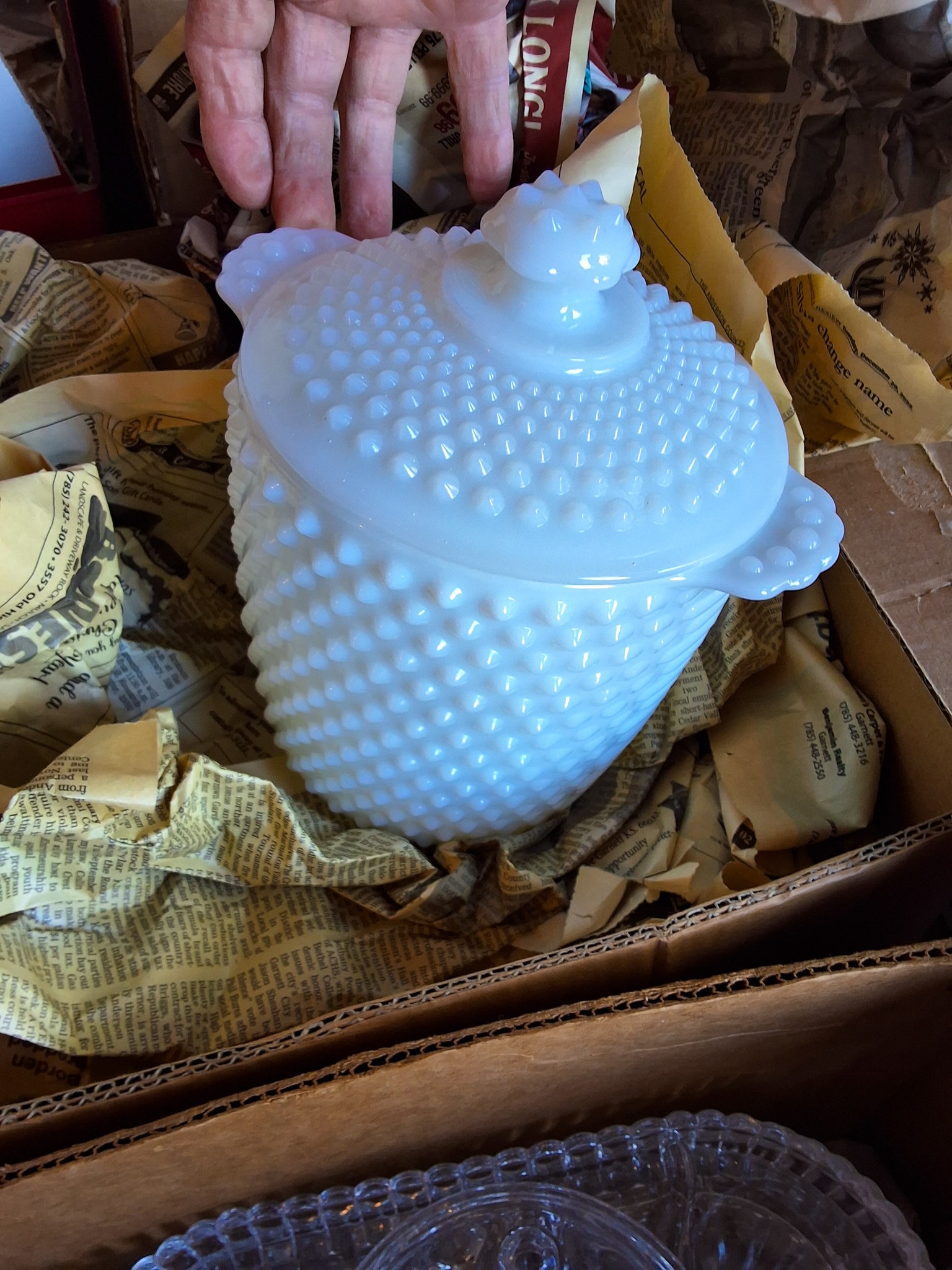 Anchor Hocking Milk Glass cookie jar, hob nail