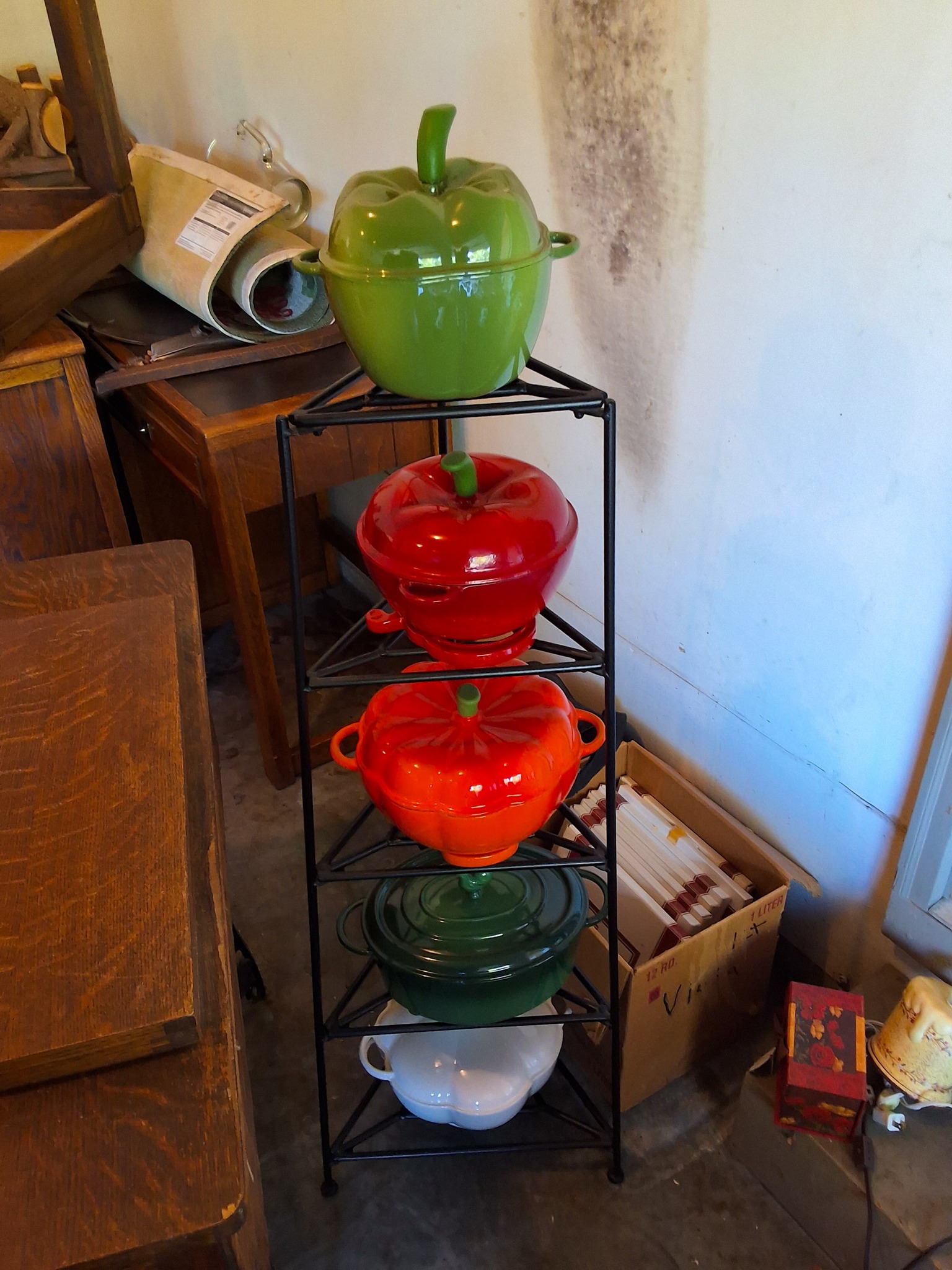 5 Technique Cast Iron Enameled Dutch Ovens on wire corner rack