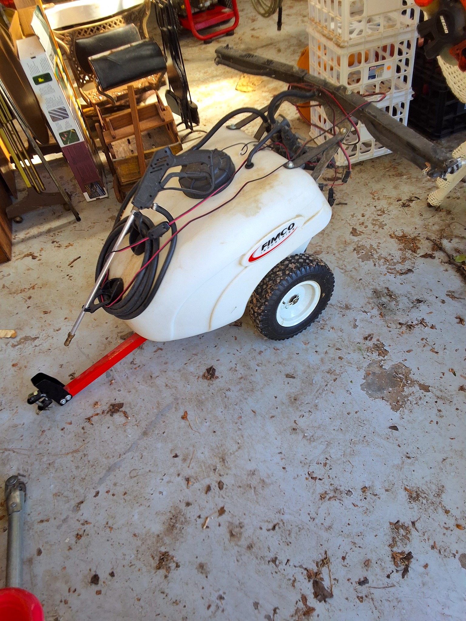 Fimco lawn sprayer, 3.5’ booms, pull type