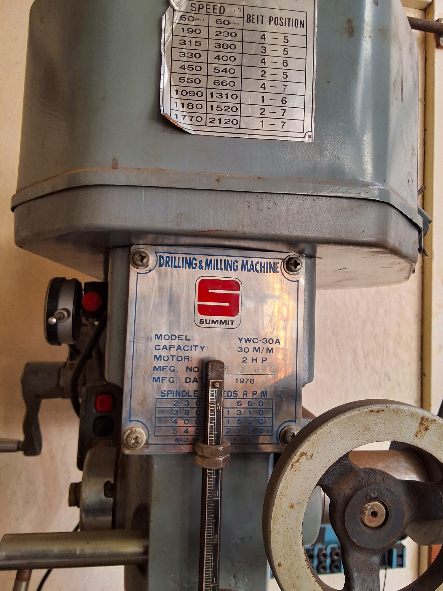Summit Machine drill press, floor model, 2HP, 8 speed, adjustable table