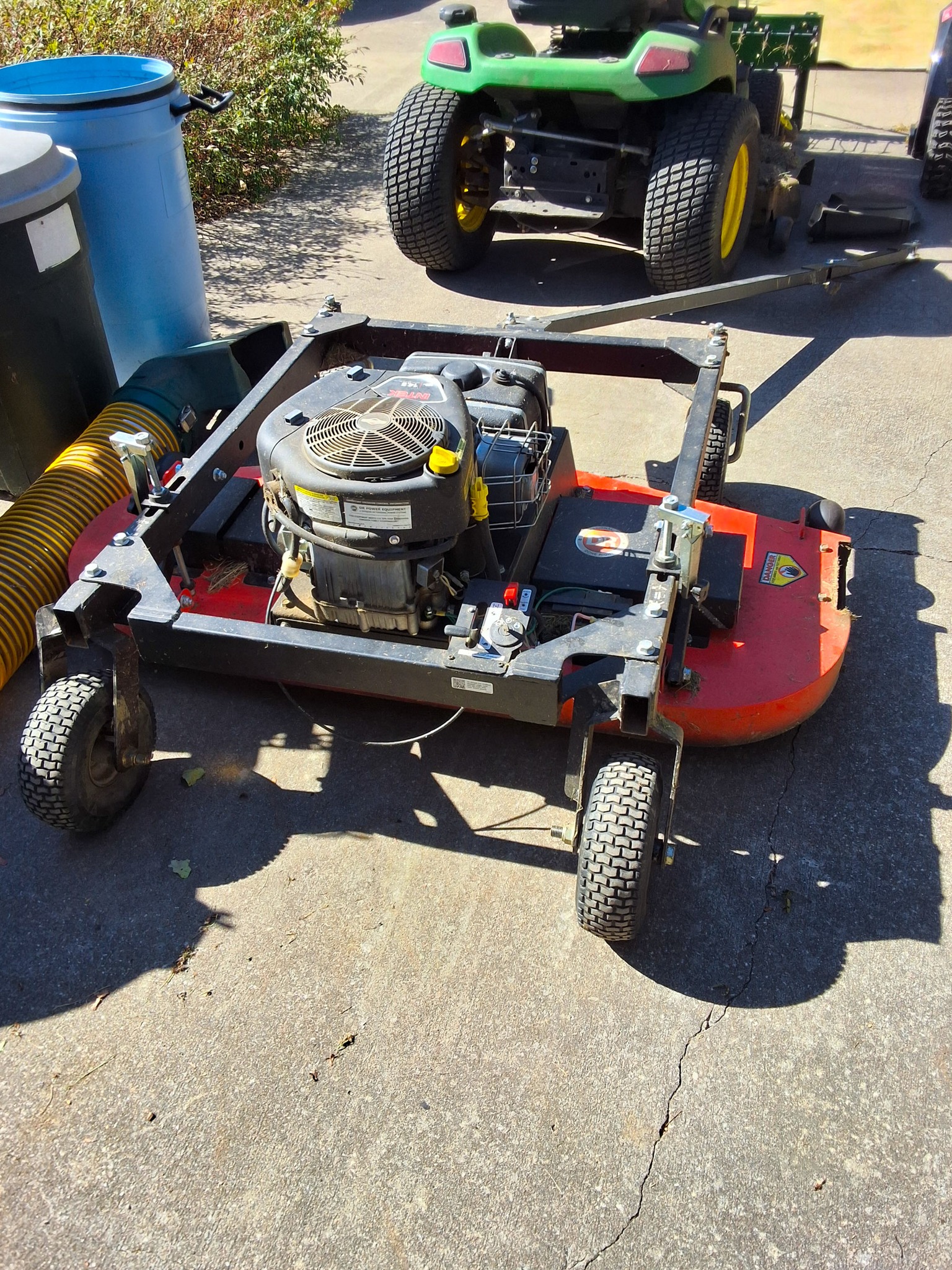 DR Field & Finish mower, 60” deck, pull behind, elec. start, 4 wheel, 14.5 HP Intek engine