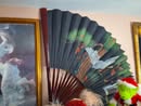 Vintage Asian Folding Fan, Paper & Bamboo, hand