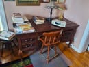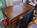 Mahogany Kneehole desk, leather inlaid top, w/ chairs