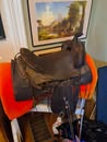 Vintage Visalia?? 15” Stock saddle, leather bottom aluminum ox bow