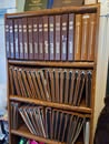 Solid wood bookcase, 3 drawer, bottom drawer, 61"x26”
