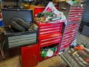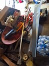 Large assortment of lawn & garden tools, shovel, rakes, garden hoes, etc.