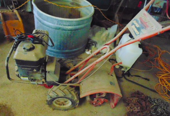 TOOLS & MISC: Craftsman 10" power miter saw-like new; 18" adj wrench; other hand tools; wood clamps; pipe clamps; backpack sprayer; Stihl electric & gas trimmers; 12v Fimco sprayer; Troy Bilt Super Bronco rear tiller- not running; Troy Bilt sm tiller- not running; 2 push mowers; alum ramps; round & oval stock tanks; JD #62D belly mower-nice; alum & fiberglass ladders; 6' 3pt blade; 3 pt big bale spear; 14 8"-14' metal gates; several cattle panels; 70+ steel posts; barb & woven wire-new; pile of firewood; sm kayak; park bench; yard windmill; milker bucket; pellet guns; lg Bushnell telescope; native & other lumber; child's sled; pile of scrap metal; many pieces of used roofing tin;