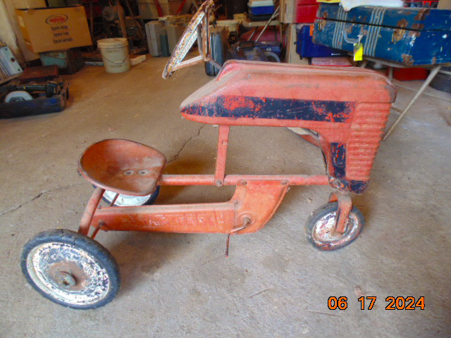 CONSIGNED: chain drive pedal tractor- very old & nice; 5 hp air comp; Wisconsin 1 cyl eng; Skil offset circ saw; Milwaukee Hole Hawg; pwr miter saws; 5 gal bucket of lead; Milwaukee offset grinder; Proto 9 dwr tool chest; tap & die, lg set; Ridgid pipe vise; 7 ½" band saw; US holster, helmet, shovel & more; el hoist; 180 amp stick welder; brad nailer, NIB; frame & shingle nailers; alum step ladders; hand & pwr tools; sm acetylene & oxygen bottles; lg dust collector; Lincoln Handy Mig-good; 12 ton hyd jack; Pelsue infared propane heater; Toro S-620 snowblower; JD HD75 48" walk behind mower; Kawasaki 26" push mower; 3 ½ hp string trimmer; Razorback V2 gas scooter; Troy Bilt front sickle mower; hyd wood splitter; Stihl & other gas string trimmers; 3 ½ ton floor jack; David White transit w/ tripod; numerous shovels, rakes, forks and bars.