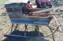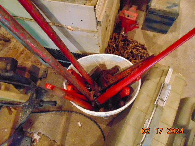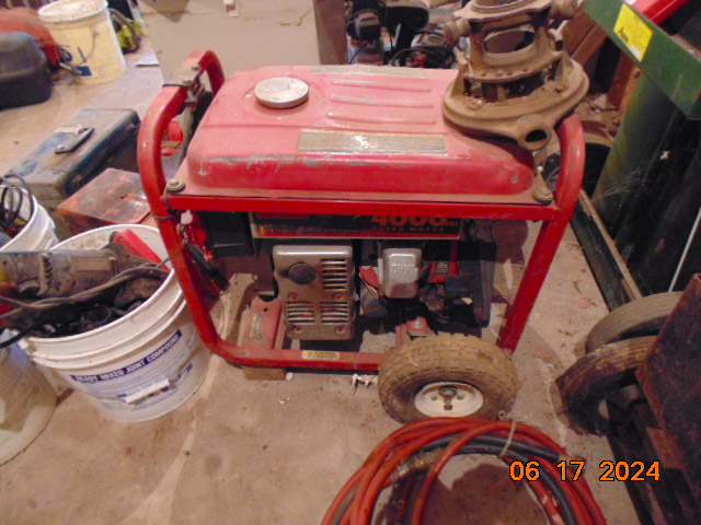 TOOLS, MISC: Win Power 25 / 15 PT2 25KW generator w/ trailer; 295 amp welder, long leads; acetylene cut torch, on wheels; Power Mate rear tiller, used once; el hyd wood splitter; Stihl MS 261C, 044 & other Stihl saws; pwr miter saw; screw jacks; 2-75 gal poly tanks; 2 lg snatch blocks; oval stock tank; 4-20' steel trusses; sev 6'x9'x12' concrete posts; 1 ¼" rebar; 1-2 ½" pipe; used roof tin; 2 lg smokers; s IH wheel weights; hay rings & pipe feed bunk; 30' port bale elevator; poly stock tank; 21- 21' 1" tubing; 10 sections safeway scaffolding- nice; cattle panels; pipe panels; chain link fence; 1"x6"x12' & some native lumber; wheel barrow; 75000 btu kero heater; sheep feeders; hog crate; AC & IH belt pulleys; roll new barb wire; fast hitch to 3 pt adapter & fast hitch "arms"; 10' alum ext ladder; pu stock racks; chick feeders; misc hand tools;