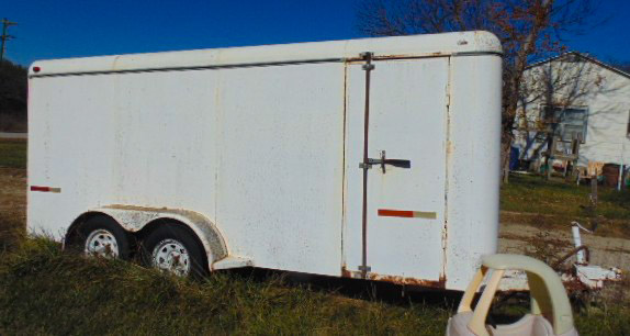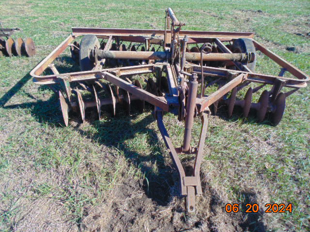 TRAILERS, TRACTORS & MACH: 6'X14' gooseneck stock trl w/ 8 hole wheels; Win Power 4 wheel hay wagon w/ factory bed; 6'x16' tandem axle enclosed trl; 5'x9' enc 2 wheel trl; 2 H Farmall; 1935 & other F-20s; 1947 KB2 IH pickup; Ford F-600 truck; 1986 Ford LTD Crown Vic, no vehicles / tractors run; Kewanee 10' wheel disc; IH 2-12 pull plow; IH 3-14 fast hitch plow; IH balanced head sickle mower; 3 pt hay rake; 5' Keen Kutter pull rotary mower; JD combine bin auger wagon; sm 2 wheel manure spreader; 7 shank pull chisel; IH 8' pull disc; 2 wheel trl, steel floor; ¾ ton pu bed trl; 300 gal field sprayer; Maxi-dump bed, good; upright feed mixer;