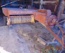 COLLECTIBLES & SALVAGE: Erie gas pump-see pic; newer gas pump; walking lister; lard press; 50+ Adams & other half & 1 gal glass milk jugs in wire crates; 2 Gleaner K combines; some other salvage.