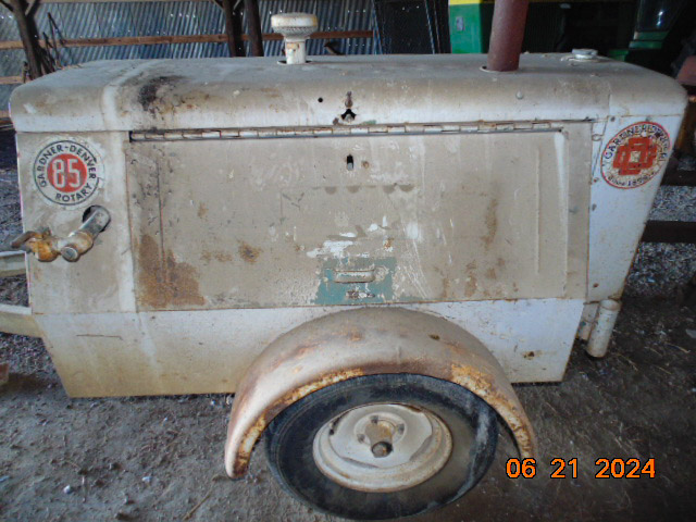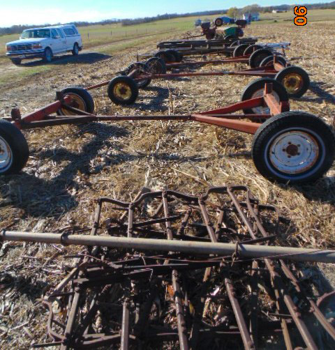 COLLECTIBLES & SALVAGE: Erie gas pump-see pic; newer gas pump; walking lister; lard press; 50+ Adams & other half & 1 gal glass milk jugs in wire crates; 2 Gleaner K combines; some other salvage.