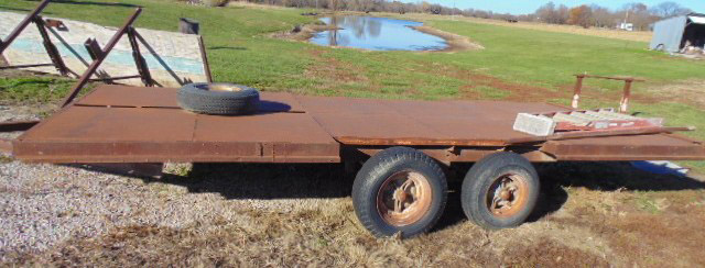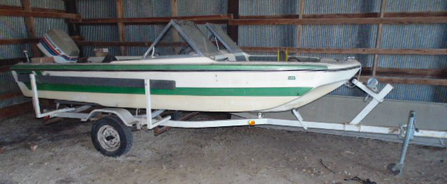 TRAILERS, BOAT & 4X4: 7’6” x 19’ tandem axle, steel floor trailer; 4 wh hay wagon w/ 2” floor; 5-4 wh wagon gears; 2 PU bed trailers; Magnum 15’ w/ trailer, & Evinrude 70 motor; 12’ fiberglass canoe; 10’ John boat; Mercury 5 HP outboard; Kawasaki 250, Bayou 4x4.