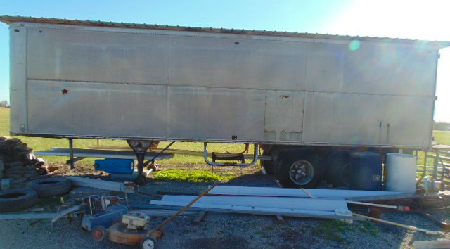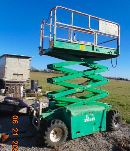 SEMI VAN & MISC: 30’ semi storage van w/ whls; JLG 26’ scissor lift-needs some repair; 22’ & 2- 16’ port hay elev; Case 930 propane tank w/ manifold; 650 Echo chain saw; radial arm saw; 80 steel posts; 300 gal fuel tank w/ stand; 110 v fuel pump; sweep auger w/ motor; 200 amp bat chargers; 110 gal port fuel tank; Ridged pipe vise on tool box; cable come a longs; new & used roof tin- 40+ pcs up to 24’; 14 pcs door track-unused; 2 rolls-6’ chain link fence; 6’ 10”x8’6” metal truck bed; 19’ adj heavy frt loader boom; 2 sets heavy fork lift forks; LUMBER 10pc 5 1 / 2” cedar siding-new in bundle; 10 laminated 2x6 & 2x8, 16-20’ posts; 5x9 & other plywood; 20+ 2x6 & 2x8, 16’ treated; 14 2x6 white oak up to 13’; new Formica covered shelving; 11- 6x6x18’; some plywood & OSB; Cedar 2x4”, 6”, 8”; 9’ garage door complete; 1-1 / 2” PVC pipe; sm & 100 lb propane bottles; 2-air comp; el fencers; hyd cyls; truck tool box; chisel pts; temp el hook up post; sev gas cans; 22HP riding mower-needs repair; tree stands; el motors; 3 expanded metal trailer ramps; IH fast hitch arms; 4’x6’x1 / 4” plate iron; 6” PVC pipe.