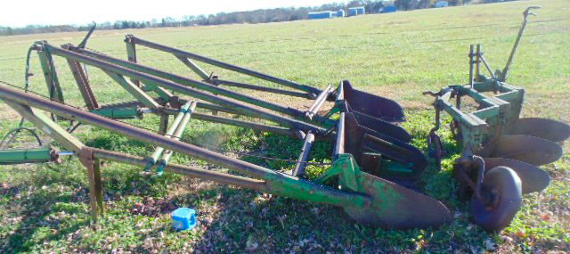 TRACTORS, TRUCKS & MACHINERY: 1973 JD, 4430, new rear tires, new batteries, front wts, duals, approx. 7000 hrs-nice; 1966 Case 930 Diesel, cab, near new rears & duals, 3646 hrs, (one of a kind); 1975 Ford 420 backhoe, 12” & 24” buckets-good; 1975 GMC 6000, 18’ steel bed, 350 CI 4sp-2sp, like new tires, showing 88200 mi; 1980 Ford F150, XLT, 300 6 cyl, 4x4; IH 800, 6 row, 3 drums, monitor, w/ insecticide-good; Kewanee 1010, 19’ wing disc, 19” rear & 20” front blades; IH 45, 13 ½’, field cultivator w/ mulcher; IH 45, 18 ½’ field cult w/ mulcher, hyd fold; JD 17-7” drill w/ fert; 7’, 3 pt rotary mower; 9 shank pull chisel; Oliver 4-16, 3pt plow; 300 gal field sprayer-good; NH 269, wire tie baler; popup hay loader; 31’ hay-grain elevator; 3pt, 6 row cult; 3 sec harrow w/ evener; 2-JD 45, front loaders; JD 810, 3pt, 3-14, trip bottom plow; JD-307 rotary mower; JD 407, 3 pt mower-needs repair; JD #5, sickle mower; 6’, 3 pt finish mower; K 13’ header.