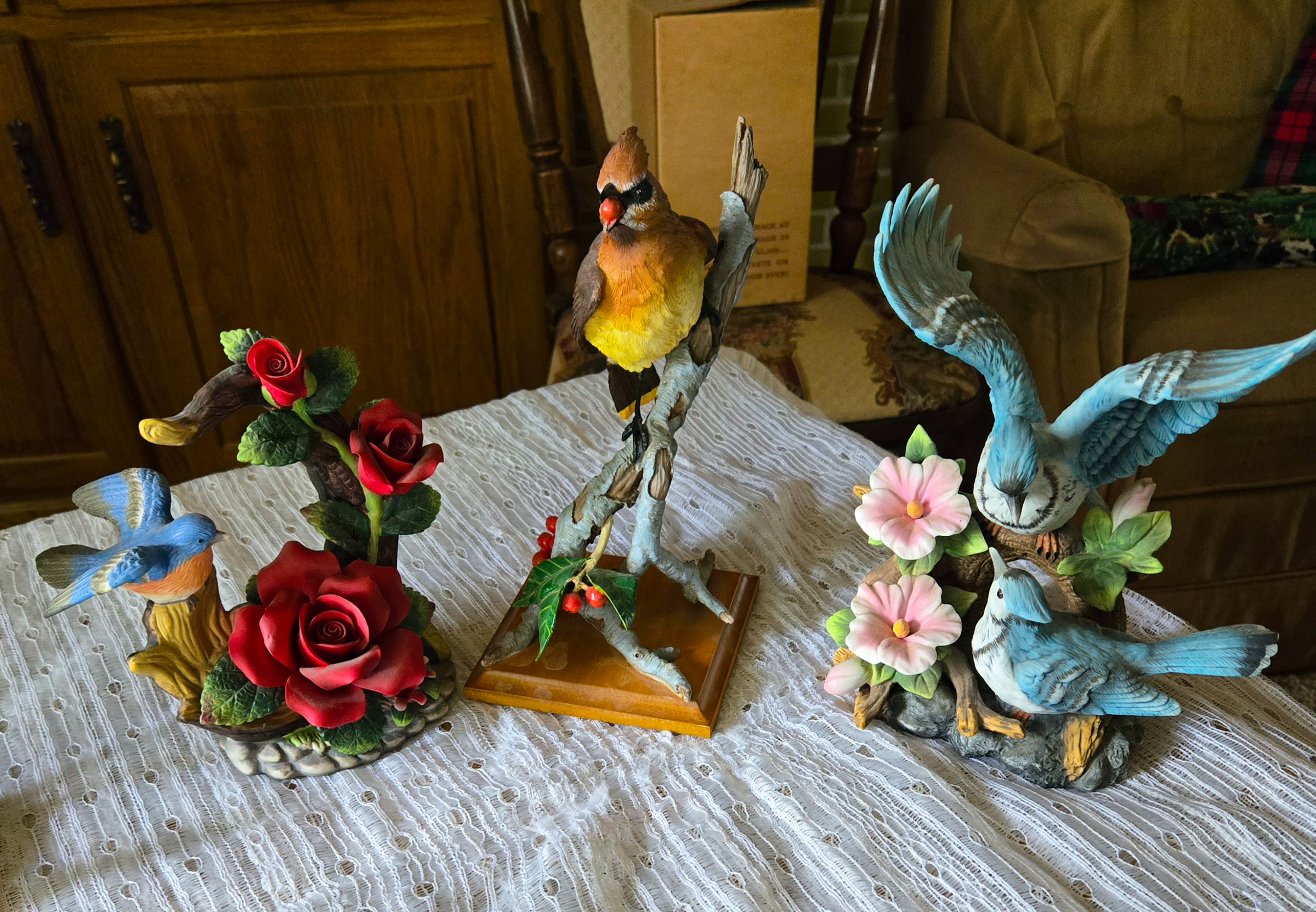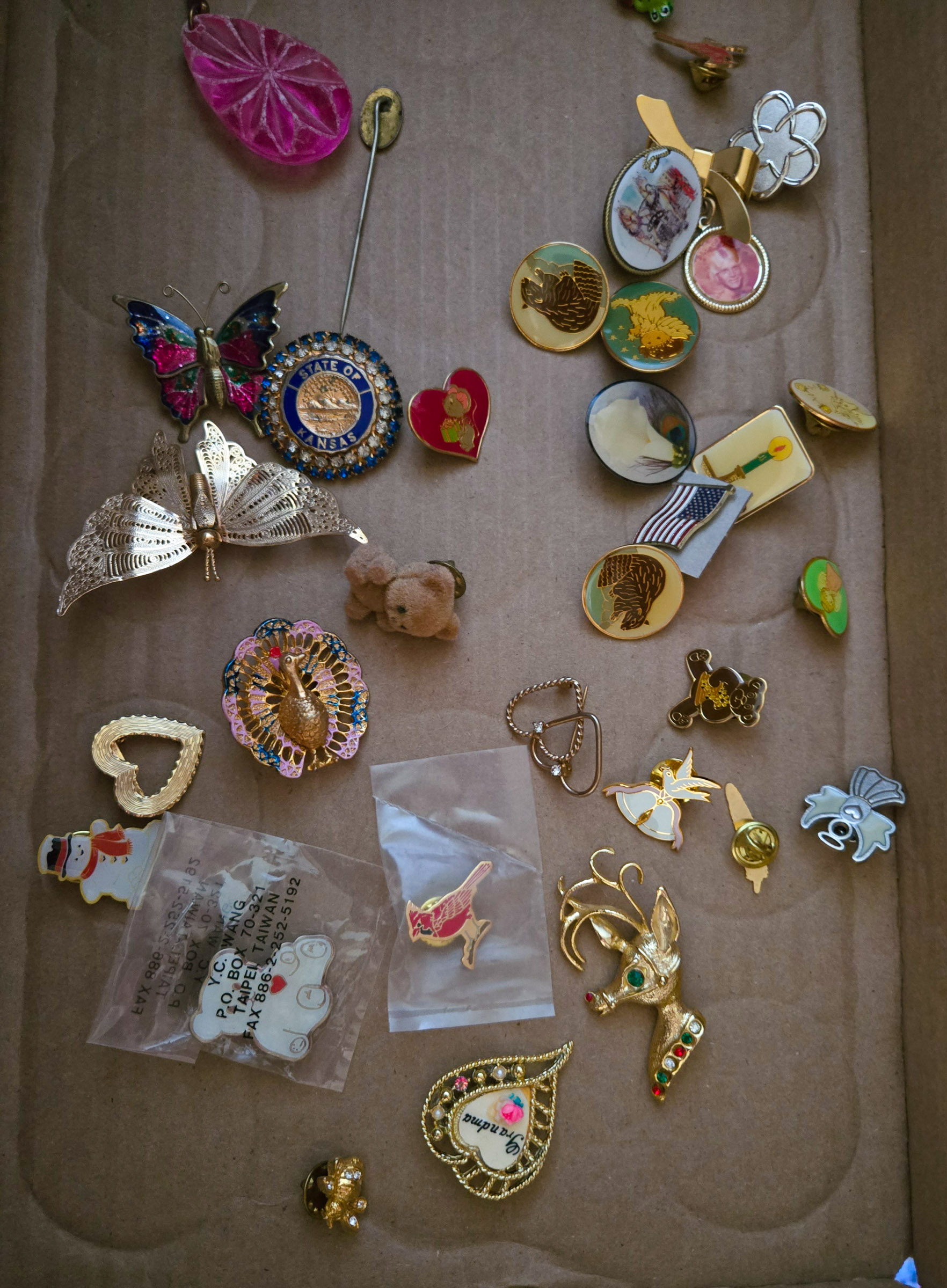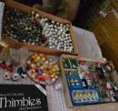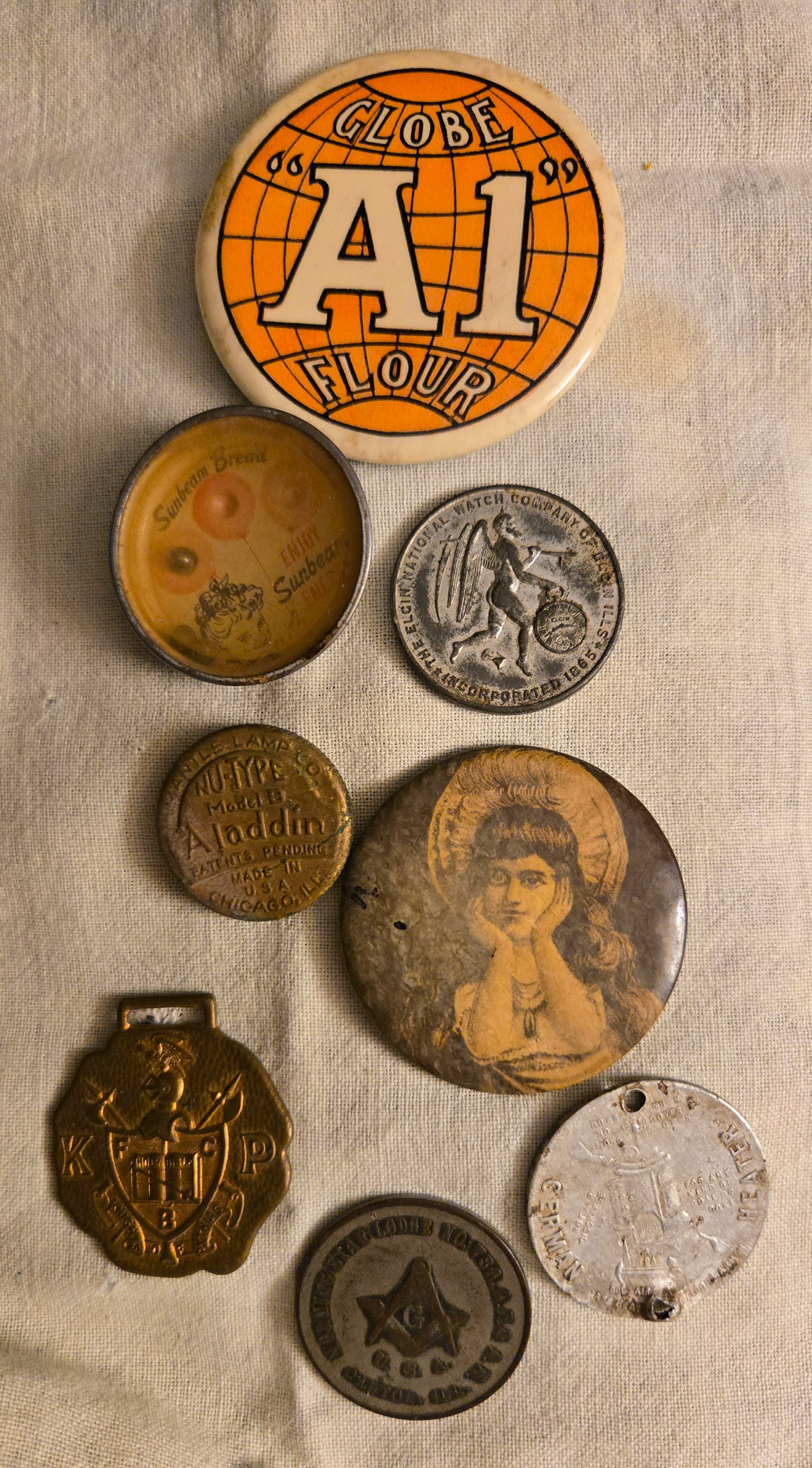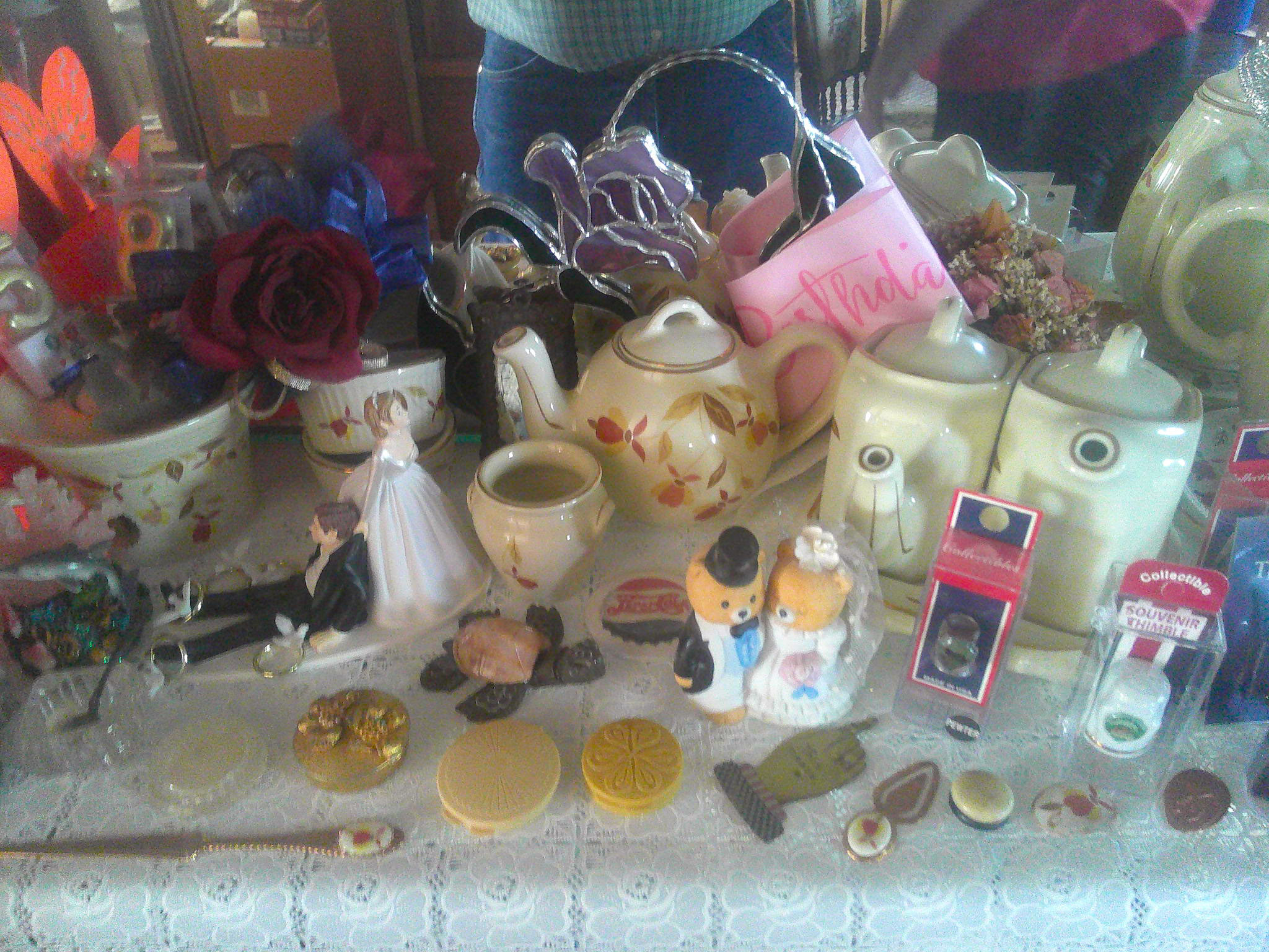 Thimble collection, Sewing kit collection and other collectables, Autumn leaf, Jewel tea collection many rare pieces sold by the jewel tea company, Household scales : Imperial family scales, American family scales, Vintage 1949 Jewel Radio corp. Model 935, Am clock radio, Hall China pieces, Tea pot, Refrigerator, Depression glass—green, pink, amber, Misc Vintage glassware & platters, Calendar plates (early 1900’s), Missouri tax tokens, Elgin national watch company token, Aladdin model B wick raiser knob, Naughty nellie pocket mirror, Knights of pythias watch fob, other lodge pins, decorum, Globe A1 flour badge, vintage sunbeam bread BB game, Lighters, Cameras and accessories, Duncan fife table and chairs, Wardrobe, Dressers, dresser with hutch, Twin bed with posture board, end tables with magazine racks, Entertainment center, Flex steel couch, Lift chair, Rocking chair, Decorative space heater, Antique & vintage lamps including oils, Pictures wall hangings and furnishings, Antique pie safe, 50 &60 popeye hand puppet set, old milk cans, 19&20 century cookbooks and encyclopedias, Treadle sewing machine with attachments, Sewing machines singer, brother and serger, fabric sewing supplies, old quilts and quilt tops, old jars and other glass, turquoise jewelry, vintage jewelry, native American items clock and watches, jolly musical monkey wind up toys in box, Kenmore washer and dryer, vintage toys, vintage clothing, silver and copper items, Griswold cast iron items, antique large brass iron scale, antique tools and oil cans, fishing gear, chest freezer, horse drawn equip.,