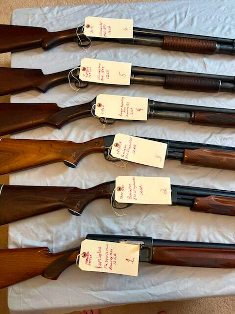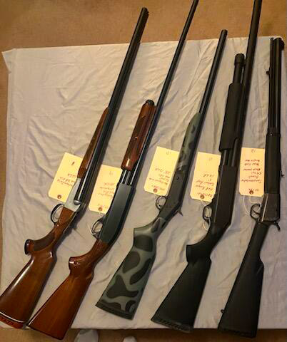 Remington Sportsman Browning pats 12GA 399435, old 36 caliber rifle, Remington 830 Wing master 12GA T835733V, Remington 870 wing master 12GA 5873078, Ranger repeating arms Browning pat 12GA 41864, Winchester model 1897 12GA F469109, Winchester model 1897 16GA 30191, Belgian 1810-1853, Western field model SB-312 12GA, Remington 830 wing master 20 GA 949597X, NEA pardner model 5B-1 31 / 2” 12GA, H&R Ranger Pardner pump 3”12GA NZ535487, Tompson center scout 54cal black powder new 45712, The marlin firearms co. model 783 22cal WRM 24682916 with simmons 3x9 scope, 22cal long rifle crimped smokeless powder CTG pump no clip, Savage model 93 R17 17cal HMR New bush nell 3x9 scope 1675882, Winchester model 67-22 L,LR 22ca