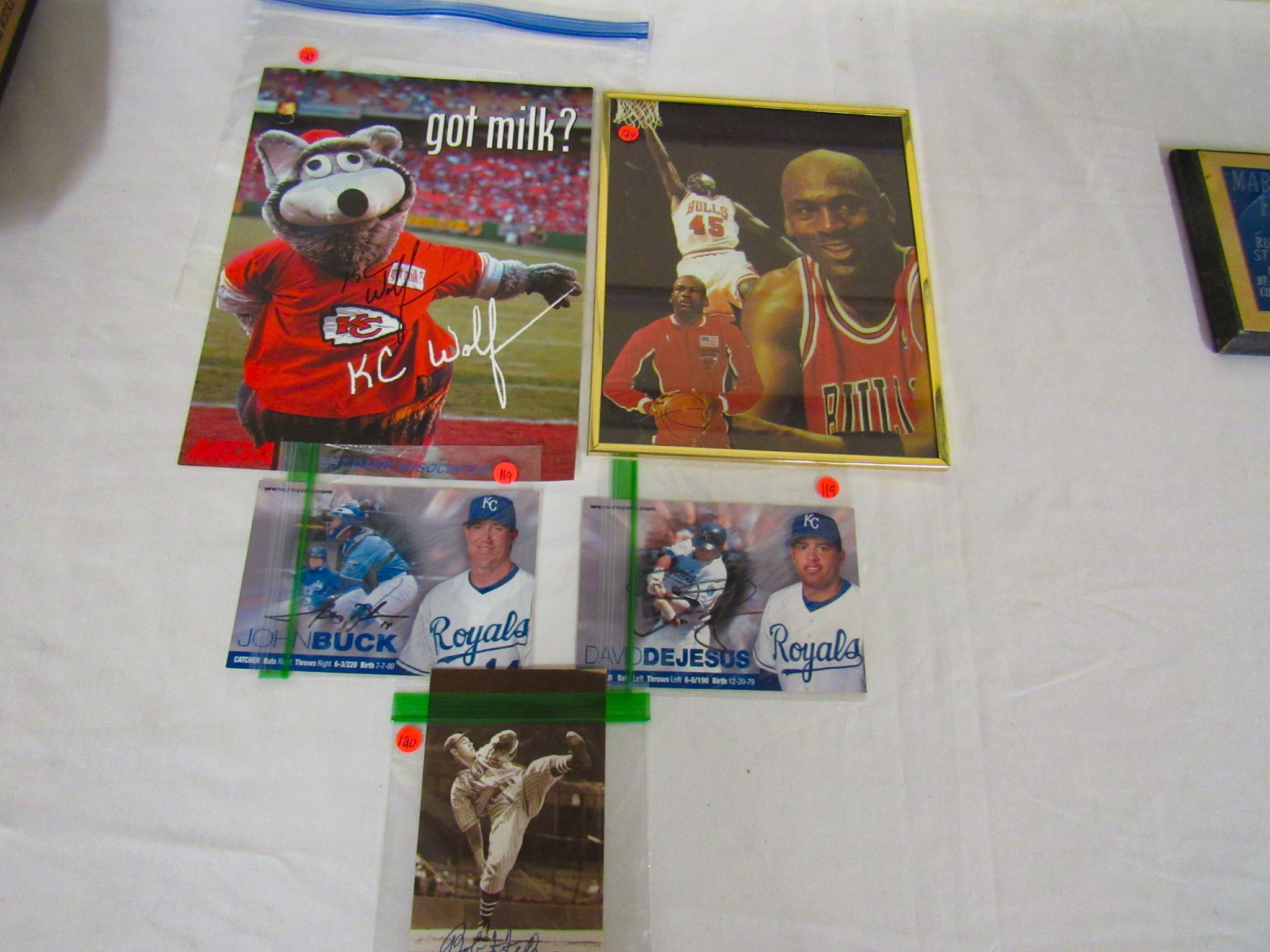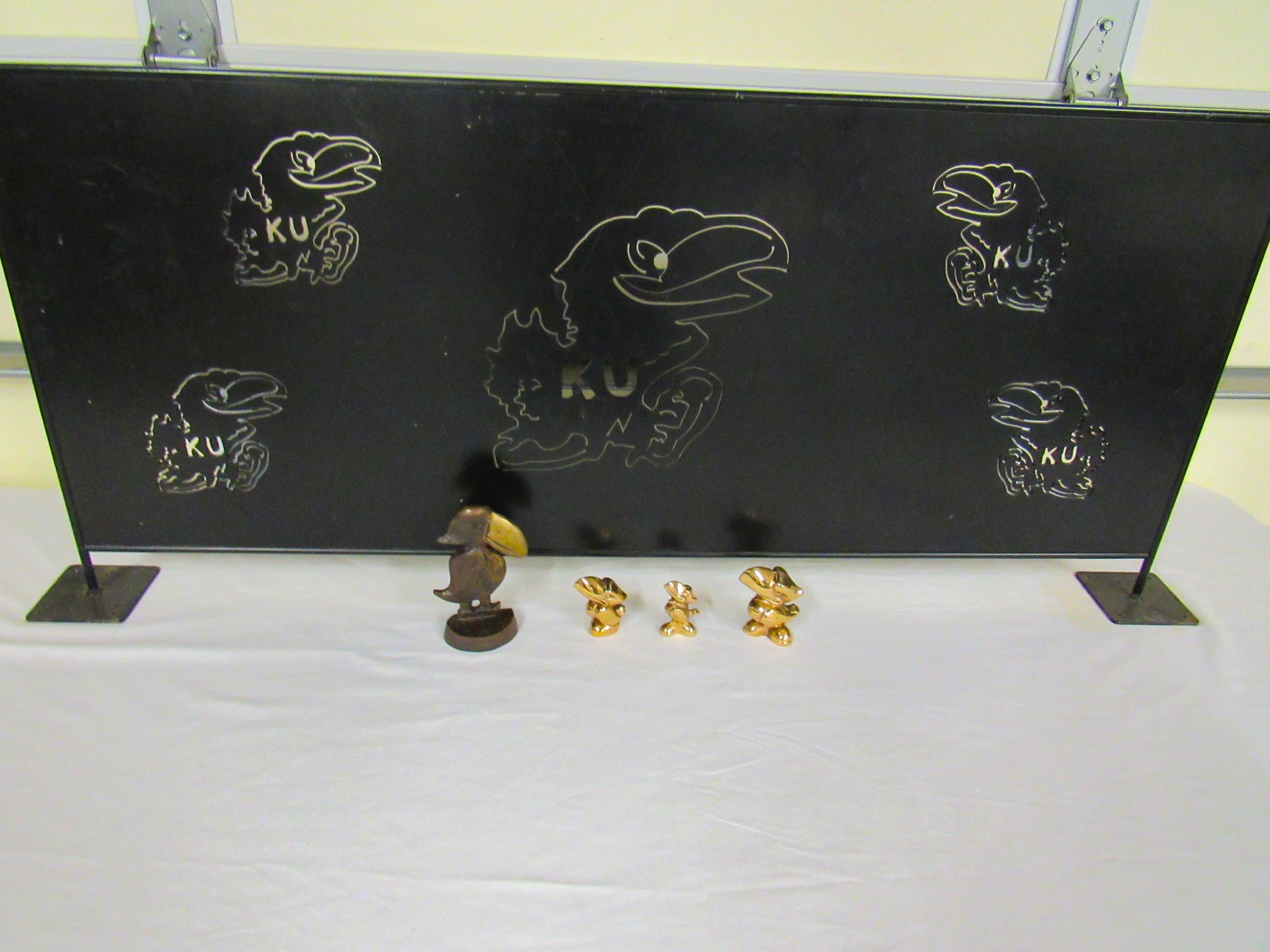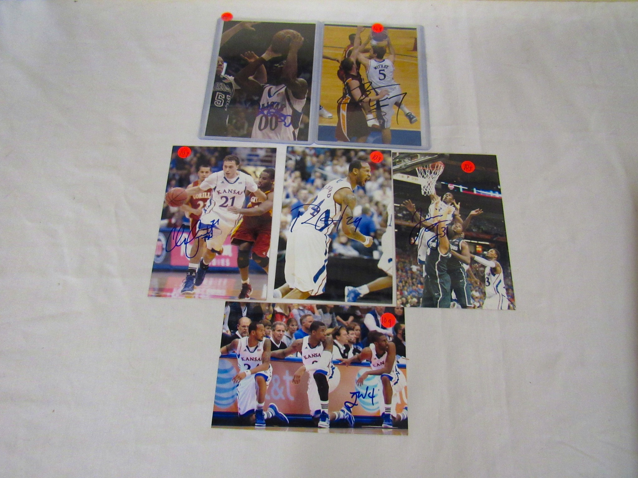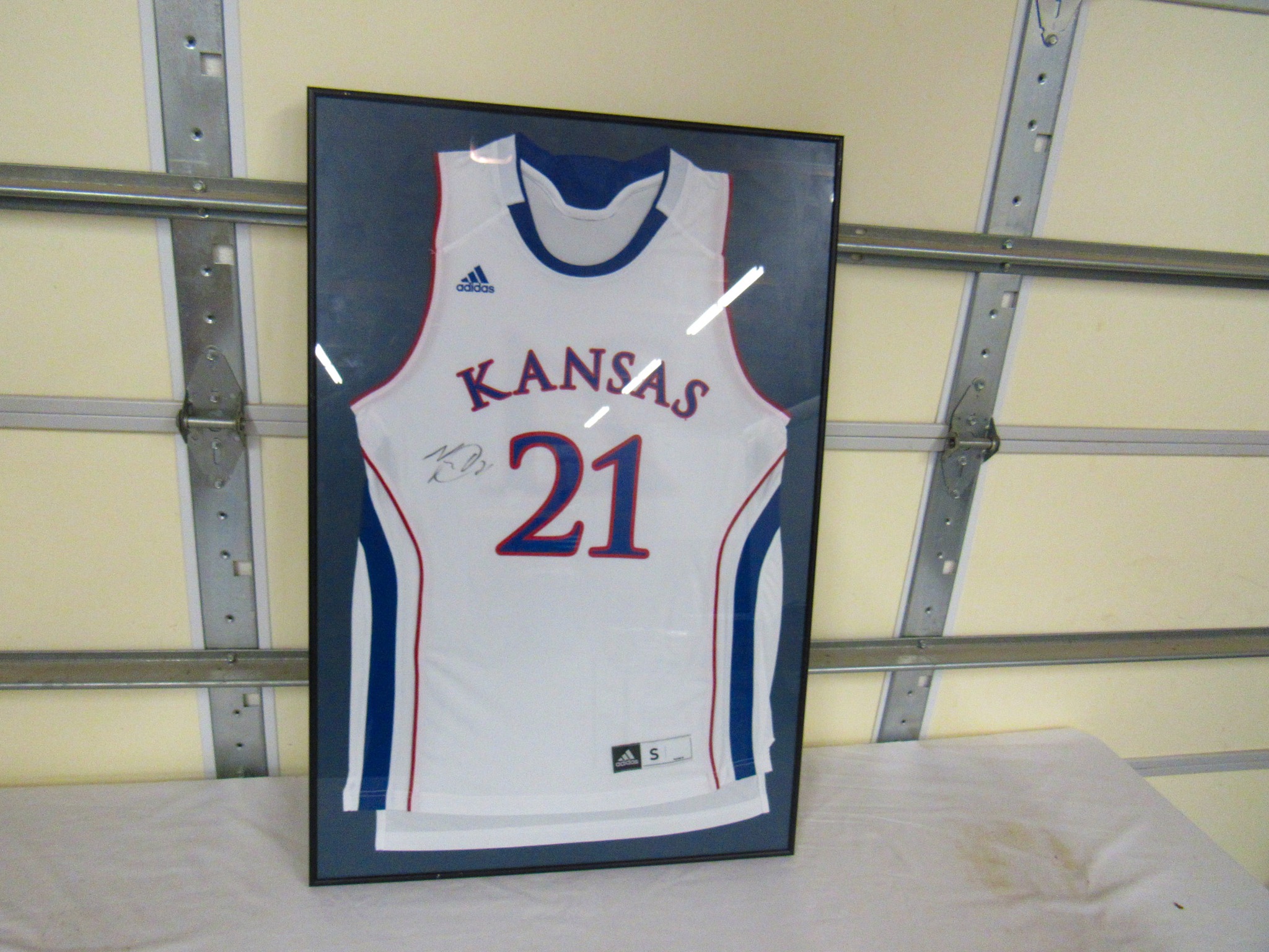 1960’s Leather KS Jayhawk LEATHER Jacket; Lawrence Dorsey-Liberty Post#14 Red Jacket w/ 1923 Style Jayhawk Emblem; 7 in. 1923 Style Jayhawk Paperweight Bookend; Three (3 in. 3 ½ in. 4 in.) Brass 1950’s Style Jayhawk Paperweights; 8 Signed Team KU Basketballs (2007-08, 2009-10, 2010-11, 1990-91,Etc.); Signed KU Jerseys (1990’s Jacque Vaughn #11,Morris Twin’s #21 & 22, #32 Darnell Jackson); 2008 NCAA Championship Team Signed Print; 1987-88 Jayhawk Team Signed Nike Cards (16 - Coach Brown & Players); 1989 Leesley Jayhawk Team Players Signed Cards; Jayhawk Cards: Chamberlain, Sayers, Riggins, Manning, Embiid, Braun 100’s of Others; Several Jayhawk Basketball Player Signed Prints; Chiefs: Mahomes / Kelce / Derrick Thomas; Royals: Brett / Witt / Jackson / ; Signed Team KC Comets Soccer Ball!