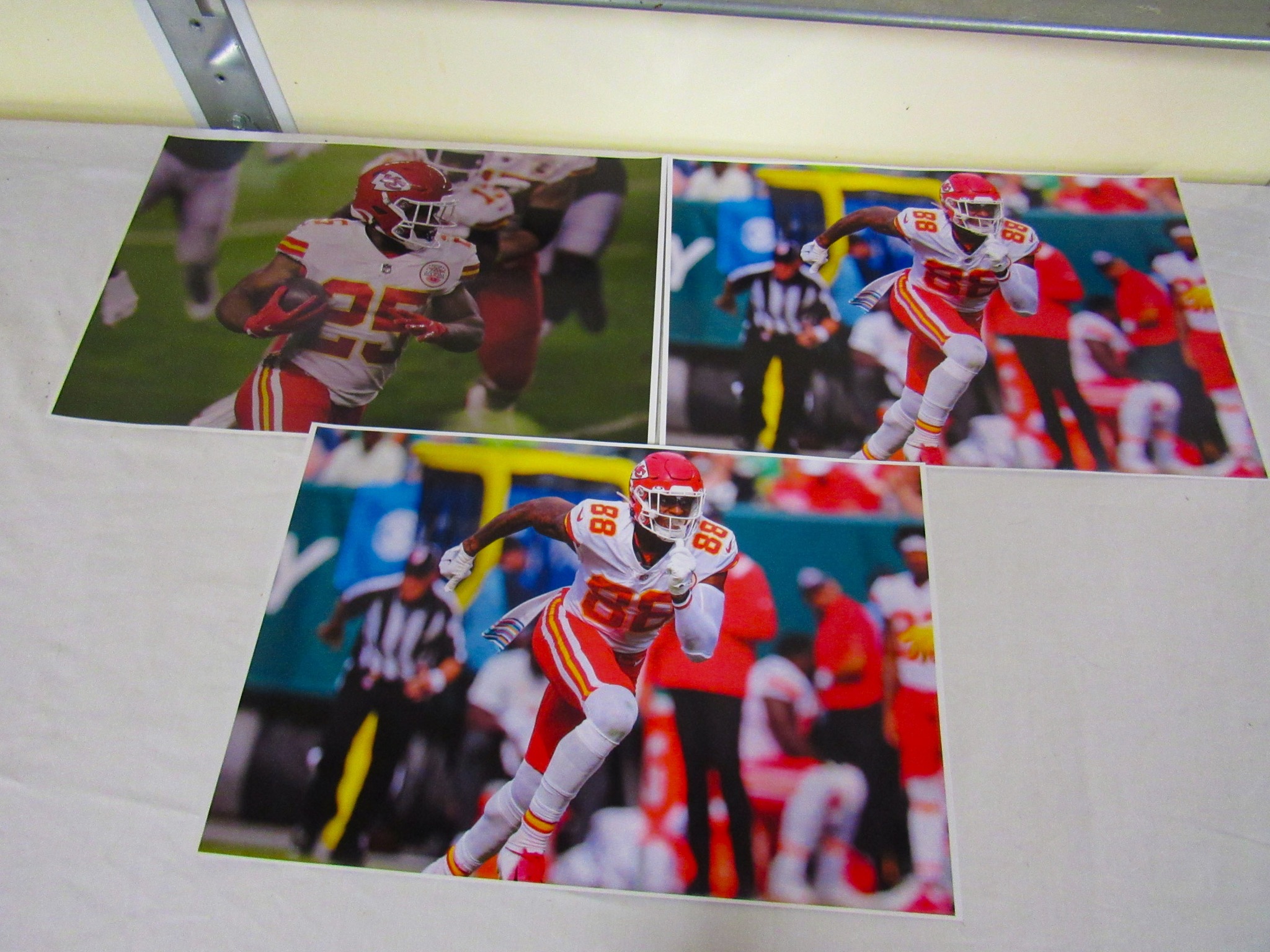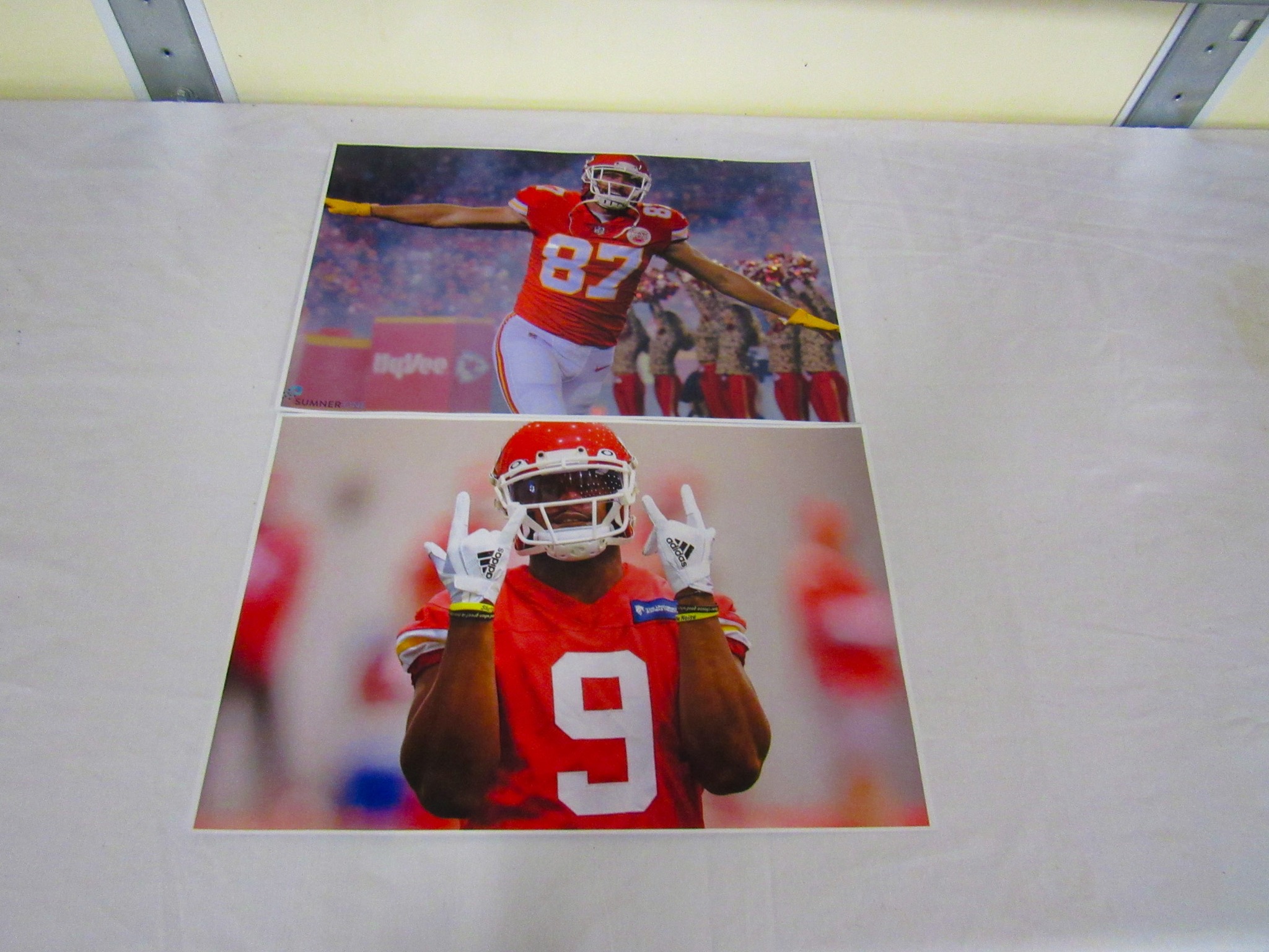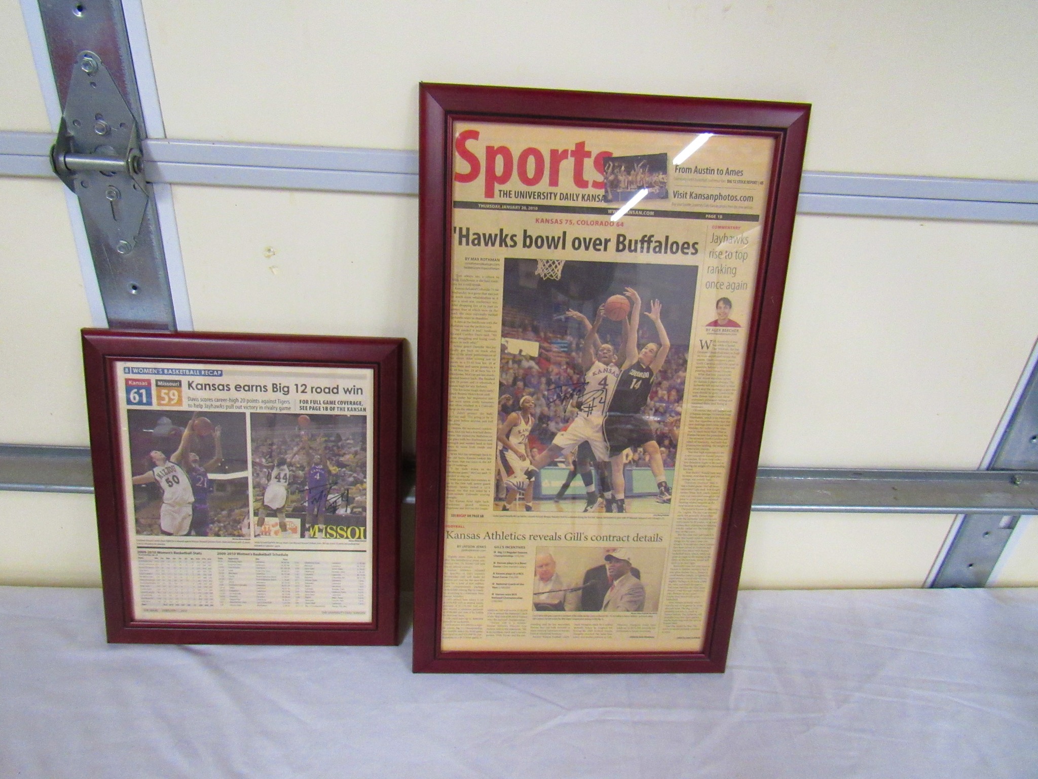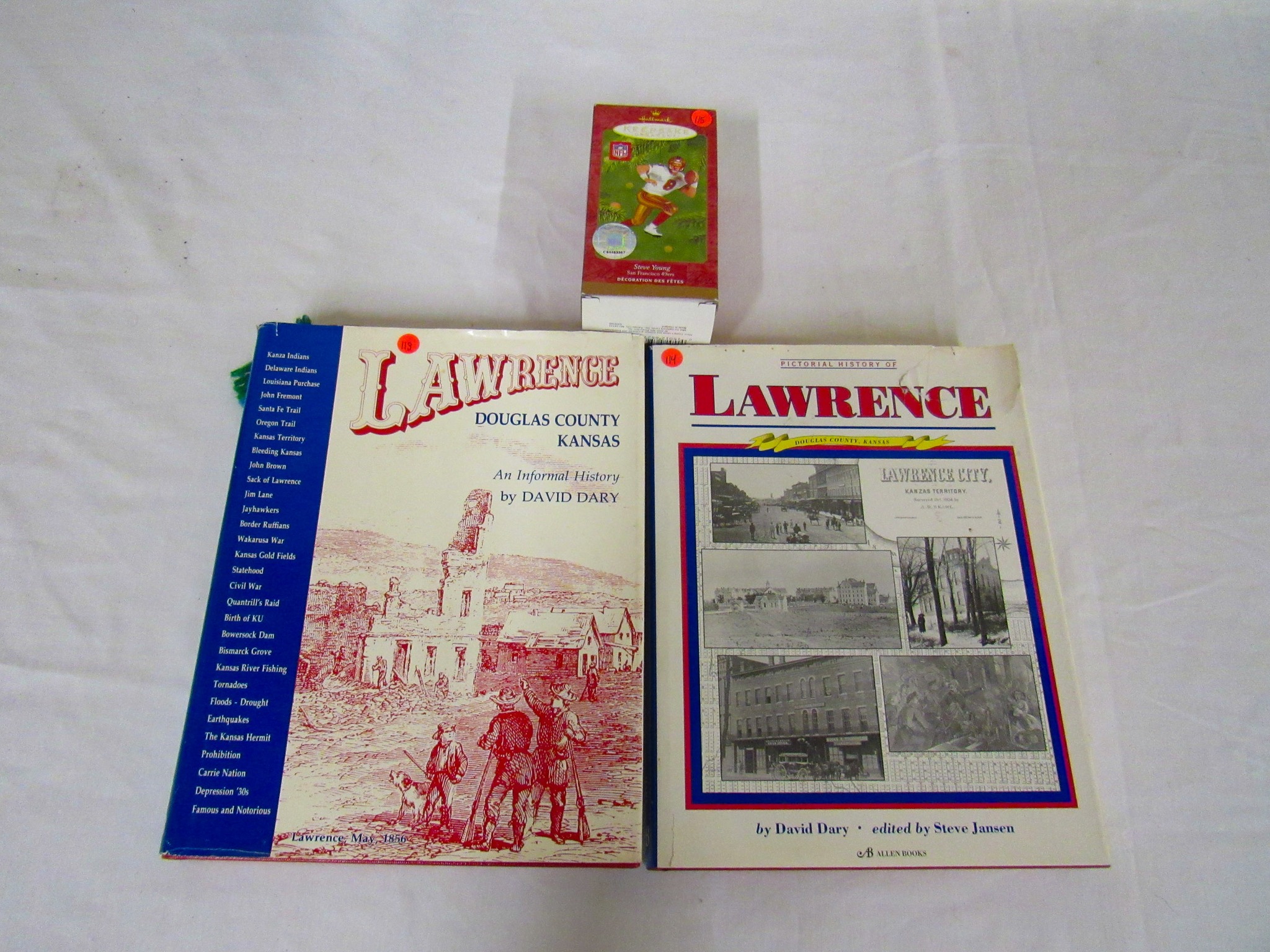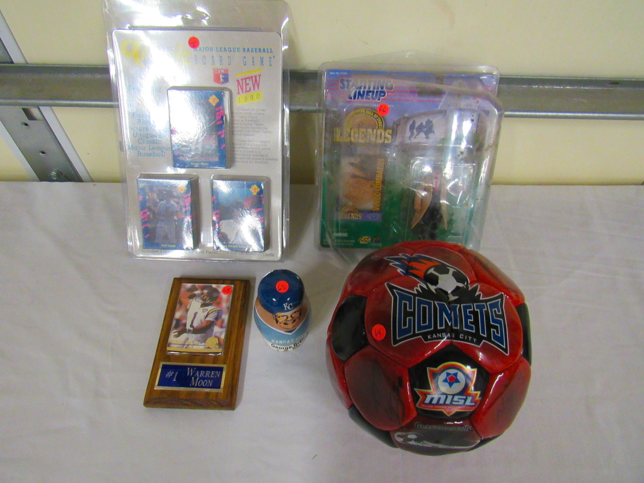 1960’s Leather KS Jayhawk LEATHER Jacket; Lawrence Dorsey-Liberty Post#14 Red Jacket w/ 1923 Style Jayhawk Emblem; 7 in. 1923 Style Jayhawk Paperweight Bookend; Three (3 in. 3 ½ in. 4 in.) Brass 1950’s Style Jayhawk Paperweights; 8 Signed Team KU Basketballs (2007-08, 2009-10, 2010-11, 1990-91,Etc.); Signed KU Jerseys (1990’s Jacque Vaughn #11,Morris Twin’s #21 & 22, #32 Darnell Jackson); 2008 NCAA Championship Team Signed Print; 1987-88 Jayhawk Team Signed Nike Cards (16 - Coach Brown & Players); 1989 Leesley Jayhawk Team Players Signed Cards; Jayhawk Cards: Chamberlain, Sayers, Riggins, Manning, Embiid, Braun 100’s of Others; Several Jayhawk Basketball Player Signed Prints; Chiefs: Mahomes / Kelce / Derrick Thomas; Royals: Brett / Witt / Jackson / ; Signed Team KC Comets Soccer Ball!