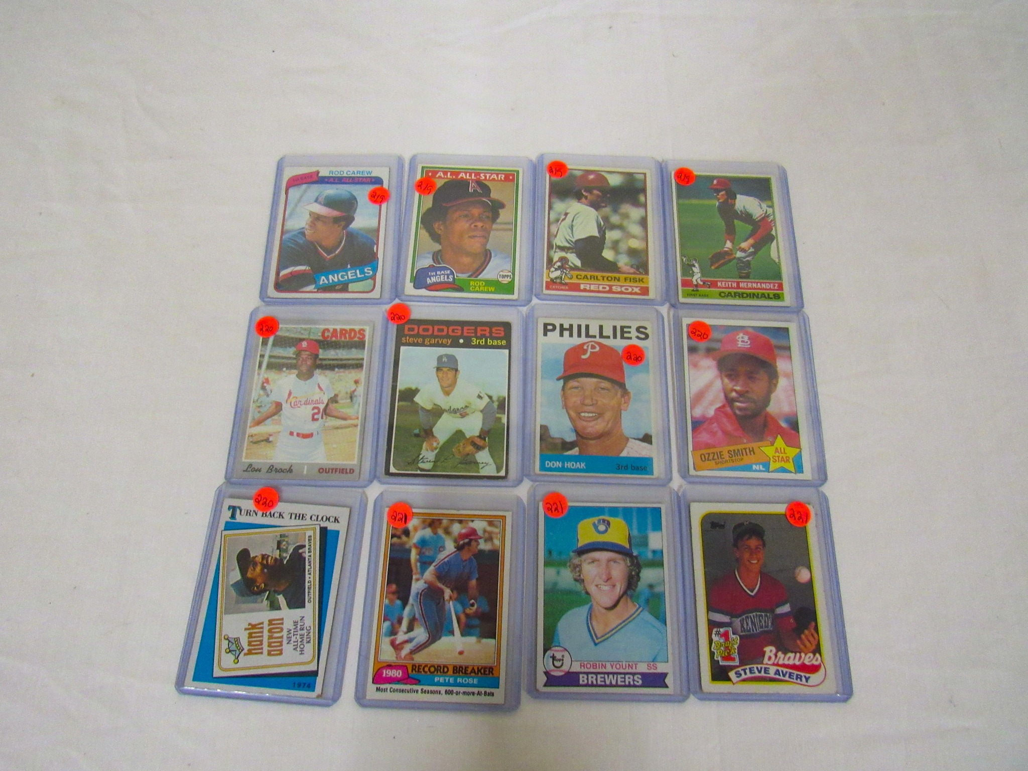 220. 5 - 1970 Topps #330 Lou Brock, 1971 Topps #341 Steve Garvey, 1964 Topps #254 Don Hoak Phillies, 1985 Topps #715 Ozzie Smith All Star St. Louis, 1989 Topps #663 15 Years Ago Hank Aaron