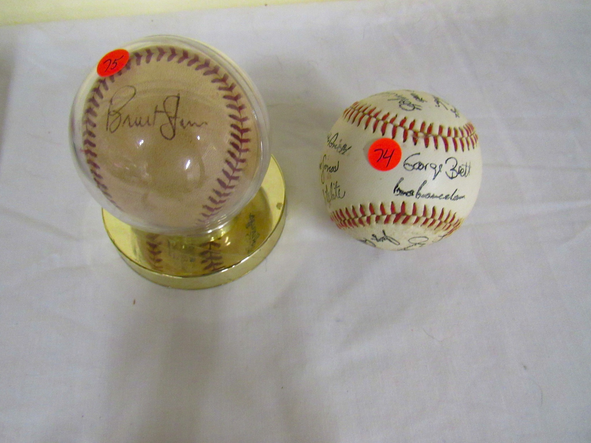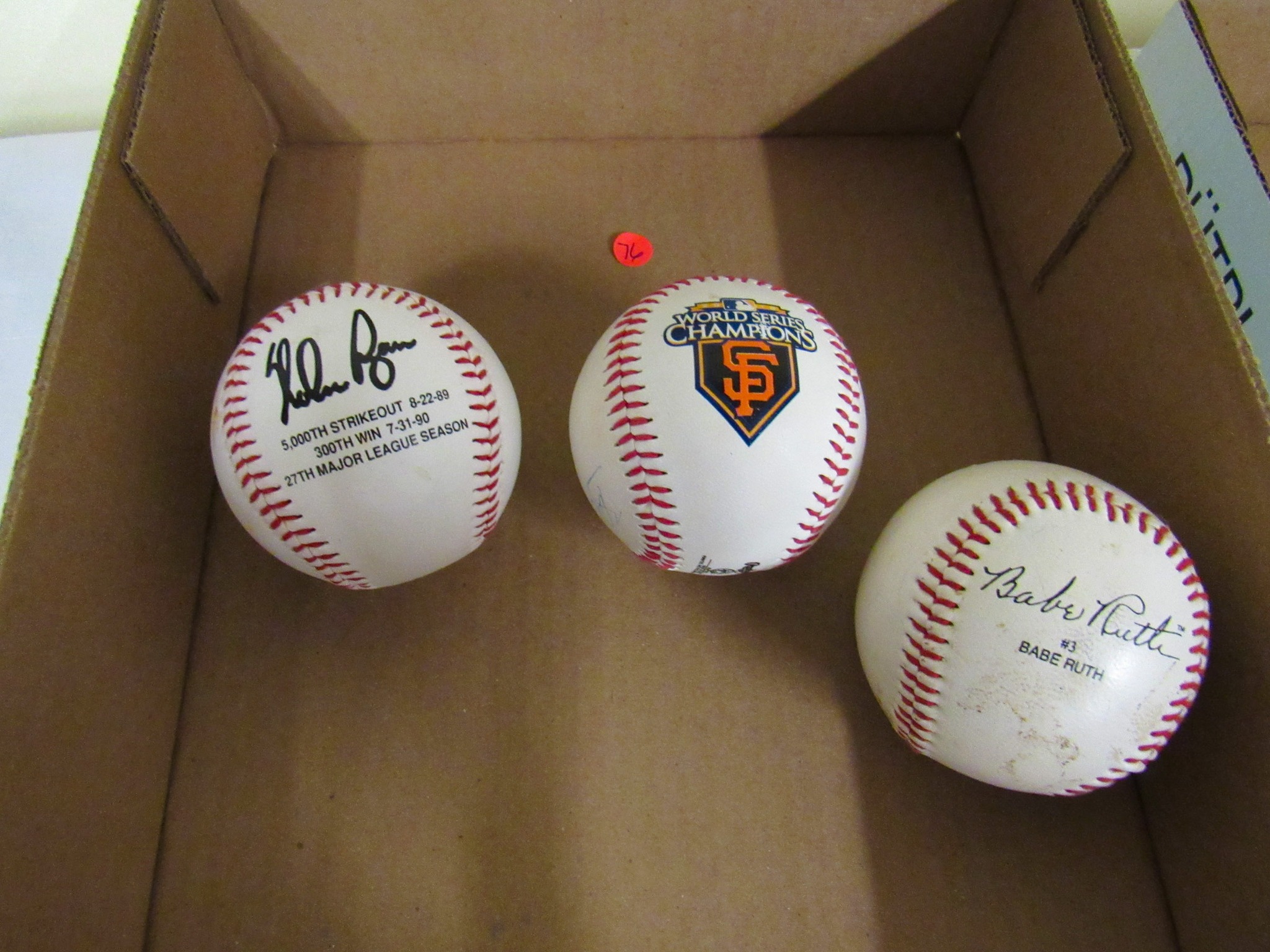 76. 3 Baseballs World Series SF Champions Babe Ruth 714 Homeruns 2211 RBI's 1976 Hall Fame