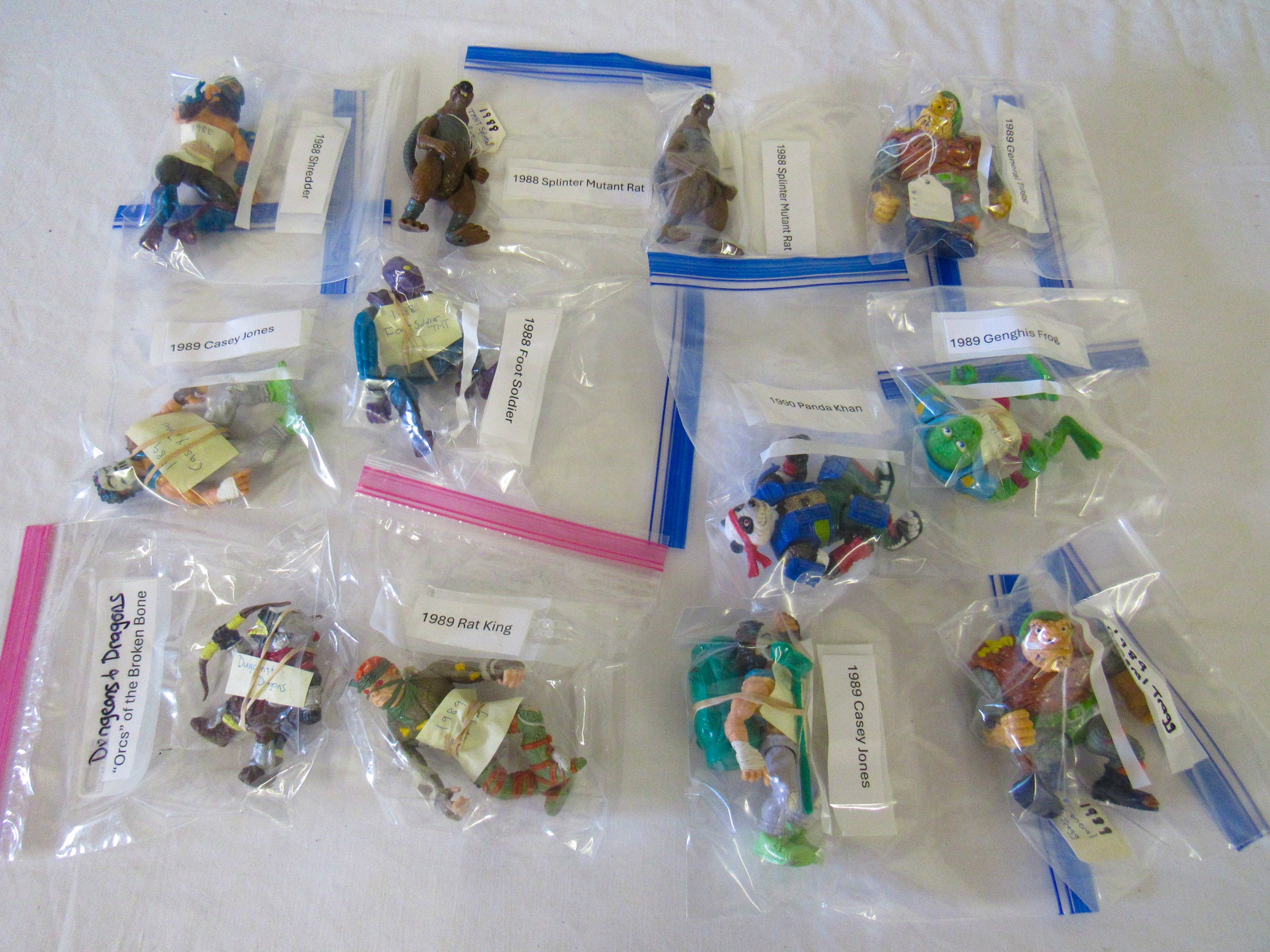 1993 The Beetles Collection Apple Card Set (160 +); 1980-90’s Teenage Mutant Ninja Turtles Collection: 89 Footski, 92 Raph’s Sewer Speed Boat, 91 Purple Hot Rod, Choppers, 92 High School Bus, 89 Party Wagon, 50 + Figurines (Michelangelo / Raphael / Leonardo / Donatello / Metal Head / Splinter Rat / Shredder / Etc.!); 15 + 1990’s GI Joe Figurines & Accessories / Clothing; 25 + Barbie & Ken Figirines w/ Clothing; Lewis Galoob Star Wars Darth Vadar & Micro Machine Play Set; Curious George Jack In The Box; Law / Dg. Books