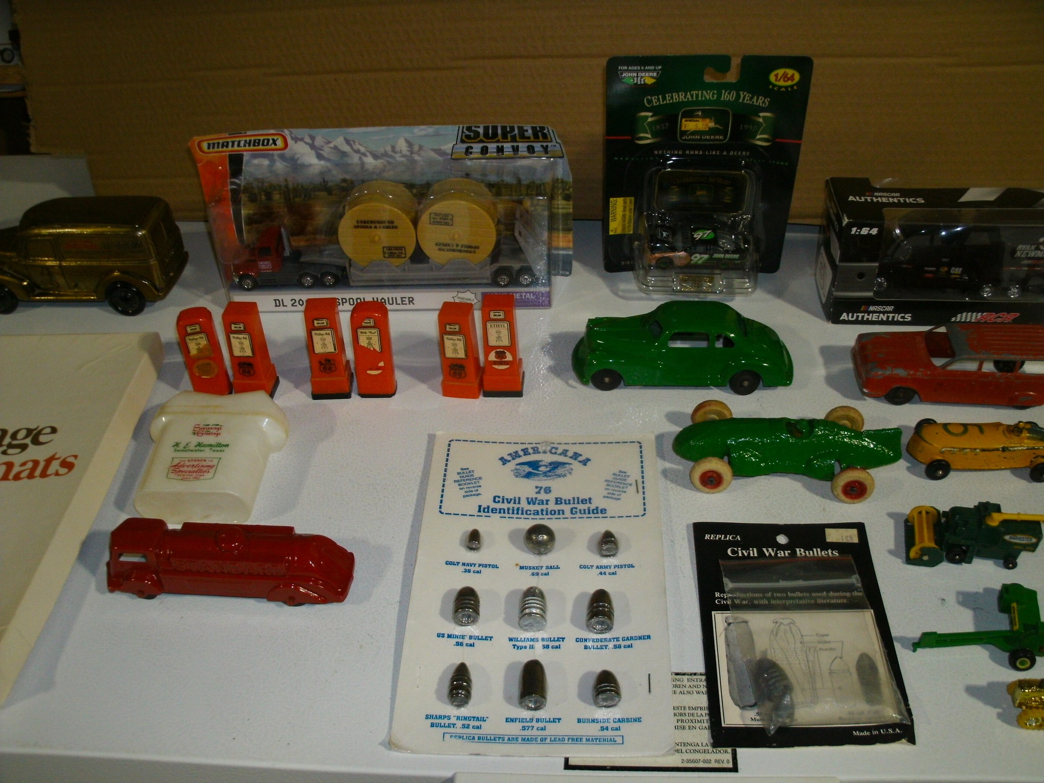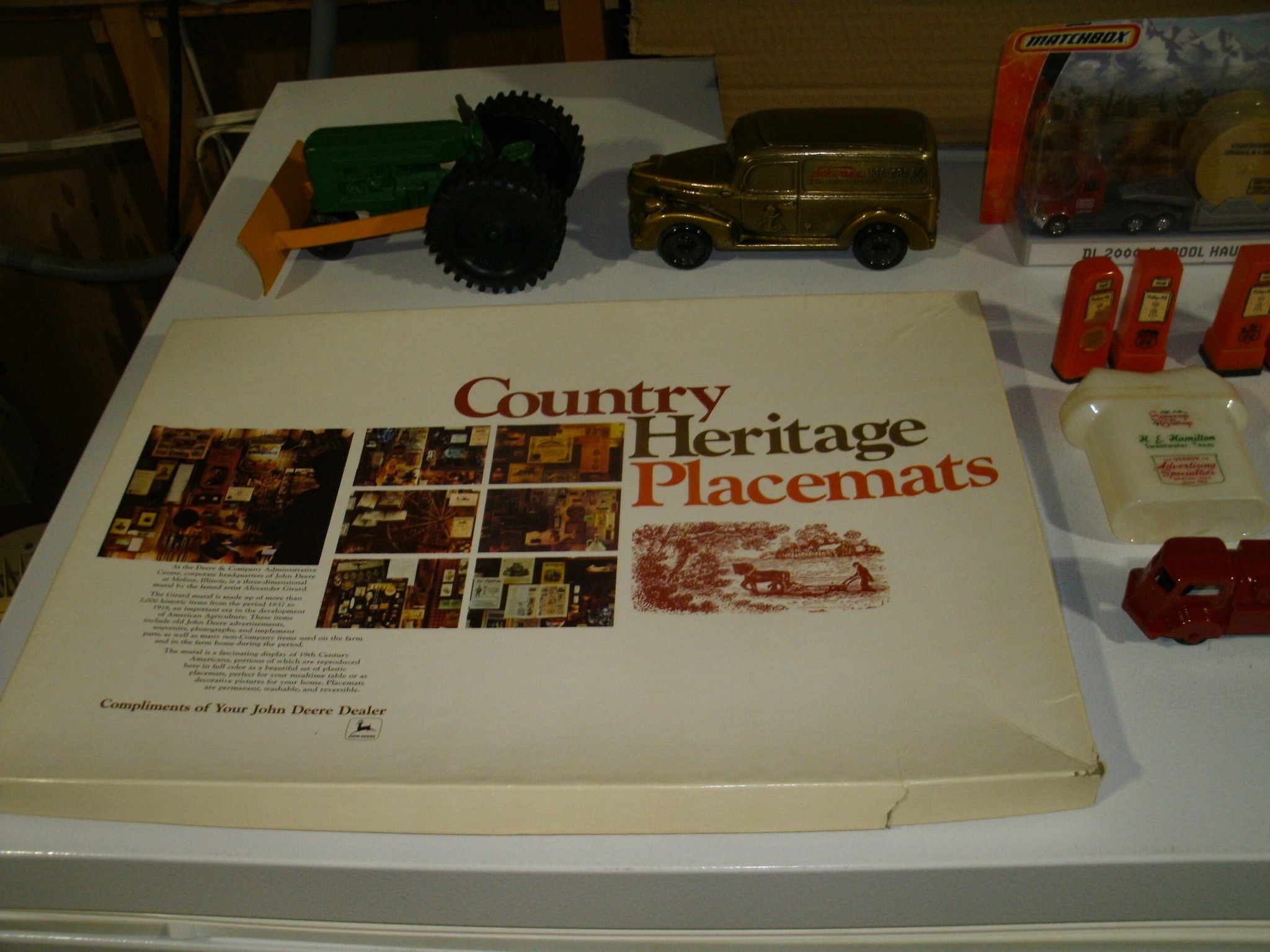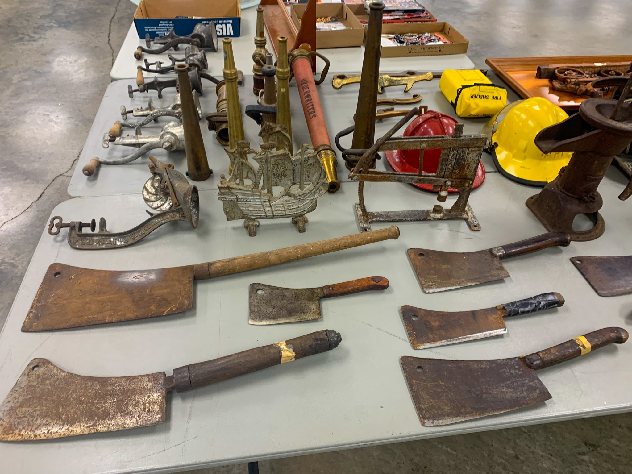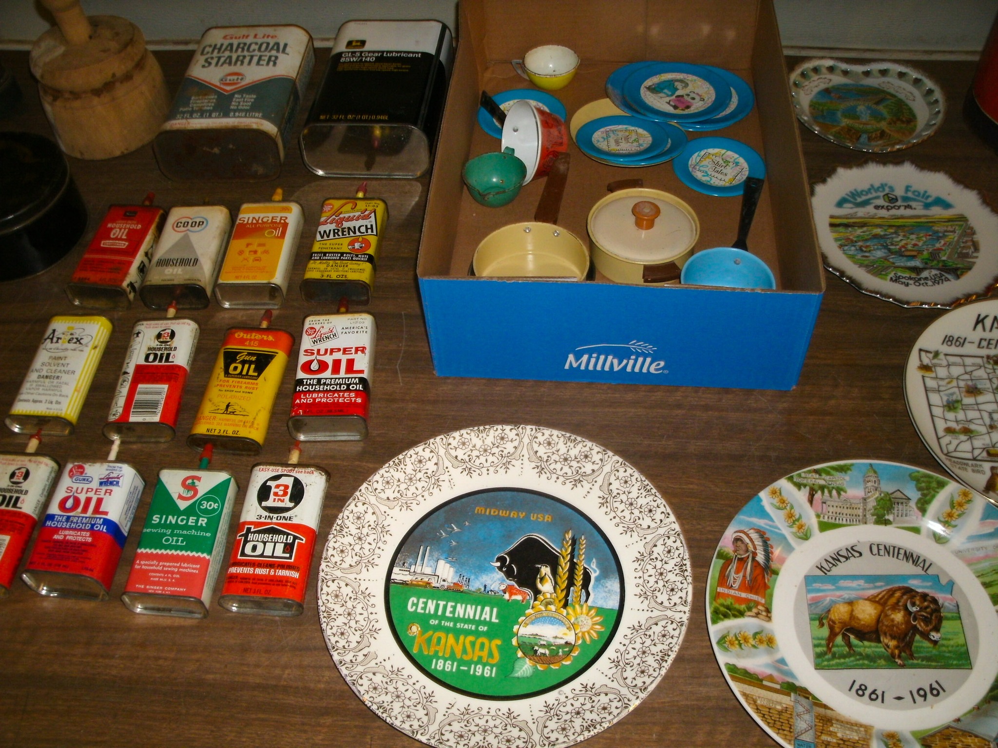 Vintage Weeden Horizontal Stationary Steam Engine; 2 Vintage Mini Stationary Engines; Maytag Oil Can; IH Cream Separator Oil Can; De Laval Metal Emblem; Union Kerosene Sad Iron Heater Stove; Brass Covered Wagon / Oxen Door Stop; Branding Irons; horse hames; #604 RR Lamp Flare; German WWII “Papier Geld” Red Cross Donation Metal Can; 1961 Key Rexall Drugs Law, KS Calendar; John L Emick Abstracts of Title Ethel High Owner Law, KS; Law, KS Red Souvenir Glass; 1600’s Moroccan or Algerian Miquelet Musket (Wall Hanger?); Scrimshaw 2 Knife Set w/ Display; Vintage Cast-Iron BOXER Dog Door Stops / Banks; Boston Terriers Vintage Chalk & Cast-Iron Banks; 50+ Vintage Cast-Iron Banks of All Sorts!; 50+ Cast-Iron Pieces Griswold / Wagner / Alfred Andresen / Benjamin & Medwin / Pocasset / Cresent / Ozark / Miami / Skillets / Dutch Oven / Muffin Pans / Griddles; Griswold #282 Mini Crispy Corn or Wheat Stick Pan (Rare!); Cast-Iron Wagner / Lodge / Etc. Ashtrays; 1893 KS Legislator War Picture (KS Capitol) Picture; “Appeal To The Great Spirit” Native Am. Picture; Leonard Peltier Native Am Chief Art Signed Framed Picture; Firefighter Memorabilia: Axes / Extinguisher Boxes / Brass Nozzles / Hydrant Wrenches / Helmets; Vintage Durant Fuel Counter; MP Vintage Coin Changer; 2 Hereford Bull Vintage Chalk Banks; 1903 Pat Economy Qt. Jar; colored Jars; WW II Compass; 1950’s Mossberg “Spot Shot” Spotting Scope; Miniature Replica Gun Collection; Sheriff Badges; Pocket Watches; Sterling & Costume Jewelry; Vehicle Metal Emblems; Junction City Memorabilia (1961 Republic Hard Back Book); Fighting Irish Pendleton Vintage Blanket; Cigar Molds / Boxes / Accessories; Zippo Lighters & Others!; Snap On Clock & Belt Buckles; belt buckles; Ande Rooney JD Porcelain Sign; MoorMan’s / Coke / RR Signs; tin signs; COORS Lighted Pool Table Light; Martin Senour Paints & Coke Lighted Clocks; Bud Light lighted sign; Harley Davidson Motorcycle Memorabilia: saddle bags, pants, coats, helmet, signs, etc.!; bullet pencils; Vintage Marbles; Toys: Spec Cast Allis-Chalmers Wheels of Times Highly Detailed Model D15 Tractor w/ Sprayer NIB, Precision Series Allis-Chalmers Model WD 45 NF NIB; Coll. Sp. Edition February 2001 Louisville Allis-Chalmers WC WF on Rubber NIB, Farmall H & F-20 Tractors NIB, 1948 Allis Chalmers “G” NIB, Agco ST45 Compact NIB, International Row Crop NIB, Cast-Iron AC Tractor, JD Airplanes NIB, Power Wheels Pedal Car, Tonka / Structo / Construction; Spec Cast Allis-Chalmers 1916 Studebaker Bank NIB; Allis-Chalmers 12 in. Lantern NIB; 2 Vintage 5 in 1 Pinball Games; Skelly / JD 4 Leg / COOP 5 gal. Cans; KS license plates; Motorcycle license plates; 50+ Knives: Falkner Wild West Bowie w/ case, Frost w/ sheaths, Military Bowie, RA 36 Military, Elk Ridge Quail Upland w/ Leather Sheath, Ducks Unlimited w/ wooden display & leather sheath, many other knives; Advertising Yard Sticks & Wooden Boxes; milk jars; salt / peppers; KS State plates; Nascar Dale Earnhardt #3 items; 160+ Flats of Advertising Pens over 15K!; Oil Lamps; Quilts; CAT Rolling Utility Seat w/ Creeper NIB; Lincoln Electric Course Backpack & Welding Supplies (New); hand tools.