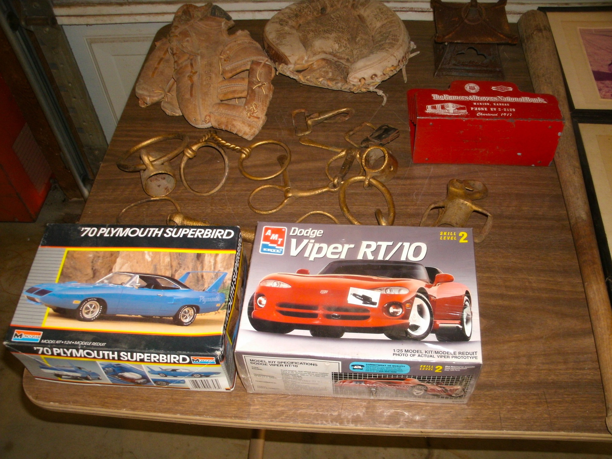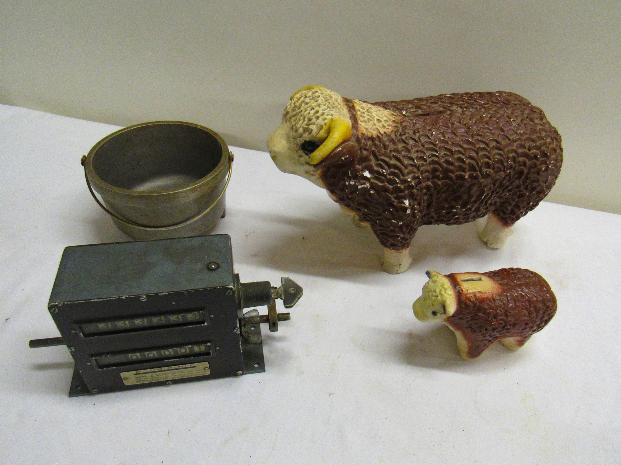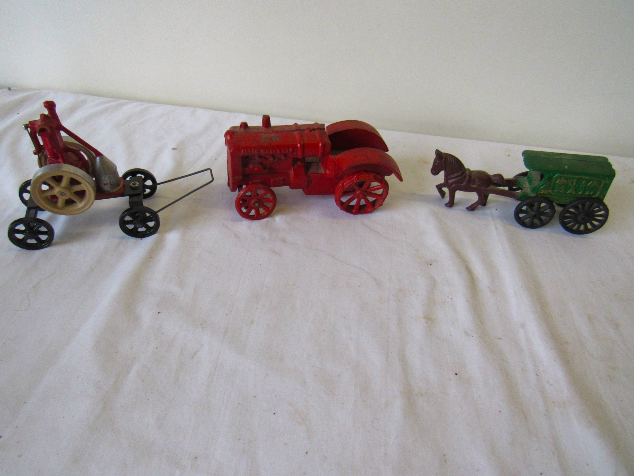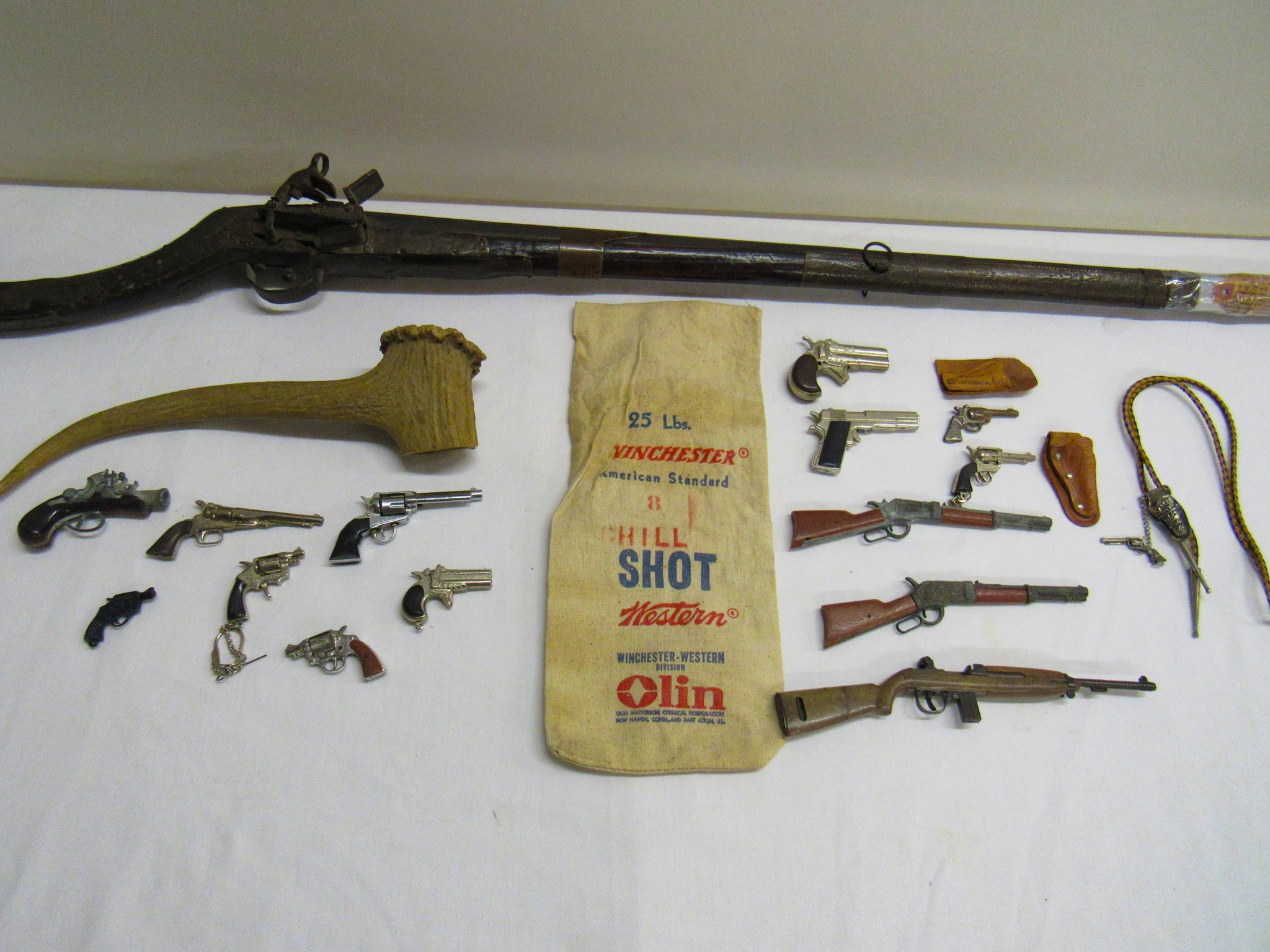 Vintage Weeden Horizontal Stationary Steam Engine; 2 Vintage Mini Stationary Engines; Maytag Oil Can; IH Cream Separator Oil Can; De Laval Metal Emblem; Union Kerosene Sad Iron Heater Stove; Brass Covered Wagon / Oxen Door Stop; Branding Irons; horse hames; #604 RR Lamp Flare; German WWII “Papier Geld” Red Cross Donation Metal Can; 1961 Key Rexall Drugs Law, KS Calendar; John L Emick Abstracts of Title Ethel High Owner Law, KS; Law, KS Red Souvenir Glass; 1600’s Moroccan or Algerian Miquelet Musket (Wall Hanger?); Scrimshaw 2 Knife Set w/ Display; Vintage Cast-Iron BOXER Dog Door Stops / Banks; Boston Terriers Vintage Chalk & Cast-Iron Banks; 50+ Vintage Cast-Iron Banks of All Sorts!; 50+ Cast-Iron Pieces Griswold / Wagner / Alfred Andresen / Benjamin & Medwin / Pocasset / Cresent / Ozark / Miami / Skillets / Dutch Oven / Muffin Pans / Griddles; Griswold #282 Mini Crispy Corn or Wheat Stick Pan (Rare!); Cast-Iron Wagner / Lodge / Etc. Ashtrays; 1893 KS Legislator War Picture (KS Capitol) Picture; “Appeal To The Great Spirit” Native Am. Picture; Leonard Peltier Native Am Chief Art Signed Framed Picture; Firefighter Memorabilia: Axes / Extinguisher Boxes / Brass Nozzles / Hydrant Wrenches / Helmets; Vintage Durant Fuel Counter; MP Vintage Coin Changer; 2 Hereford Bull Vintage Chalk Banks; 1903 Pat Economy Qt. Jar; colored Jars; WW II Compass; 1950’s Mossberg “Spot Shot” Spotting Scope; Miniature Replica Gun Collection; Sheriff Badges; Pocket Watches; Sterling & Costume Jewelry; Vehicle Metal Emblems; Junction City Memorabilia (1961 Republic Hard Back Book); Fighting Irish Pendleton Vintage Blanket; Cigar Molds / Boxes / Accessories; Zippo Lighters & Others!; Snap On Clock & Belt Buckles; belt buckles; Ande Rooney JD Porcelain Sign; MoorMan’s / Coke / RR Signs; tin signs; COORS Lighted Pool Table Light; Martin Senour Paints & Coke Lighted Clocks; Bud Light lighted sign; Harley Davidson Motorcycle Memorabilia: saddle bags, pants, coats, helmet, signs, etc.!; bullet pencils; Vintage Marbles; Toys: Spec Cast Allis-Chalmers Wheels of Times Highly Detailed Model D15 Tractor w/ Sprayer NIB, Precision Series Allis-Chalmers Model WD 45 NF NIB; Coll. Sp. Edition February 2001 Louisville Allis-Chalmers WC WF on Rubber NIB, Farmall H & F-20 Tractors NIB, 1948 Allis Chalmers “G” NIB, Agco ST45 Compact NIB, International Row Crop NIB, Cast-Iron AC Tractor, JD Airplanes NIB, Power Wheels Pedal Car, Tonka / Structo / Construction; Spec Cast Allis-Chalmers 1916 Studebaker Bank NIB; Allis-Chalmers 12 in. Lantern NIB; 2 Vintage 5 in 1 Pinball Games; Skelly / JD 4 Leg / COOP 5 gal. Cans; KS license plates; Motorcycle license plates; 50+ Knives: Falkner Wild West Bowie w/ case, Frost w/ sheaths, Military Bowie, RA 36 Military, Elk Ridge Quail Upland w/ Leather Sheath, Ducks Unlimited w/ wooden display & leather sheath, many other knives; Advertising Yard Sticks & Wooden Boxes; milk jars; salt / peppers; KS State plates; Nascar Dale Earnhardt #3 items; 160+ Flats of Advertising Pens over 15K!; Oil Lamps; Quilts; CAT Rolling Utility Seat w/ Creeper NIB; Lincoln Electric Course Backpack & Welding Supplies (New); hand tools.