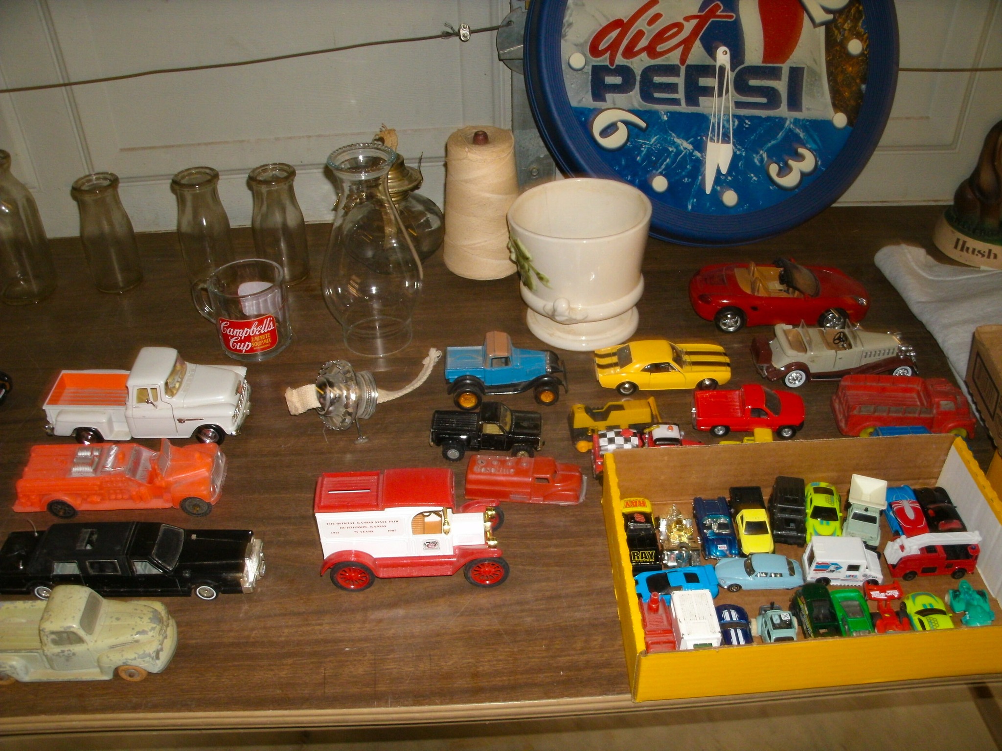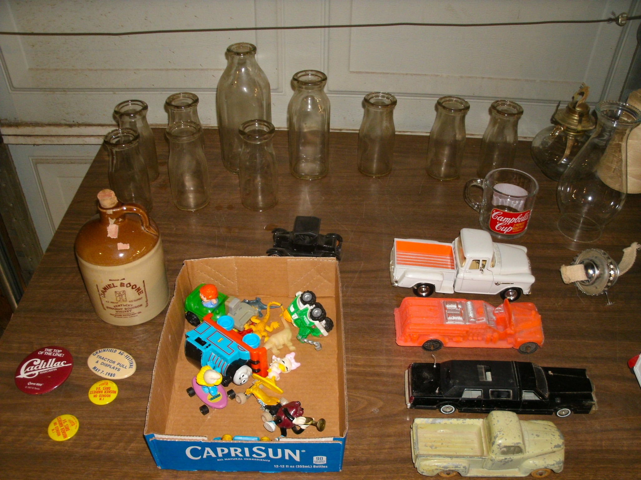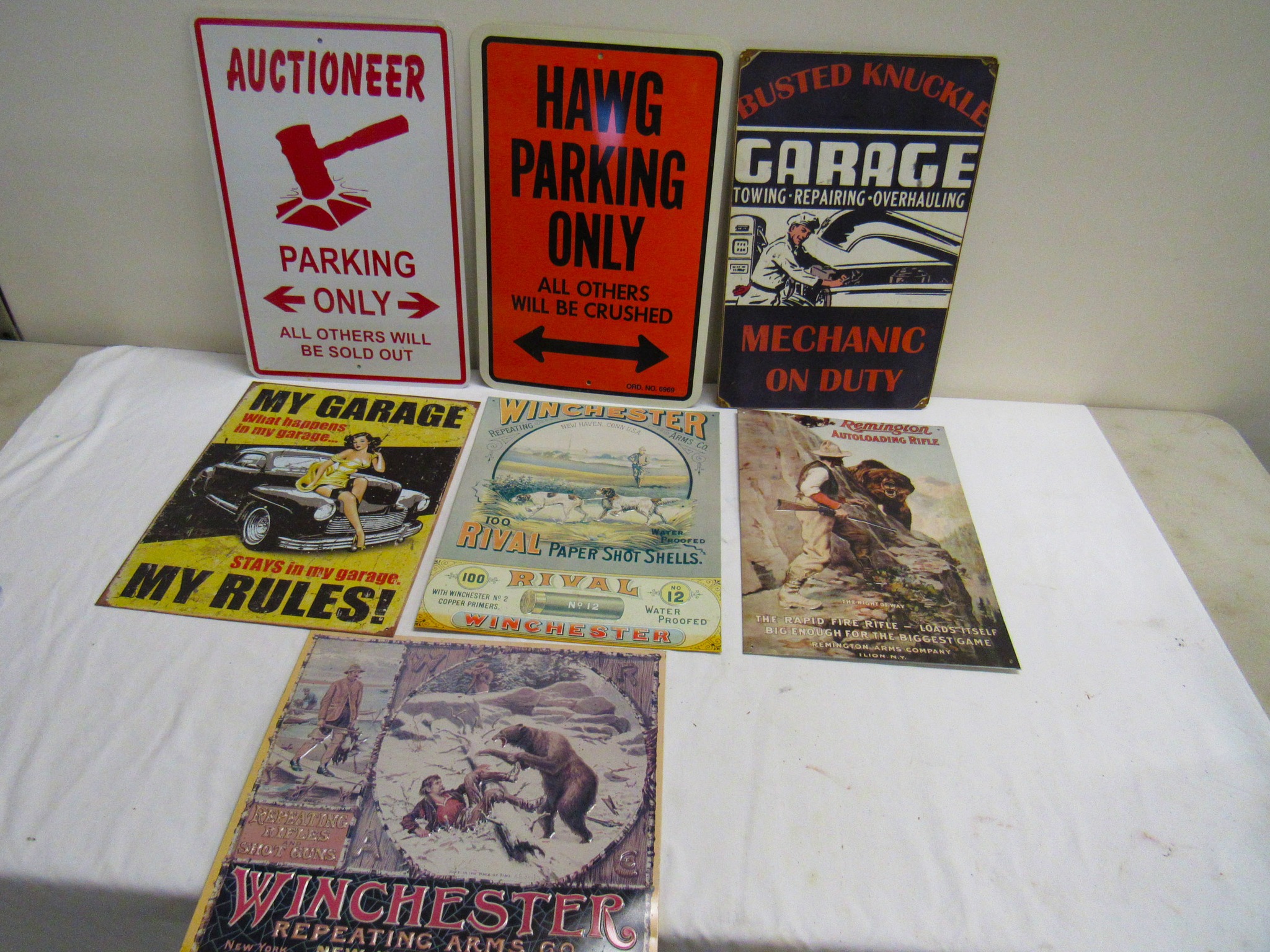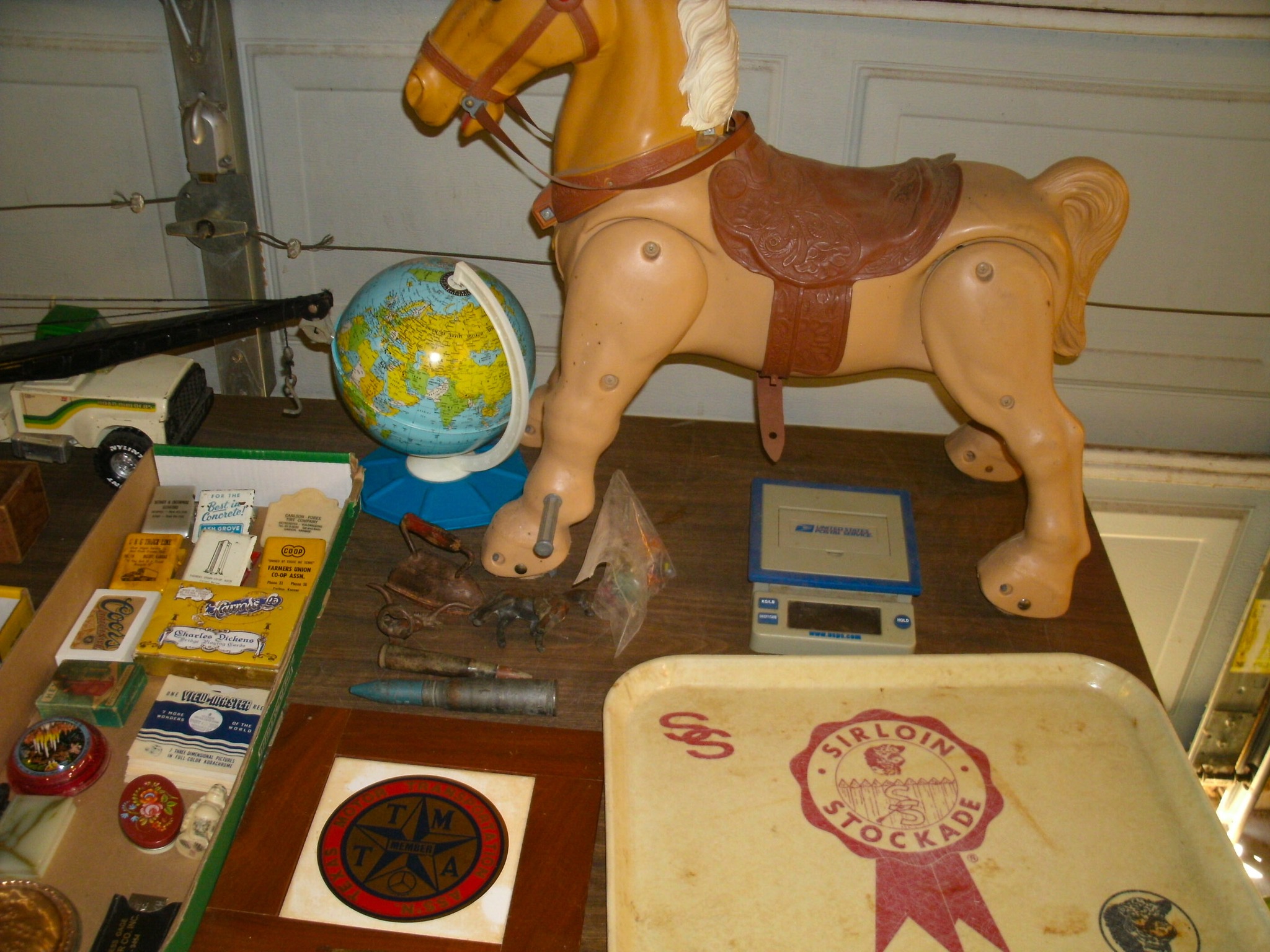 Vintage Weeden Horizontal Stationary Steam Engine; 2 Vintage Mini Stationary Engines; Maytag Oil Can; IH Cream Separator Oil Can; De Laval Metal Emblem; Union Kerosene Sad Iron Heater Stove; Brass Covered Wagon / Oxen Door Stop; Branding Irons; horse hames; #604 RR Lamp Flare; German WWII “Papier Geld” Red Cross Donation Metal Can; 1961 Key Rexall Drugs Law, KS Calendar; John L Emick Abstracts of Title Ethel High Owner Law, KS; Law, KS Red Souvenir Glass; 1600’s Moroccan or Algerian Miquelet Musket (Wall Hanger?); Scrimshaw 2 Knife Set w/ Display; Vintage Cast-Iron BOXER Dog Door Stops / Banks; Boston Terriers Vintage Chalk & Cast-Iron Banks; 50+ Vintage Cast-Iron Banks of All Sorts!; 50+ Cast-Iron Pieces Griswold / Wagner / Alfred Andresen / Benjamin & Medwin / Pocasset / Cresent / Ozark / Miami / Skillets / Dutch Oven / Muffin Pans / Griddles; Griswold #282 Mini Crispy Corn or Wheat Stick Pan (Rare!); Cast-Iron Wagner / Lodge / Etc. Ashtrays; 1893 KS Legislator War Picture (KS Capitol) Picture; “Appeal To The Great Spirit” Native Am. Picture; Leonard Peltier Native Am Chief Art Signed Framed Picture; Firefighter Memorabilia: Axes / Extinguisher Boxes / Brass Nozzles / Hydrant Wrenches / Helmets; Vintage Durant Fuel Counter; MP Vintage Coin Changer; 2 Hereford Bull Vintage Chalk Banks; 1903 Pat Economy Qt. Jar; colored Jars; WW II Compass; 1950’s Mossberg “Spot Shot” Spotting Scope; Miniature Replica Gun Collection; Sheriff Badges; Pocket Watches; Sterling & Costume Jewelry; Vehicle Metal Emblems; Junction City Memorabilia (1961 Republic Hard Back Book); Fighting Irish Pendleton Vintage Blanket; Cigar Molds / Boxes / Accessories; Zippo Lighters & Others!; Snap On Clock & Belt Buckles; belt buckles; Ande Rooney JD Porcelain Sign; MoorMan’s / Coke / RR Signs; tin signs; COORS Lighted Pool Table Light; Martin Senour Paints & Coke Lighted Clocks; Bud Light lighted sign; Harley Davidson Motorcycle Memorabilia: saddle bags, pants, coats, helmet, signs, etc.!; bullet pencils; Vintage Marbles; Toys: Spec Cast Allis-Chalmers Wheels of Times Highly Detailed Model D15 Tractor w/ Sprayer NIB, Precision Series Allis-Chalmers Model WD 45 NF NIB; Coll. Sp. Edition February 2001 Louisville Allis-Chalmers WC WF on Rubber NIB, Farmall H & F-20 Tractors NIB, 1948 Allis Chalmers “G” NIB, Agco ST45 Compact NIB, International Row Crop NIB, Cast-Iron AC Tractor, JD Airplanes NIB, Power Wheels Pedal Car, Tonka / Structo / Construction; Spec Cast Allis-Chalmers 1916 Studebaker Bank NIB; Allis-Chalmers 12 in. Lantern NIB; 2 Vintage 5 in 1 Pinball Games; Skelly / JD 4 Leg / COOP 5 gal. Cans; KS license plates; Motorcycle license plates; 50+ Knives: Falkner Wild West Bowie w/ case, Frost w/ sheaths, Military Bowie, RA 36 Military, Elk Ridge Quail Upland w/ Leather Sheath, Ducks Unlimited w/ wooden display & leather sheath, many other knives; Advertising Yard Sticks & Wooden Boxes; milk jars; salt / peppers; KS State plates; Nascar Dale Earnhardt #3 items; 160+ Flats of Advertising Pens over 15K!; Oil Lamps; Quilts; CAT Rolling Utility Seat w/ Creeper NIB; Lincoln Electric Course Backpack & Welding Supplies (New); hand tools.