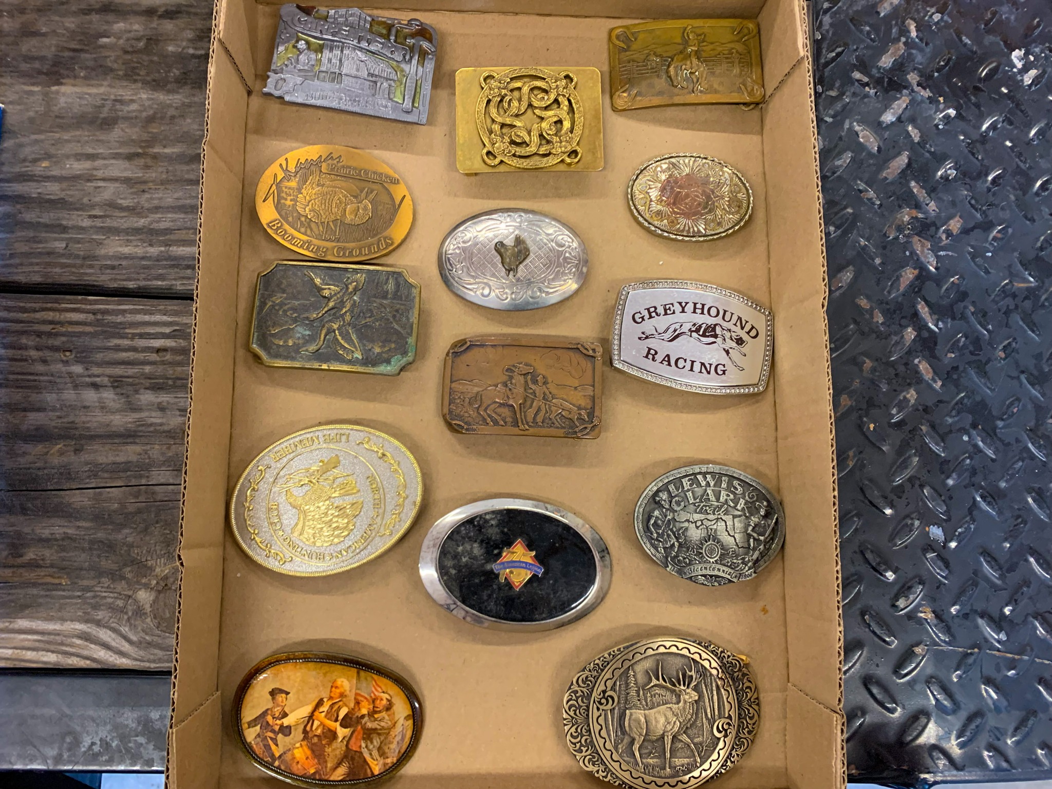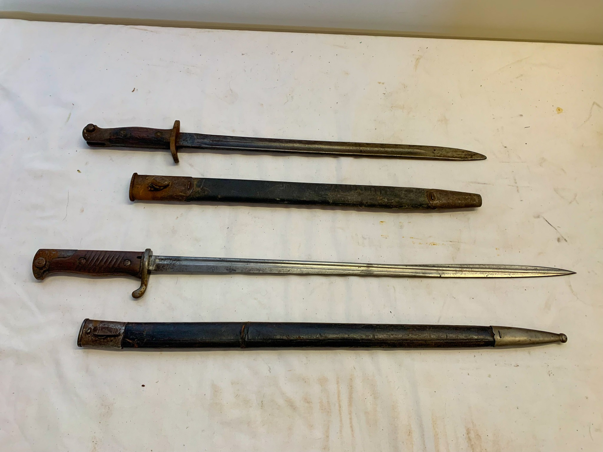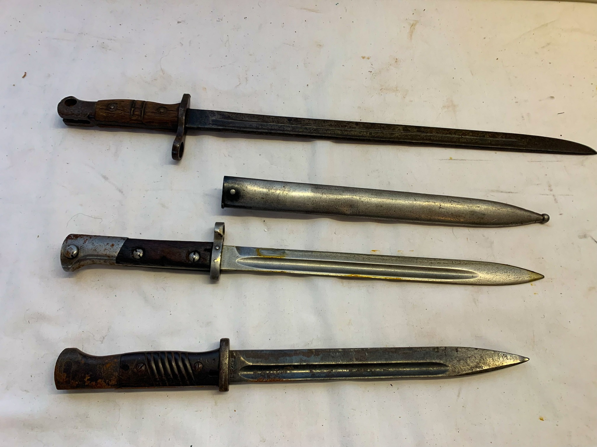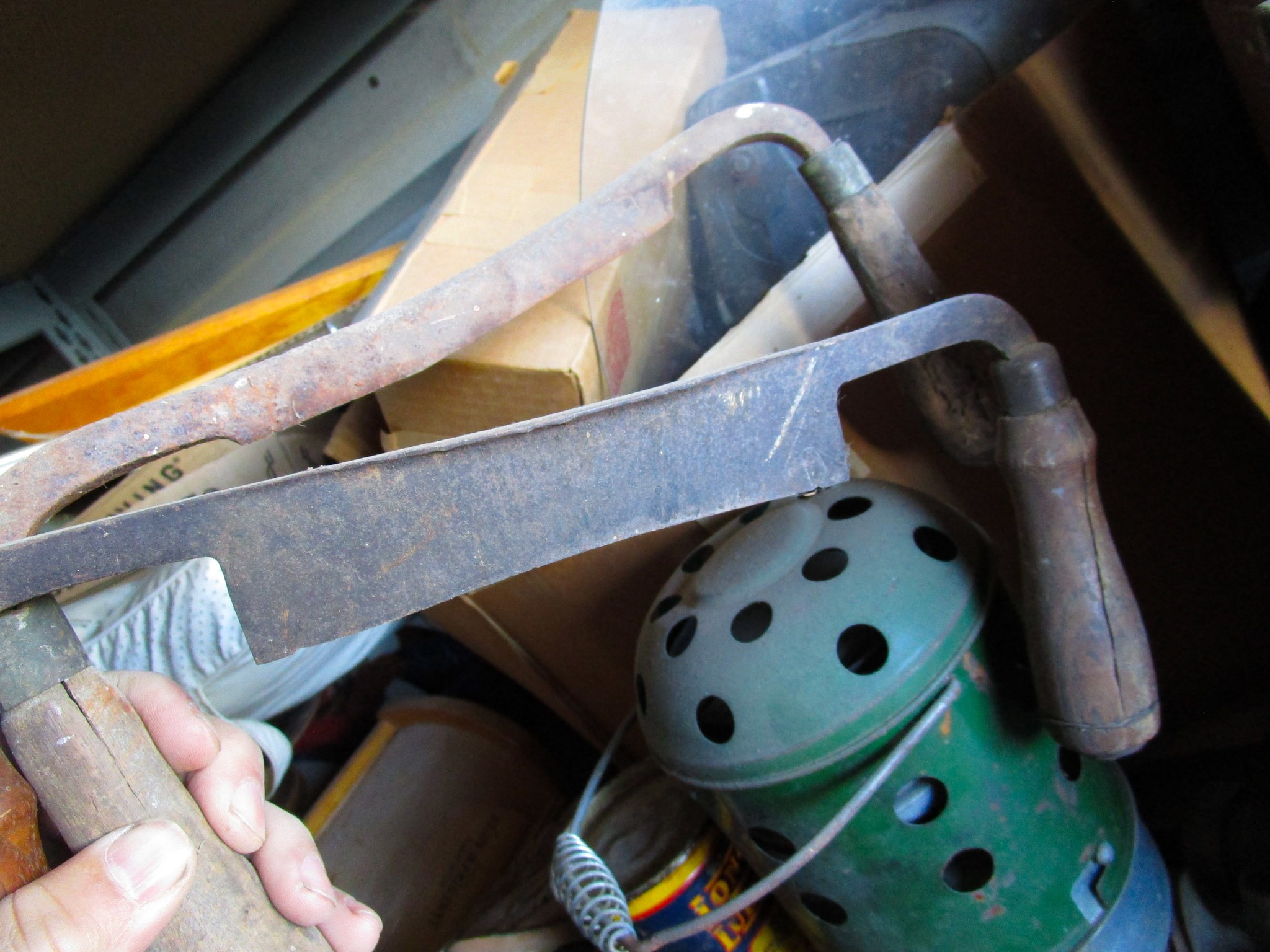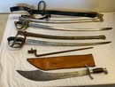 Mid-Century Items; Blow Molds; Jayhawk Decanter; Civil War Musket Bayonet; 24 in. Arabic Saber w/ Scabbard; 34 in. Sword w/ Scabbard & CS Belt; 24 in. Sword w/ Swirl Marble Handle; Fabrica DE Armas 32 in. Spanish Arms Sword w/ Scabbard; 12 in. WW I CSZ H Czech Mauser Bayonet w/ Scabbard; 17 in. WW I US 1917 Bayonet; 10 in. German Durkopp 3053 Bayonet; 17 in. Lithgow 1916 Bayonet w/ Scabbard; 22 in. Alex Coppel WW II Germany Bayonet w/ Scabbard; WW II Japanese Flag; 200 + Knives: Buck / NRA / Old Timer / Winchester / New Holland / Maxam / Boy Scout / Schrade / Advertising / Many More!; 30 + Belt Buckles: 57 Chevy / Chevy / Ottawa Trucking / McCormick Deering / DeKalb / NC Hybrids / Etc.; Cast-Iron Cookware; Retro Radios / Electronics; Merantz Stereo; Rabco ST-4 Turntable; video games; wood working tools; older car parts; Vintage Christmas Lights; Advertising Clocks & Signs; fans; coolers; Sports Equipment; Advertising Oil Cans; wall pictures; Statues; Jayhawk Hotel Plate; Spittoon; Vintage Light Fixtures; Birdcage; Racetrack; Camp Stoves; Vintage Clothing; Box Lot Items;