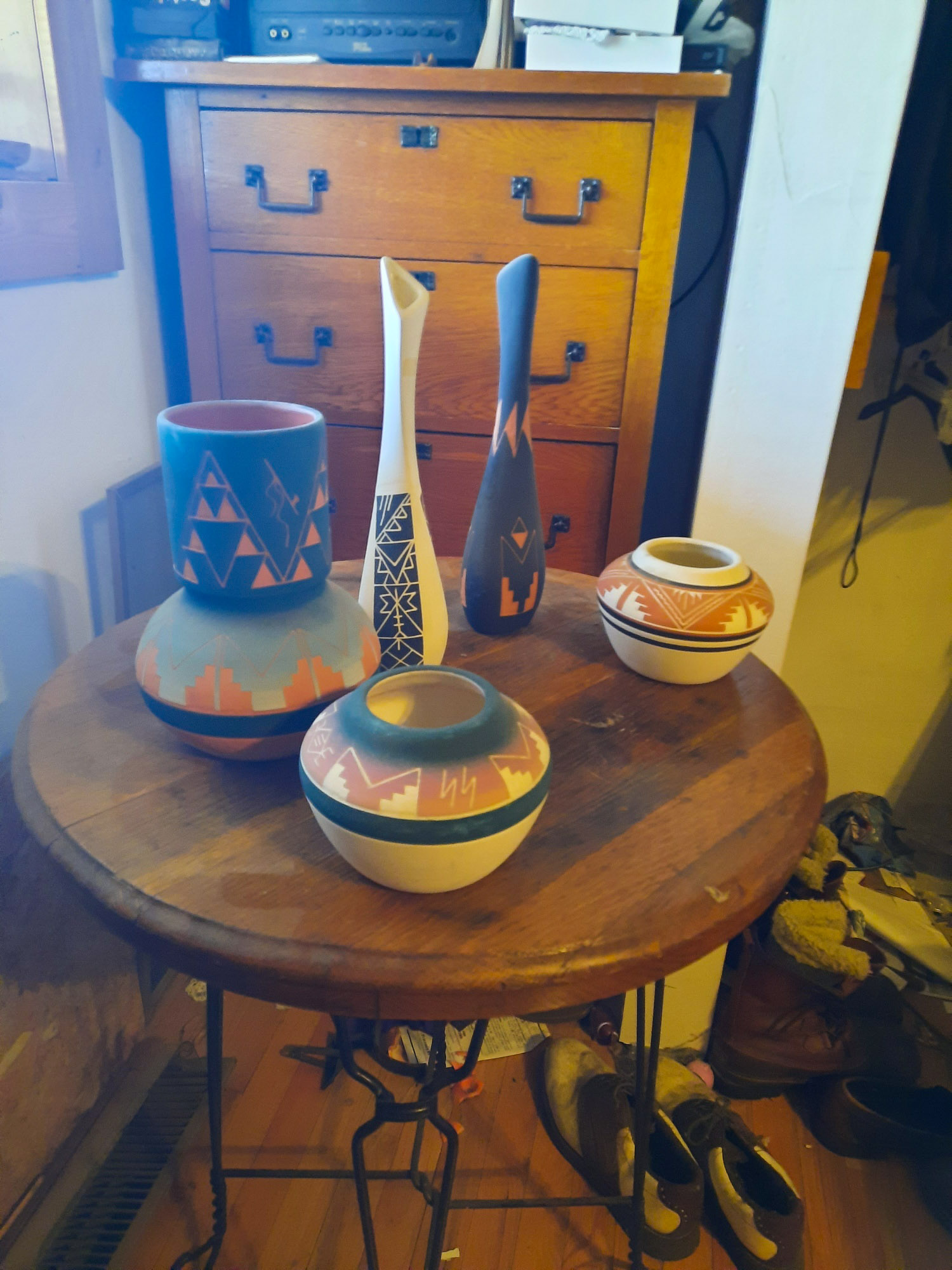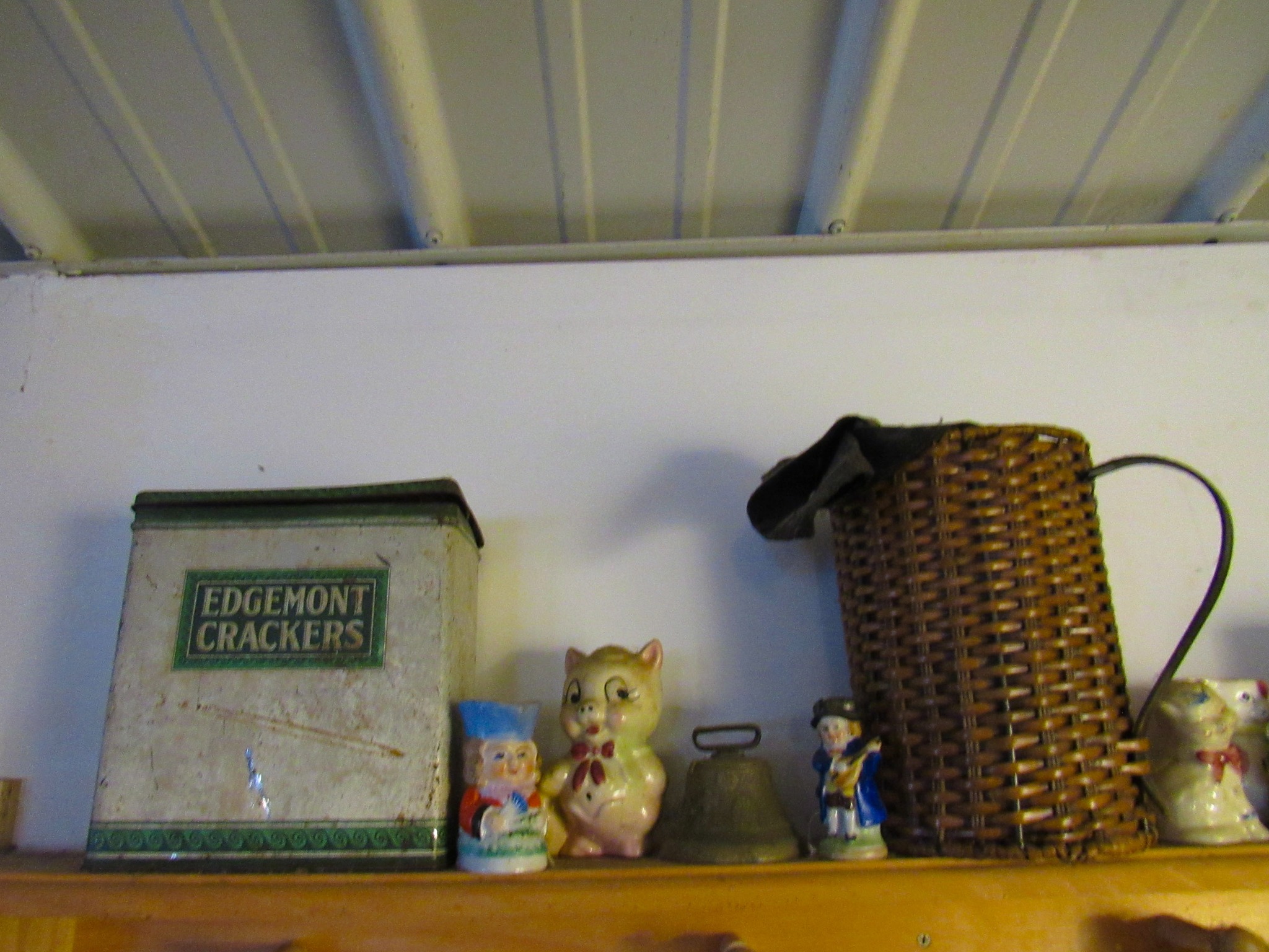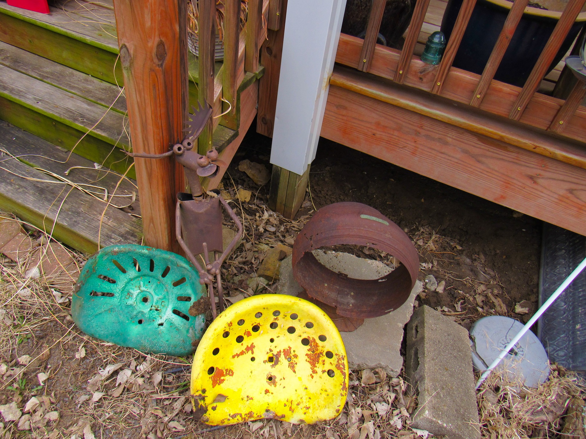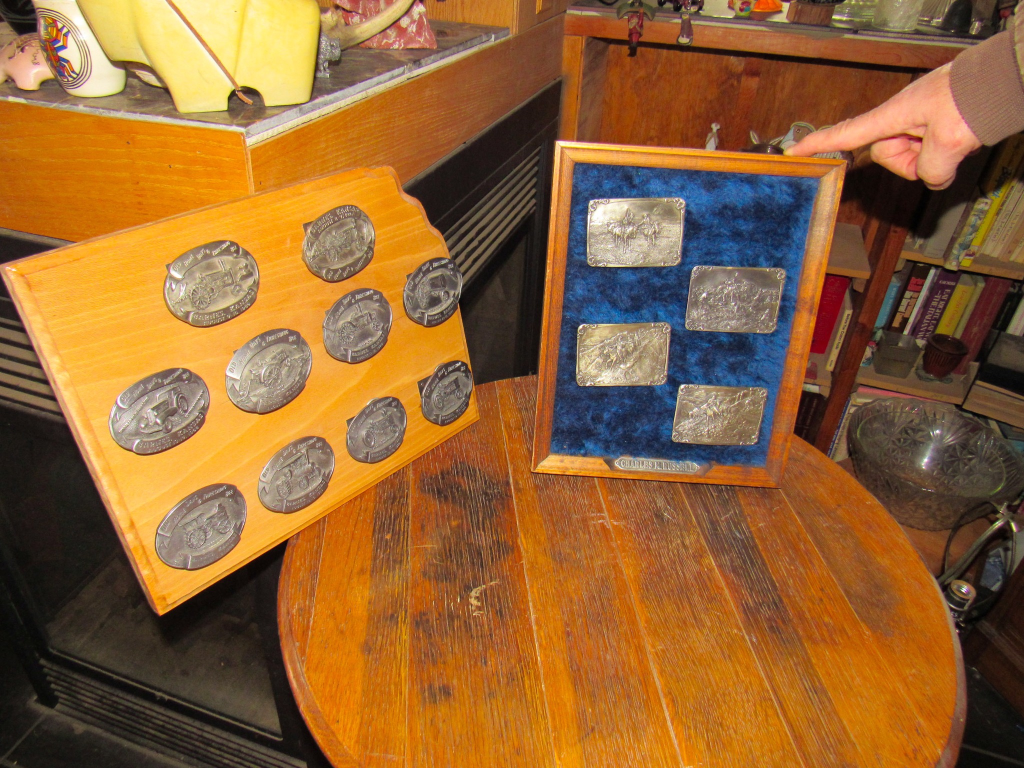 Vintage Cheyeene Native American War Shield; Sioux Pottery Pieces; Native Am. Plates; Wrought Iron Folk Art; Amish Hickory Bentwood Rocker; Quantrill Raid (Law) Framed Picture #8 / 500(Ernst Ulmer ?); Stained Glass Window; 2 Vintage Ringling Bros. and Barnum & Bailey Circus Framed Pictures; Vintage The Equitable Series Framed Picture (Signed Bob Gibson / Warren Spahn / etc.); Vintage AMOCO 3 x 4 Marina Boat Double Sided Metal Sign; 1970's Michelob Dry Beer Sign w/ Lady; Rainbo Bread tin sign; Coke Bottle thermometer sign; DO NOT ENTER metal sign; Copenhagen Chew Vintage Thermometer; Spring Wagon Set; Wooden Wagon Wheel; CROCKS: #15 Red Wing w/ 6 in. wing, 1890's Birch Leaf Union Red Wing, 1904 #3 Red Wing Union 4 in. wing, 2 1920's #5 Redwing 4 in wings Whiskey Jugs, 5 gallon Blue Ribbon, Bee Hive, #3 Birch Leaf Butter Churn, Red Wing Union Ko-Rec Feeder, Henderson Foot Warmer Crock, Fulper Germ-proof Filter crock; Aladdin Lamps: Pink / Lincoln Drape / Brass; Copper Fire Extinguisher; Table Top Toledo Hardware Scale; 1930's License Plates; 1970's Cathedral Style GE Radio; Wood Slab End Table(made by Gary); Vintage Patio Set; DEERING cast-iron seat / stool; implement metal seats; enamel ware; Bird pottery; Advertising Tins; 2008 KS Jayhawk National Champion Belt Bickle; Limited Ed. Charles M. Russell 4 Belt Buckle Set; "Old Home Days & Threshing Bee" Barnes KS 10 Belt Buckle Set mounted on KS Wooden Sign; KS State Fair & Flint Hills Rodeo Belt Buckles New in Wrappers; marble top table; deer sheds; wash boards; cast-iron stands; primitives tools; Comfort Glow wall heater; Pit Boss Smoker; Master Built BBQ Grill; Numerous items too many to mention!