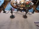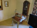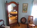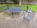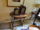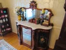 Victorian Matching Orante China Curio Cabinets; Victorian Marble Top Sideboard Buffet Cabinet; Solid Brass Bed; Unusual Victorian Style Corner Cabinet; Wedgewood Coffee Table; Victorian Marble Top Dresser & Mirror; Full Length Dressing Mirror; Entry Chair; Marble In-Laid End Table; Matching Needle Point Chairs; Sewing Rockers; Make-Up Table; Cane Rocker; Smoking Table; Walnut Bed; 2 Cedar Chests; 7 ft. Vintage German Grandfather Clock; Ingraham Wall Clock; Atkins Regulator Clock; Seth Thomas & German Mantle Clocks; Iranian Wool Area Rug; Area Rugs; Oriental Wall Tapestry; Vintage Lamps & Shades; 1883 Cornelia Schouten Canvas Frame Art Picture; O Franta Framed Art Picture; Pastry Eaters Bartolome Murillo framed picture; Vintage Framed Pictures; Wrought Iron Patio Set Table / Chairs / Loveseat / Tea Cart / Lounger / Side Tables; Stained Glass
