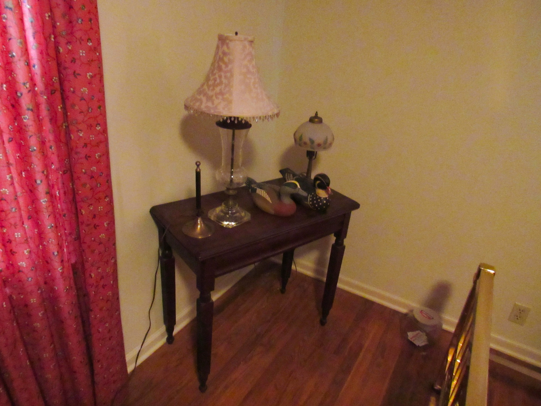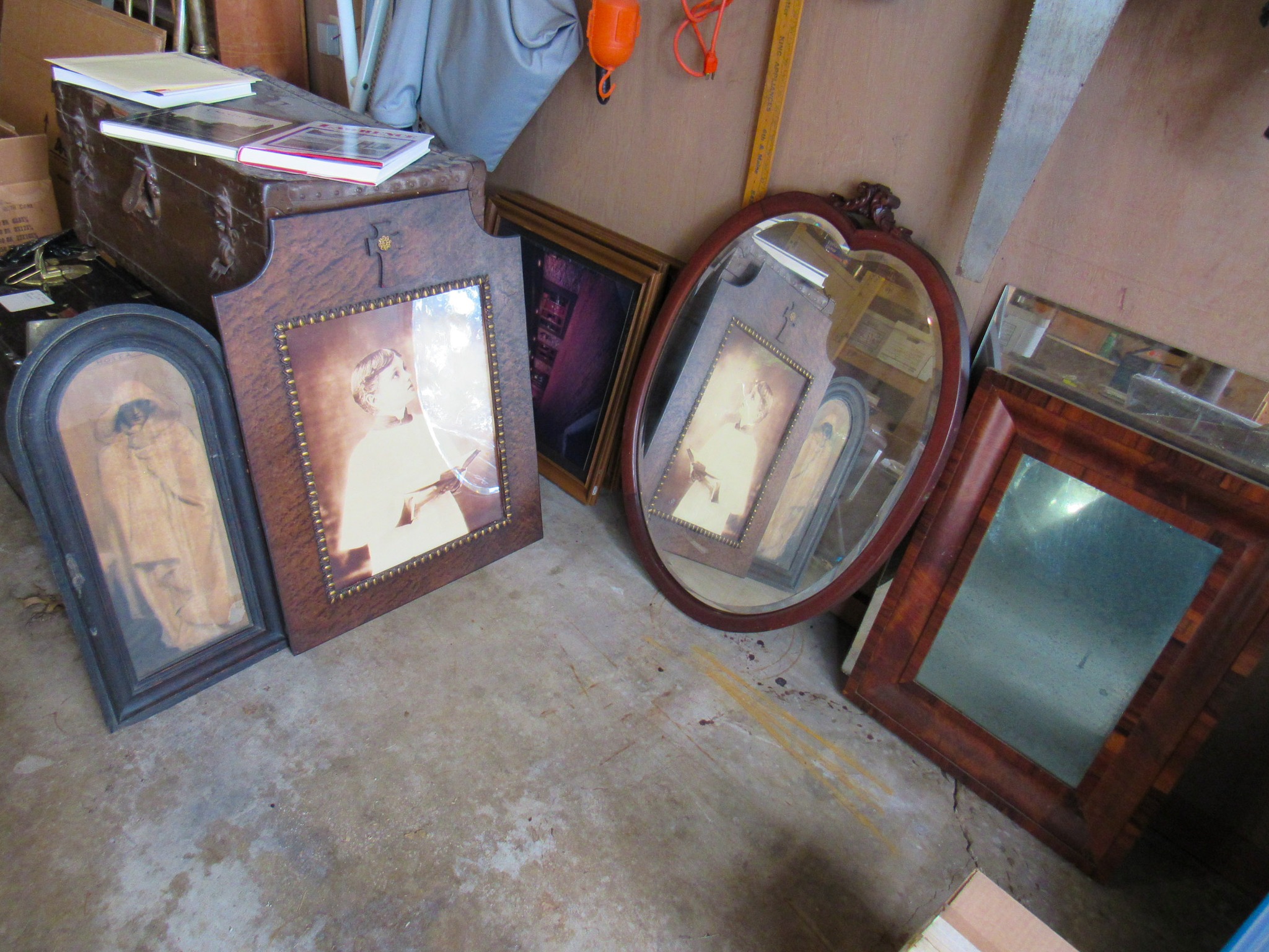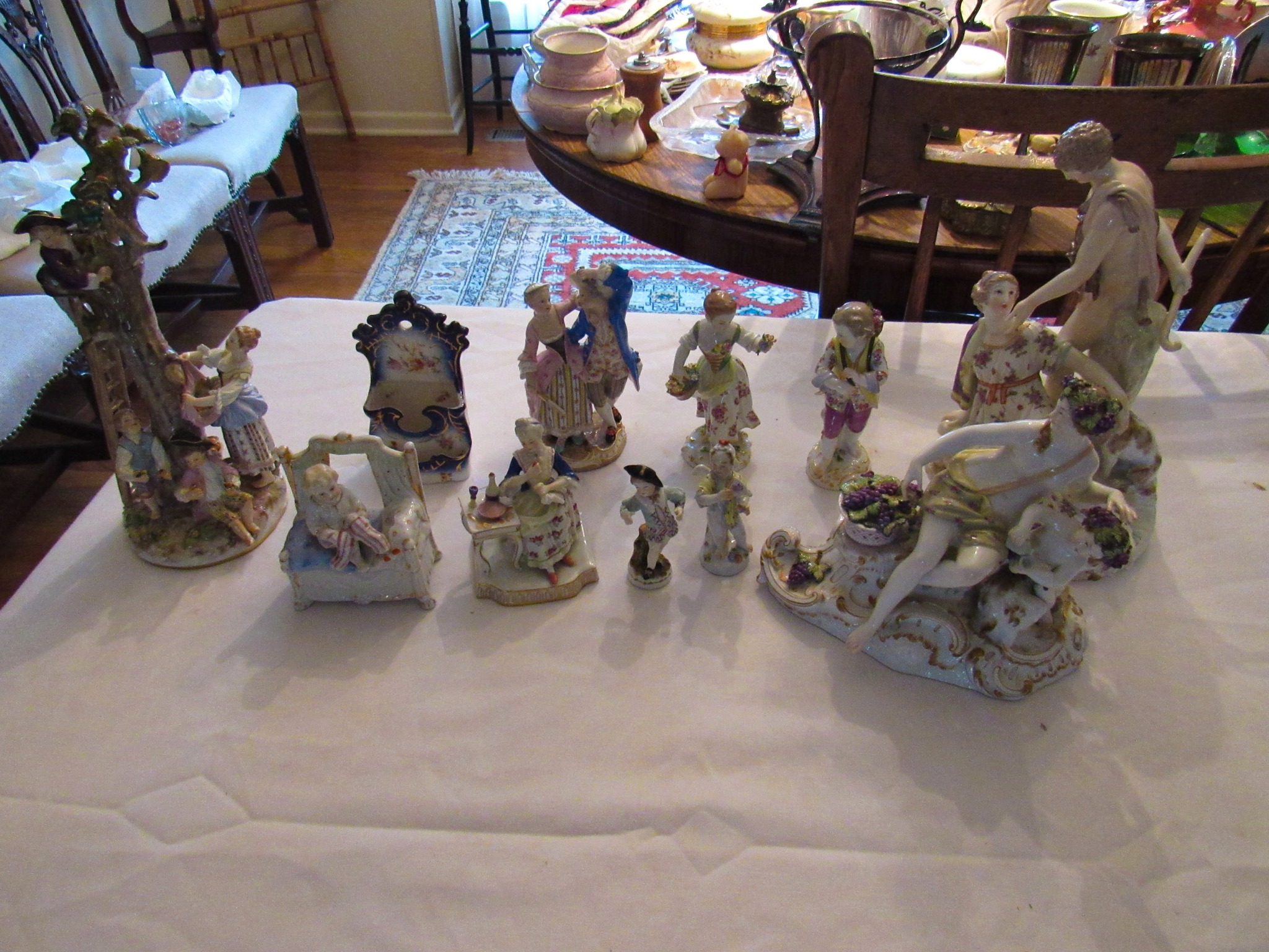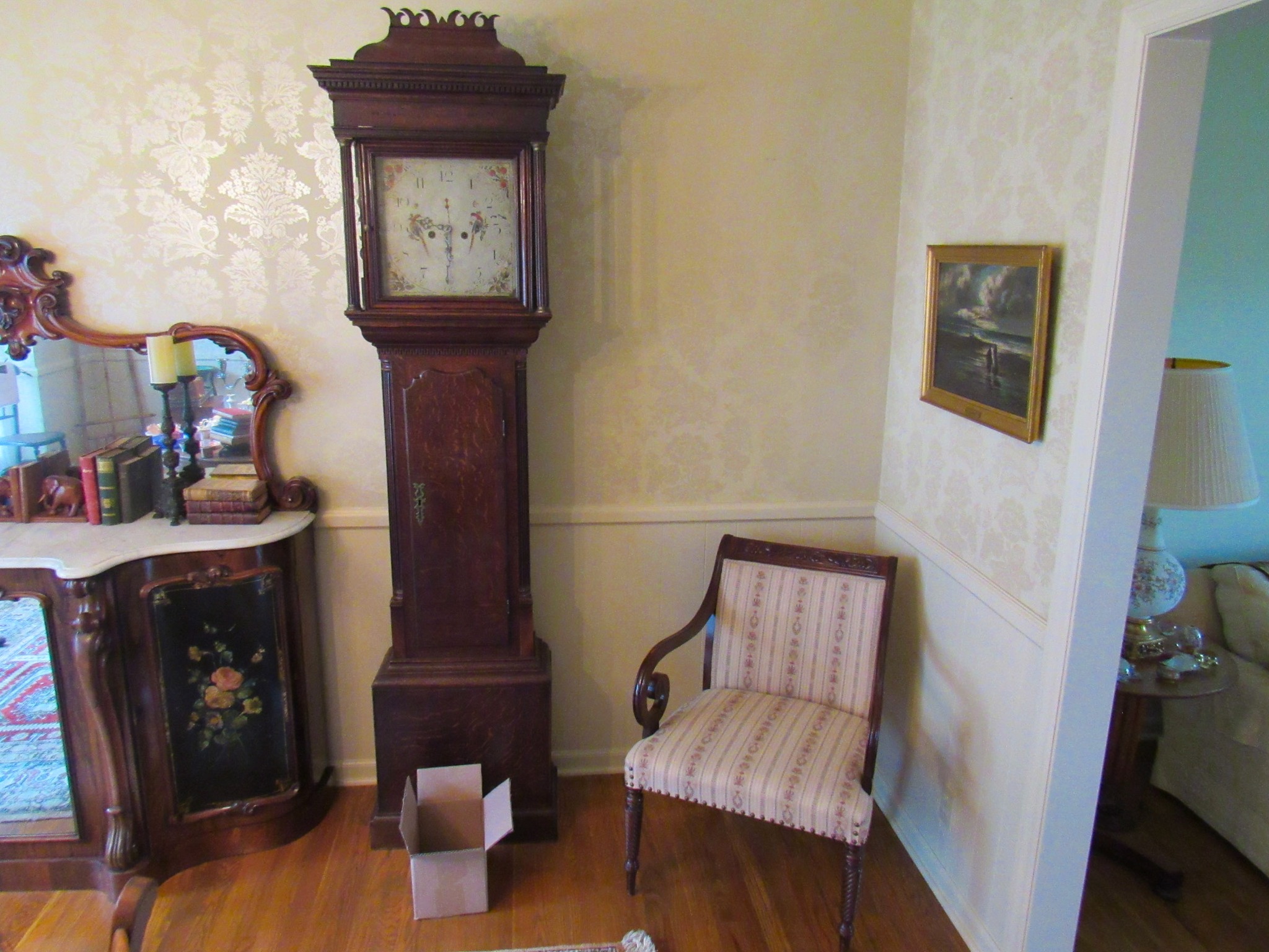 Victorian Matching Orante China Curio Cabinets; Victorian Marble Top Sideboard Buffet Cabinet; Solid Brass Bed; Unusual Victorian Style Corner Cabinet; Wedgewood Coffee Table; Victorian Marble Top Dresser & Mirror; Full Length Dressing Mirror; Entry Chair; Marble In-Laid End Table; Matching Needle Point Chairs; Sewing Rockers; Make-Up Table; Cane Rocker; Smoking Table; Walnut Bed; 2 Cedar Chests; 7 ft. Vintage German Grandfather Clock; Ingraham Wall Clock; Atkins Regulator Clock; Seth Thomas & German Mantle Clocks; Iranian Wool Area Rug; Area Rugs; Oriental Wall Tapestry; Vintage Lamps & Shades; 1883 Cornelia Schouten Canvas Frame Art Picture; O Franta Framed Art Picture; Pastry Eaters Bartolome Murillo framed picture; Vintage Framed Pictures; Wrought Iron Patio Set Table / Chairs / Loveseat / Tea Cart / Lounger / Side Tables; Stained Glass