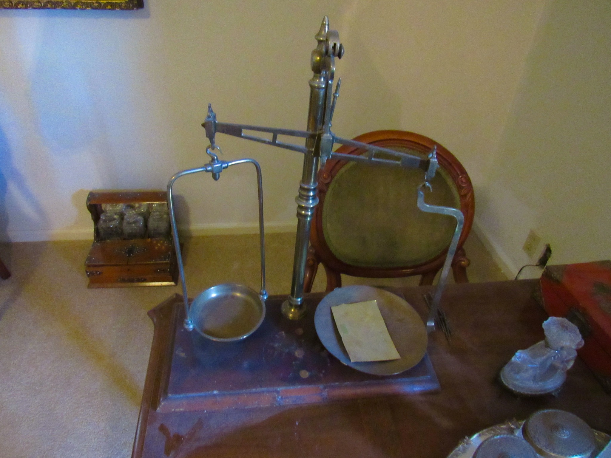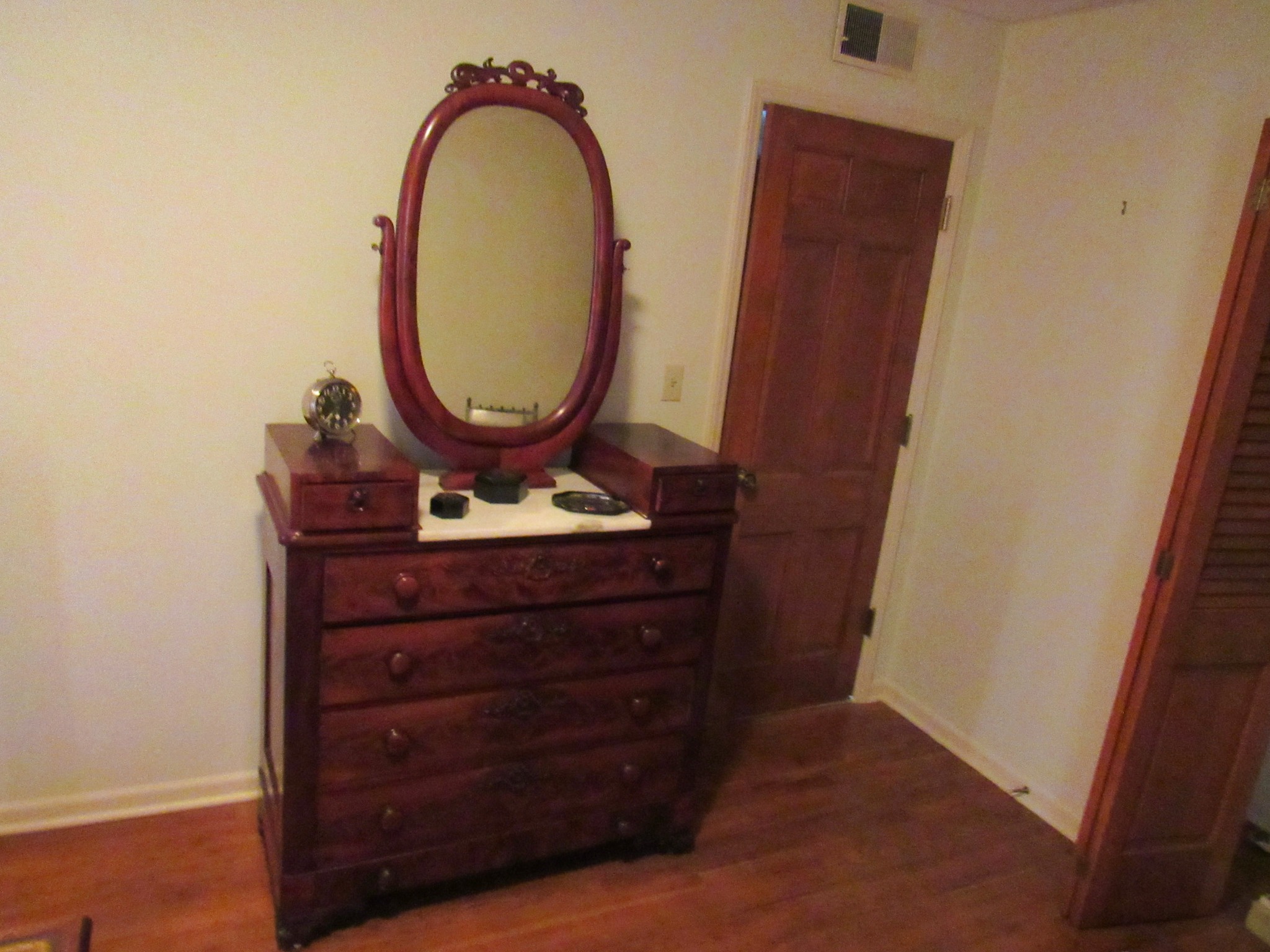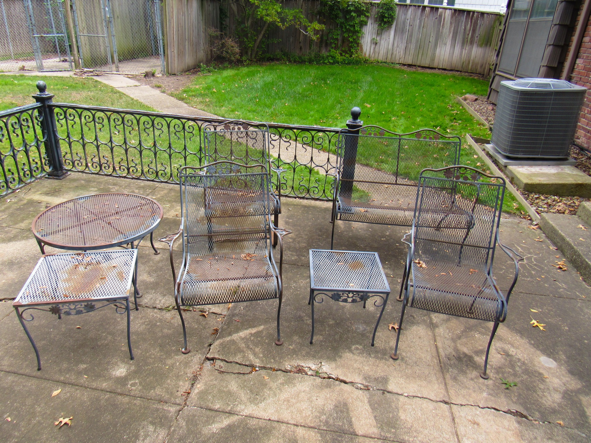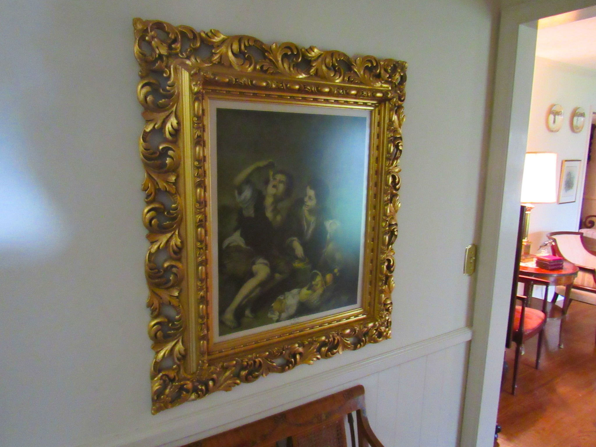 Victorian Matching Orante China Curio Cabinets; Victorian Marble Top Sideboard Buffet Cabinet; Solid Brass Bed; Unusual Victorian Style Corner Cabinet; Wedgewood Coffee Table; Victorian Marble Top Dresser & Mirror; Full Length Dressing Mirror; Entry Chair; Marble In-Laid End Table; Matching Needle Point Chairs; Sewing Rockers; Make-Up Table; Cane Rocker; Smoking Table; Walnut Bed; 2 Cedar Chests; 7 ft. Vintage German Grandfather Clock; Ingraham Wall Clock; Atkins Regulator Clock; Seth Thomas & German Mantle Clocks; Iranian Wool Area Rug; Area Rugs; Oriental Wall Tapestry; Vintage Lamps & Shades; 1883 Cornelia Schouten Canvas Frame Art Picture; O Franta Framed Art Picture; Pastry Eaters Bartolome Murillo framed picture; Vintage Framed Pictures; Wrought Iron Patio Set Table / Chairs / Loveseat / Tea Cart / Lounger / Side Tables; Stained Glass