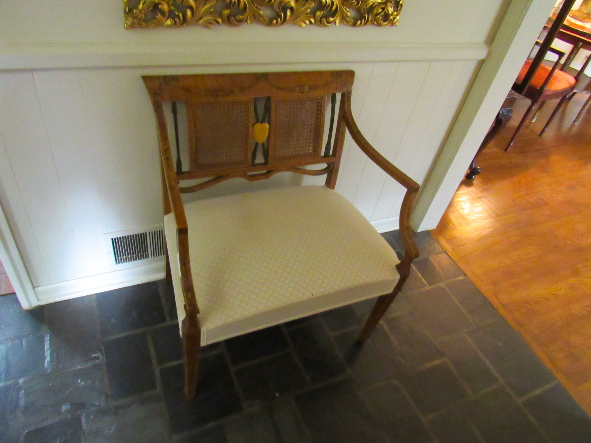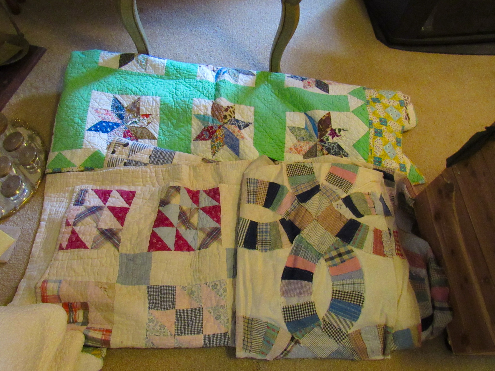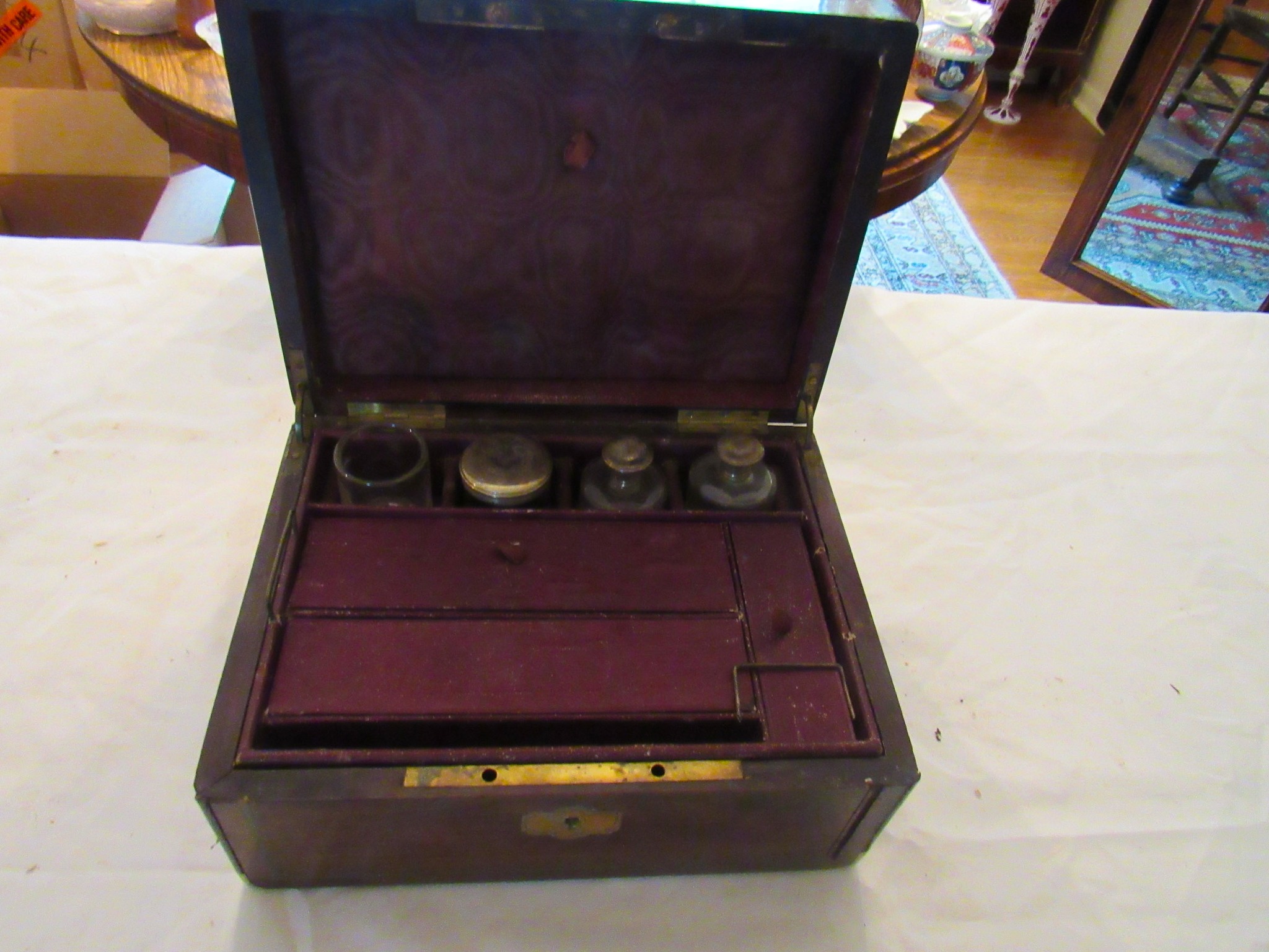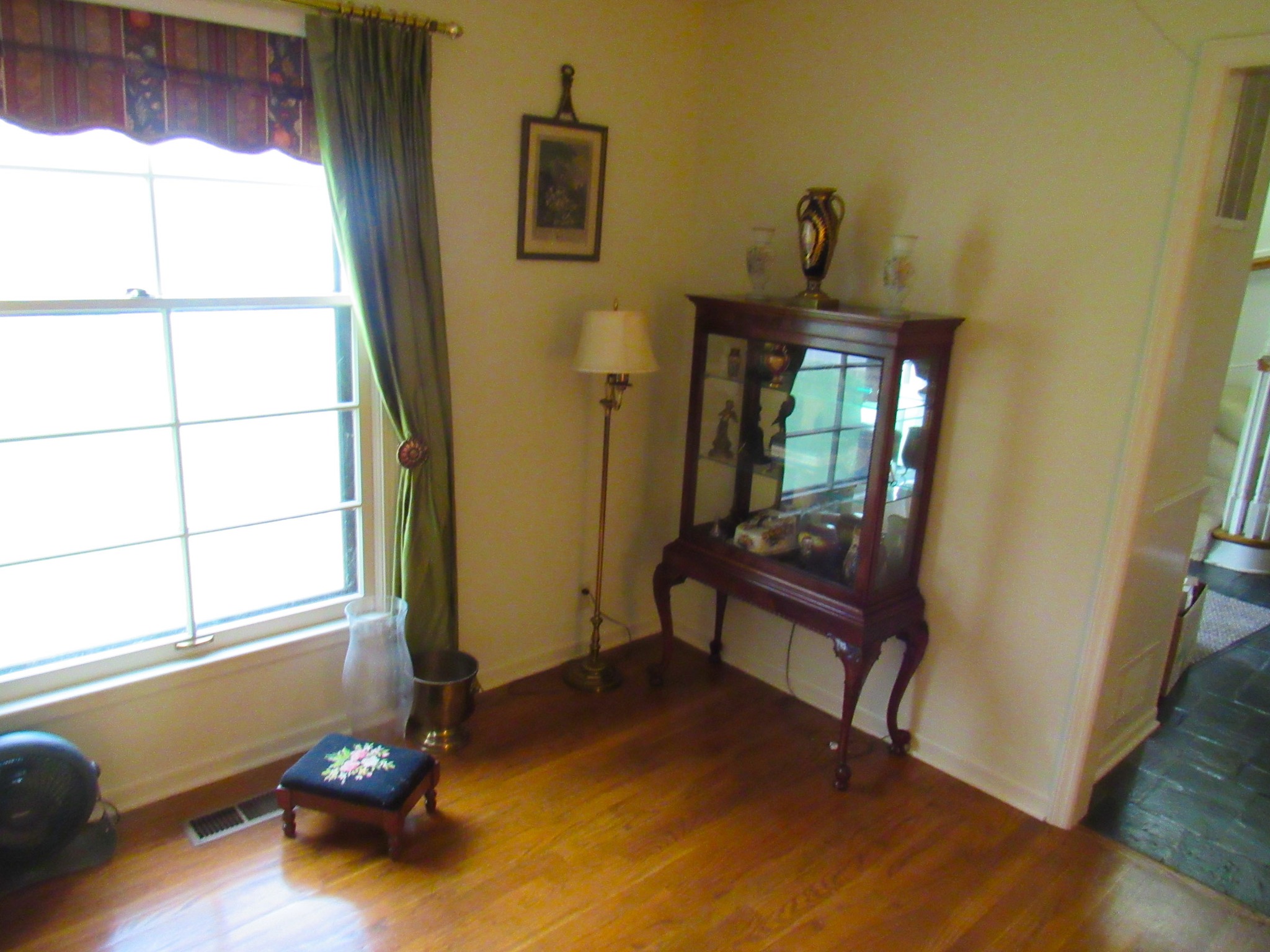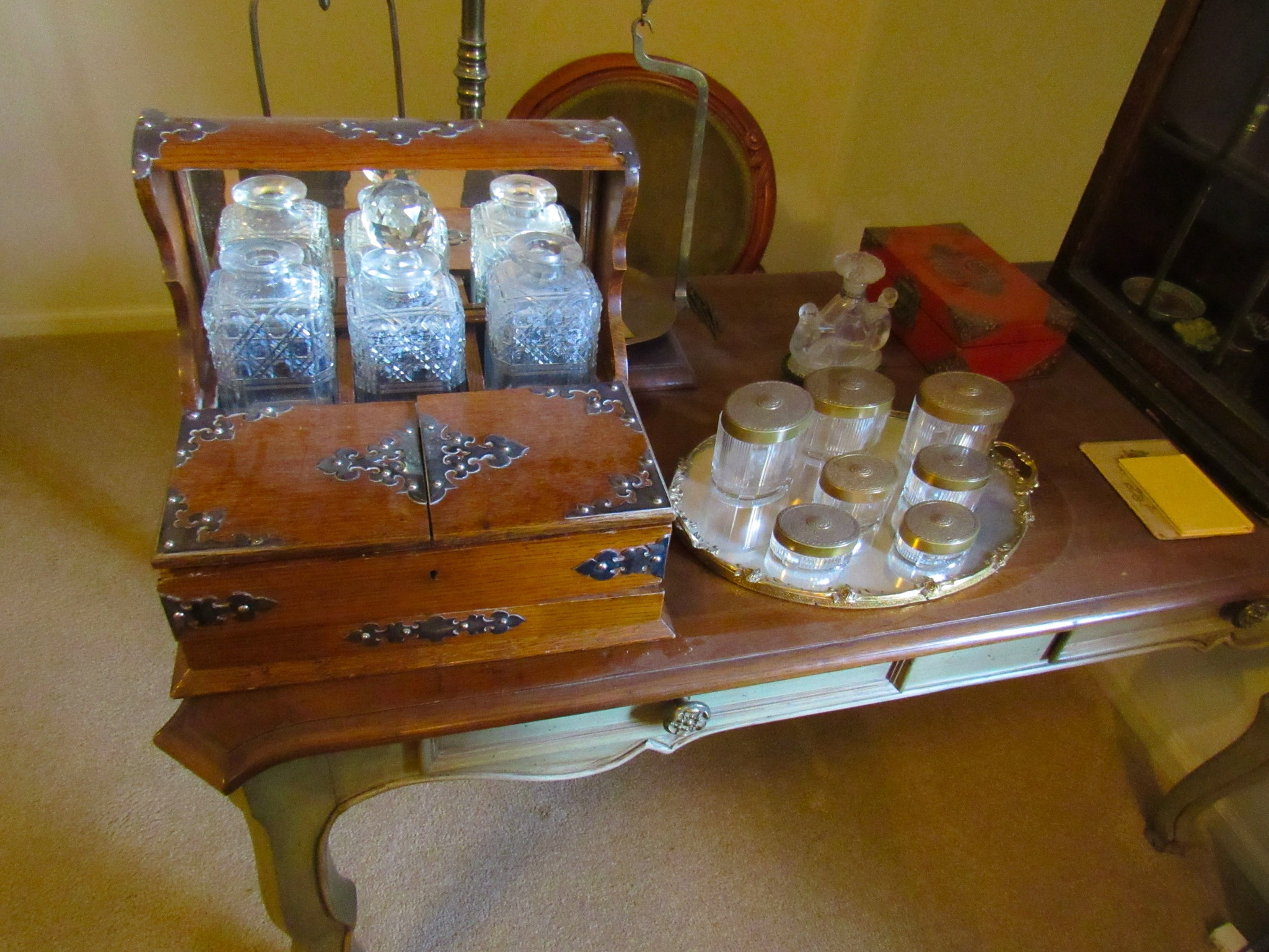 Victorian Matching Orante China Curio Cabinets; Victorian Marble Top Sideboard Buffet Cabinet; Solid Brass Bed; Unusual Victorian Style Corner Cabinet; Wedgewood Coffee Table; Victorian Marble Top Dresser & Mirror; Full Length Dressing Mirror; Entry Chair; Marble In-Laid End Table; Matching Needle Point Chairs; Sewing Rockers; Make-Up Table; Cane Rocker; Smoking Table; Walnut Bed; 2 Cedar Chests; 7 ft. Vintage German Grandfather Clock; Ingraham Wall Clock; Atkins Regulator Clock; Seth Thomas & German Mantle Clocks; Iranian Wool Area Rug; Area Rugs; Oriental Wall Tapestry; Vintage Lamps & Shades; 1883 Cornelia Schouten Canvas Frame Art Picture; O Franta Framed Art Picture; Pastry Eaters Bartolome Murillo framed picture; Vintage Framed Pictures; Wrought Iron Patio Set Table / Chairs / Loveseat / Tea Cart / Lounger / Side Tables; Stained Glass