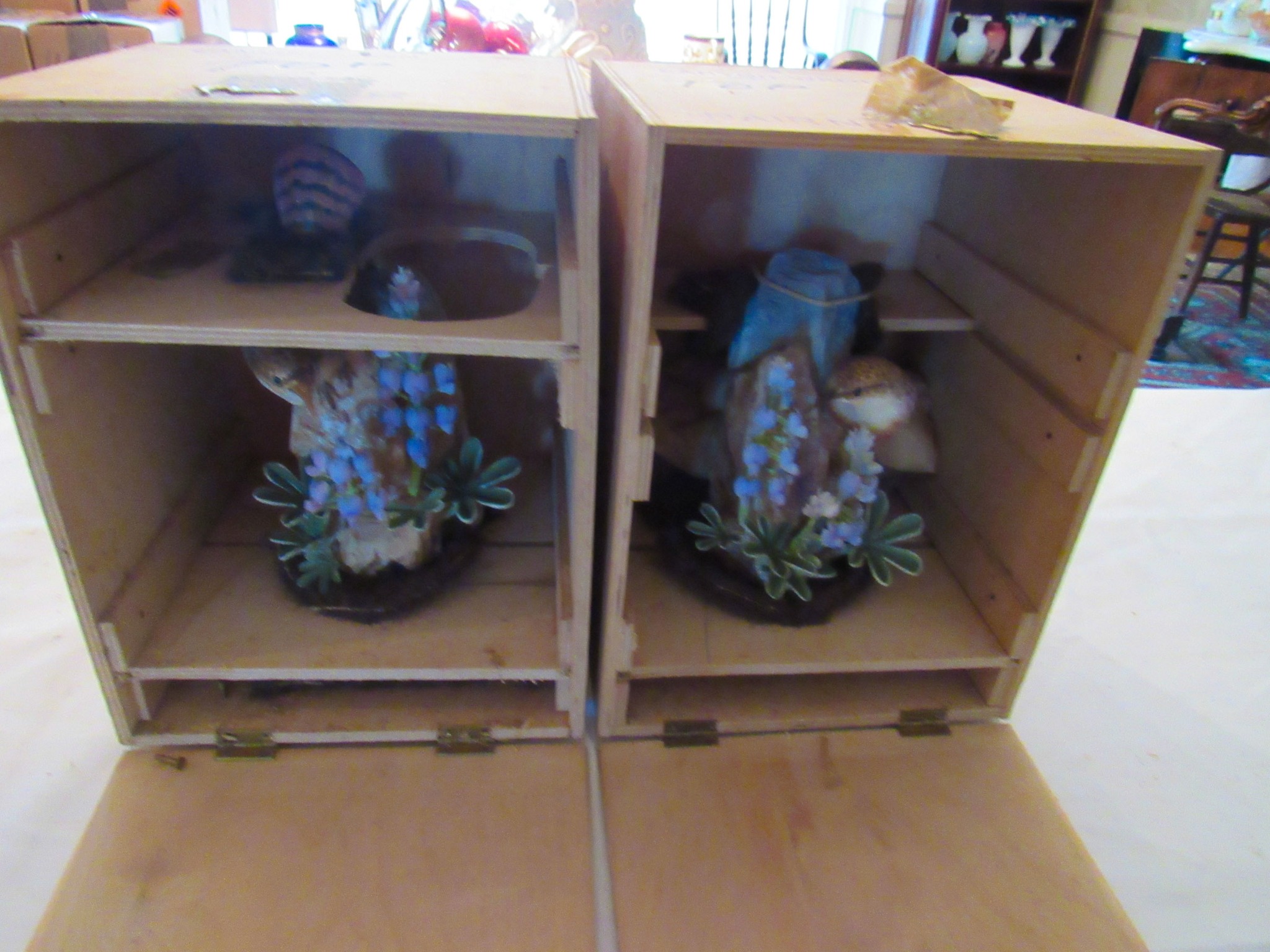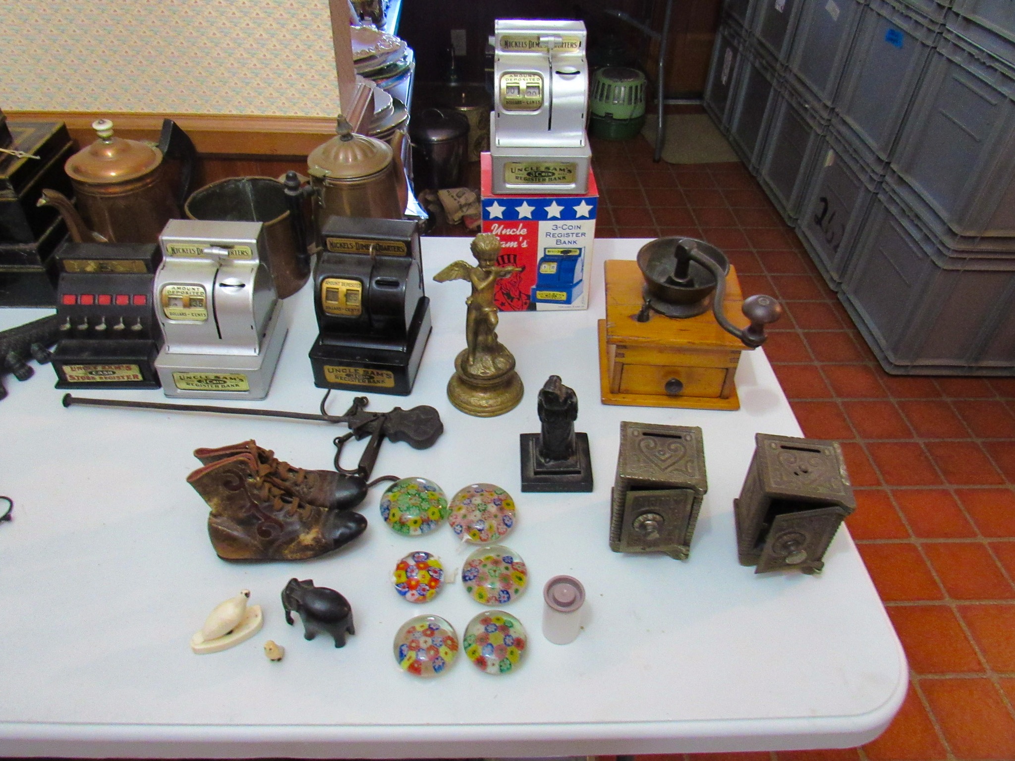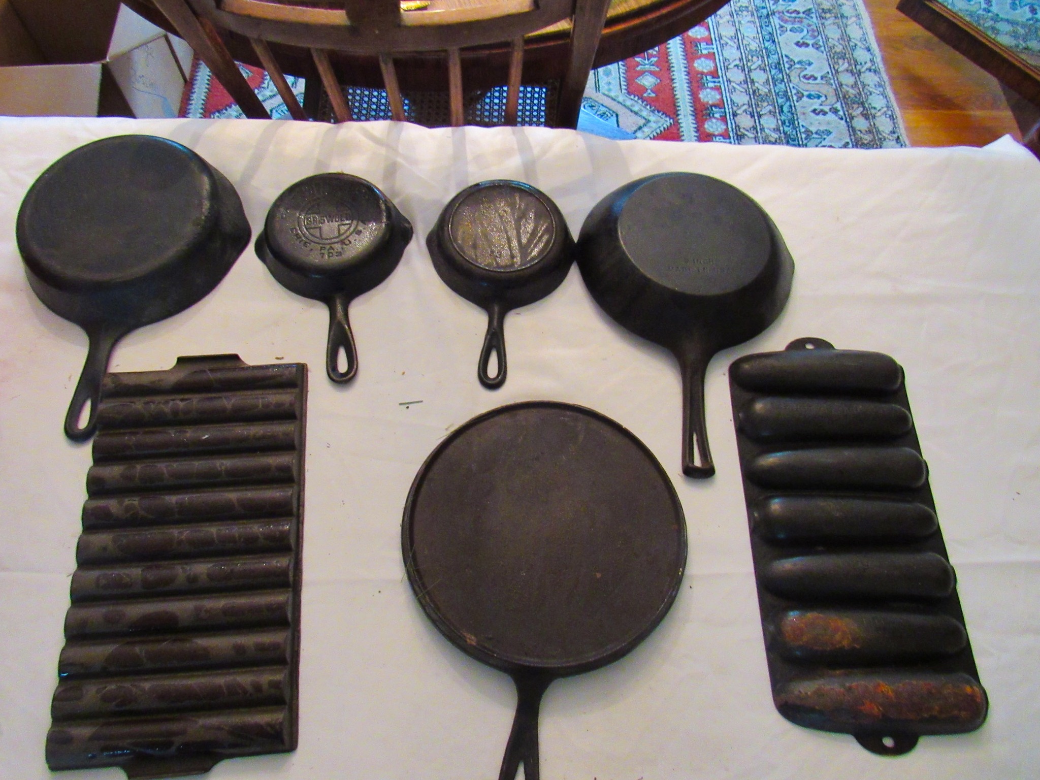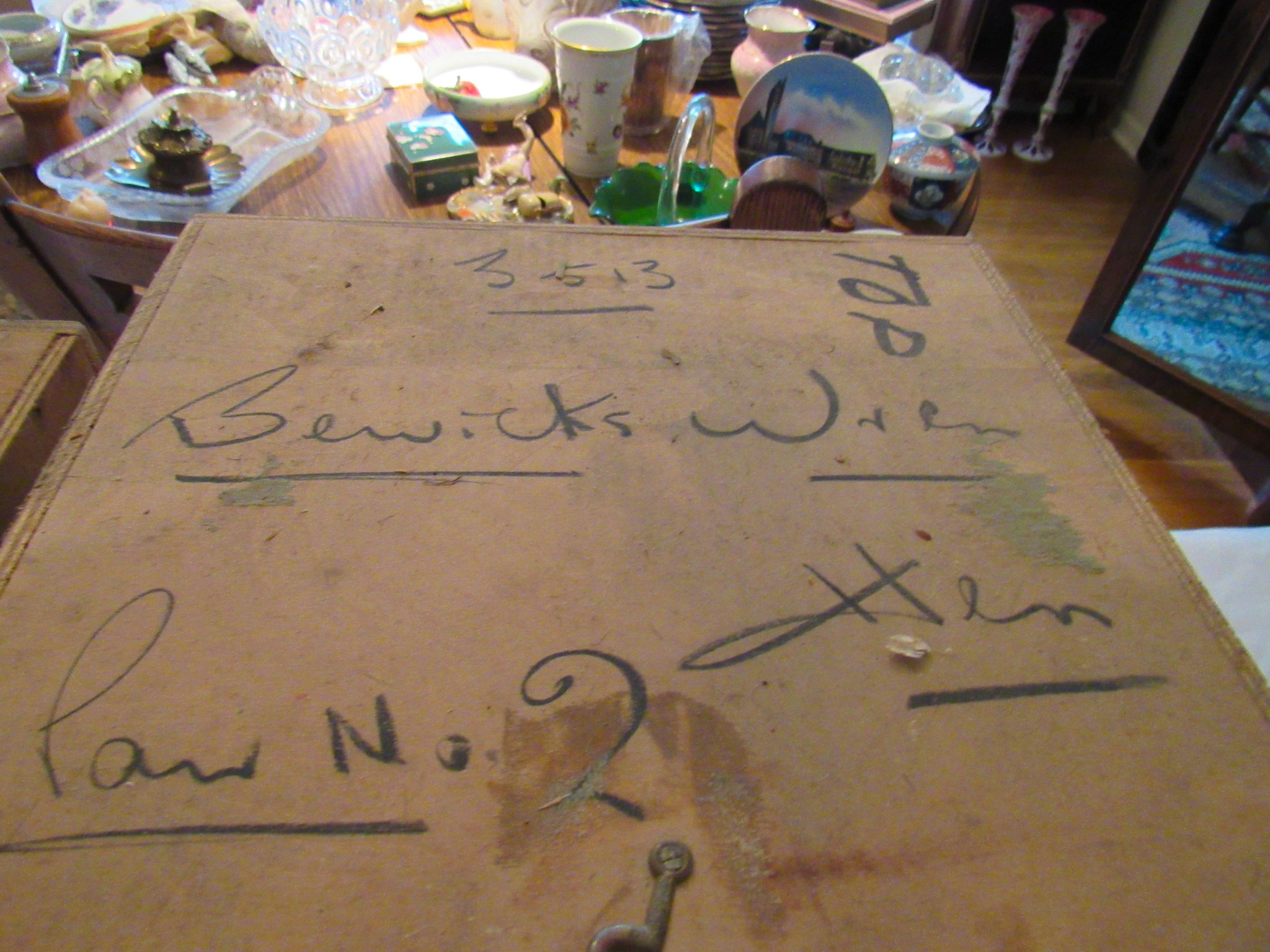 2 Vintage 12 in. Brass Cannons w/ Cast-Iron Carts; Structo Artcraft Metal Desk Top Loom; Dresser Set; Oak Dresser Box Liquor Set; Rayo Oil Lamp; 1920’s 3 ½ in. Salesman Sample D&M Draper & Maynard Lucky Dog Logo Leather Ball Glove; 1920’s Miniature Leather Boxing Gloves; “Safety” Amber Qt. Jar; 1930’s Sinclair Oil Building Paperweight Desk Plaque; Sinclair “Power X” Tin Gas Pump Bank; 2 in. Diameter German Swirl Vintage Marbles; Swirl Vintage Marbles; Marble Vintage Bags; The Flambeau Room Plaza Club Law. KS. Zippo Lighters; Zippo Inlaid Lighter; Firebird Oil Lighters; Paperweights; Uncle Sam Cash Registar Coin Banks; Army / State Safe Cast-Iron Banks; Brass Jelly Kettle Buckets; Coffee Mill; Indian Chief Desk Weight; The Pioneer Women Cast-Iron Statue; Cast-Iron Postal Scales & Others; Cast-Iron Letter Stamp; Griswold #2 Large Logo 703 Erie Pa. Cast-Iron Skillet(Rare!); Cast-Iron Skillets / Krusty Korn Muffin Pan & Griddle; Cast-Iron Pots w/ handles; Wellsville KS Bank Bag; tin types; branding irons; Tobacco Scales; Dietz #0 Tubular Lantern; carbine lanterns; Mini Brass Bugles; Tyco Train; Whiskey Crocks; Butter Crock; Pottery; Wooden Duck Decoys (1979 The Sporting Life & Stoney Point”); Hudson Bay Wool Blanket w/ Box; Pendleton Blanket; Hand Made Quilts; Sewing Buttons; Elephant Bookends; Shriners Abdallah Fez Hat; Simpich Christmas Caroler Character Dolls; 20 + Vintage Dorothy Doughty Royal Worcester Birds w/ Original Wooden Shipping Boxes: Humming Bird Cock 3549 Hen 3548, Wren Cock 3512 Hen 3513, Yellowheaded Blackbird Cock 3464 Hen 3465, Elf Owl & Saguaro 3617, Hooded Warbler Hen 3591, Mountain Bluebird Cock 3665 Hen 3666, Audubon Warbler Cock 3669 Hen 3670, Myrtle Warbler Cock 3503 Hen 3504, Vermillion Fly Catcher Cock 3657 Hen 3658, Bluebird Cock 3135 Hen 3136, Canyon Wrens Cock 3639 Hen 3640, Orange Blossom Set (No Boxes); 24 place Setting Spode Rosebud Chintz set w/ Serving Pieces!; Royal Crown Derby Tea Set; Wedgewood “Wildbriar” England Place Setting; Fenton Brides Basket w/ Metal Stand; Fenton Vases & Baskets; 100’s of Pieces of Glassware: Germany / Austria / Bavaria / Belleek / Carnival / France / Royal Doulton / Depression / Waterford / & Much More!; Large Assortment Silver Plated Platters / Bowls / Utensils / Etc.!; Miniature Sets; Ink Well Set w/ Wooden Box; Head Busts & Statues; glass ornament balls; 1903 Hamlet Book & Vintage Books; Life Leather Western Book Set; Native Am. & Firearms Books