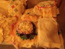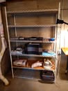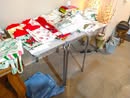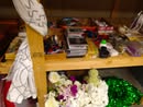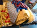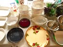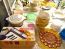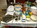 HOUSEHOLD: LARGE OFFERING COSTUME JEWELRY – BATH TOWELS – HAND TOWELS – WASH CLOTHS – LARGE SET ONEIDA STAINLESS FLATWARE – TEA KETTLE – TOOTH PICK HOLDER – AREA RUGS – COOK BOOKS – THROW PILLOWS – LINEN PLACE MATS – LINEN APRONS – KITCHEN TOWELS – SET 6 STAINLESS PANS w/ LIDS – BAKING PANS – COOKIE SHEETS – LARGE & SMALL STAINLESS COLLANDERS – PATTERN GLASS BOWL w/ FLOWERS – FIRE KING CASSEROLE w/ LID – CORNING CASSEROLE BOWLS w/ LIDS – PYREX WARE – JUICE JAR – LONGABERGER PIE PLATES – CROCK BOWL – HALLS J. TEA PIE PLATE – CORNING SAUCE PANS – EGG PLATES – PYREX BOWL w/ LID – 6 SHELF DECORATOR STORAGE SHELF UNITS – CROCHET BOOKS – WORK BASKET BOOKS – SEWING BOOKS – CORELLE DISHES – APPLE, BEAR & PENGUIN S&P SETS – GLASS COASTERS – 5 PIECE DRESSER SET – CROCK POT – ART DECO TRAYS – SEWING & CRAFT ITEMS – NEW YARN – CROCHET THREAD – GEL CUSHIONS – PYREX MEASURE PITCHER – B&D IRON – SPOOLS THREAD – EMBROIDERY THREAD, PATTERNS & HOOKS – TUPPERWARE – CALPHON SKILLET w/ LID – SEWING BASKETS – LAMP SHADES – LARGE OFFERING NEW 33 IN X 38 IN FLOUR SACK TOWELS – THROW PILLOWS & QUILT SET – ROWENTA GARMENT STEAMER – PORCELAIN FUNNEL – SEVERAL JARS ASST BUTTONS – IRONING BOARD – LADIES DRESS GLOVES –