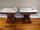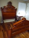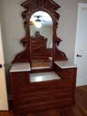 SUPERIOR QUALITY FURNITURE: FRENCH PROVINCIAL DINING TABLE w/ SPLIT PEDESTAL & PAW BASE, 4 LEAVES, w/ 4 ORNATE CHAIRS – 6 ORNATE BASE, MARBLE TOP LAMP TABLES – SEVERAL JESUS PICTURES w/ FRAMES – 1 LARGE ART DECO CARVED WOOD BOOKCASES w/ GLASS DOORS & LOWER DRAWERS – 2 BOOKCASE w/ ARCHED GLASS DOORS & LOWER DRAWERS – ORNATE FRENCH PROVINCIAL BED w/ HIGH ARCHED HEAD – NICE WALNUT MARBLE TOP WASH STAND – WOOD QUILT RACKS – ORNATE FRENCH PROVINCIAL MARBLE TOP DRESSER w/ LAMP STANDS – ORNATE OAK VICTORIAN BED w/ FANCY HIGH HEADBOARD w/ BX SPGS & MATT – ORNATE OAK VICTORIAN VANITY DRESSER, LAMP STANDS & ACORN PULLS – COVERED TOP STEP STOOL – EAST LAKE PAD SEAT BALLOON BACK SIDE CHAIR – EASTLAKE GENTLEMANS PARLOR ARM CHAIR – OAK SIDE CHAIR – FANCY LIBRARY TABLE w/ DRAWER – CLEAN LANE CEDAR CHEST w/ TRAY – WILCOX & GIBBS IRON TREADLE BASE w/ GLASS TOP – IRON DOMESTIC TREDDLE BASE w/ METAL TOP – 4 DRESSER TOP CHESTS – COSCO STEP STOOL – METAL BASE UTILITY TABLE ON ROLLERS - BARN PAINTING w/ FANCY OAK FRAME – NICE 30X60 OAK ROLL TOP DESK – 3 DRAWER SEWING CABINET – CANE WEAVE LAUNDRY BASKET – FANCY SET METAL PATIO CHAIRS – DROP LEAF STAINLESS BASE PORCELAIN TOP TABLE