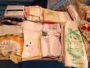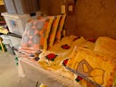 COLLECTIBLES: ROSEVILLE 8 IN COOKIE JAR – ROSEVILLE # 358, 12” BASKET – ROSEVILLE POTTERY WALL POCKET – HALLMARK LITTLE GALLERY PEWTER FIGURES – GLASS MARBLES – OLD POCKET KNIVES – SWISS ARMY WRIST WATCH – IRON # 418 CAMEL BOOKENDS – SETS SAILING SHIP IRON BOOKENDS – METAL MERCURY ROCKET BANKS – METAL WORLD GLOBE COIN BANK – METAL SAFERON, MASS ENGL. IRON – S&P TOASTER SET – CHEF S&P SET – FLAT IRON – SAD IRONS w/ HANDLES – HUMMEL 36 / 0 HOY CHILD FONT – HUMMEL 1959 GUARDIAN PRAYING ANGEL – HUMMEL #446 ANGEL DUET – HUMMEL #142 PRAYING ANGEL – HUMMEL #207 HEAVENLY ANGEL – HUMMEL 22 / 0 ANGEL CHILD, ALL ABOVE ARE FOUTS – MCCOY 8 IN CROCK BOWL – MEAKIN IRONSTONE CREAMER – LARGE IRON SHIP DOOR STOP – 2 QUILTS w/ FLOWERS – BUTTERFLY QUILT – PATCH WORK QUILT – SQUARES & STARS QUILT – SUN BONNET BABIES QUILT – LARGE SILK THROW – QUILT TOP – SHAWNEE SAILOR BOY & BO PEEP S&P – HULL LITTLE RED RIDING HOOD S&P – SHAWNEE PUSS’N’BOOTS CREAMER – SHAWNEE ELEPHANT CREAM PITCHER – ELEPHANT SPRINKLER – CHINESE LAUNDRY MAN SPRINKLER – 7 ½ IN ART DECO URBOCH BLOWN FRUIT PITCHER & 3 TUMBLERS – GRANITE CHAMBER POT w/ BALE – IRON FLOWER DOOR STOPS – IRON PARROT DOOR STOP – ADV THERMOMETER w/ PICTURES – LONGABERGER 1994 JINGLE BELL BASKET – LONGABERGER 1994 BASKET – ICE TONGS – GALVANIZED SPRINKLERS – FANCY DOLL CARRIAGE – GLASS BASKET w/ ART FLOWERS – HALLS 3 PC BOWL SET – PINK DEPRESSION SAUCERS – SHAWNEE MILK CAN S&P – MCCOY COOKIE TUB – FIESTA PLATTER, BOWL, MIXING BOWLS – HALLS BALL PITCHER – HALLS BOWLS – HALLS COVERED CASSEROLE – POTTERY CHAMBER POT – BURMA SHAVE JAR w/ LID – SHAWNEE CREAM PITCHER & S&P – LEVENGER REPLOGGE ART DECO 1930’S, 1990 WORLD GLOBE – FANCY HANDMADE AFGHANS – LARGE HAND SEWN, LACE BED SPREADS – SUN BONNET BABY LAP QUILT – MANY FANCY LACE DOILIES – LARGE OFFERING HAND SEWN LINENS – ADV YARD STICKS – SET DAYS OF THE WEEK TOWELS, HAND EMBROIDERY – LINEN TABLE CLOTHS – CISTERN PUMP –