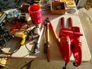 HAND & POWER TOOLS: SET FOLDING SAW HORSES – OUTSIDE CALIPERS – EXT CORD ON ROLLER – SCOTTS PUSH SPREADER – SCOTTS HAND SPREADER – DREMEL MOTO,LATHE # 700 – ½ IN SOCKET SET 3 / 8 TO 1 1 / 8, EXT & TOTE – NAIL BARS – JAMESON 1 / 8 IN X 100 FT FIBERGLASS FISH TAPE – STREAM LINE FISH TAPE – CLEAN PORTER CABLE AIR COMP, 150 PSI & HOSE – 2 WHEEL DOLLY – DREMEL 3000 TOOL SET – DREMEL 370-5 TOOL SET – ANGLE DRILL – SEARS 4 ½ IN ANGLE GRINDER – SKIL # 593 BELT SANDER – RYOBI ½ IN HAMMER DRILL – MAKITA ½ IN DRILL – RIGID 3 / 8 IN DRILL – DEWALT 4 ½ IN ANGLE GRINDER – CLEAN STIHL SH86C GAS BLOWER,VAC – 2 EA HVY DUTY 5 TIER METAL SHELVES – NEW MOLE TRAP – SCHUMACHER 10 AMP BATTERY CHARGER – JUMPER CABLES – CRAFTSMAN 16 GAL SHOP VAC – WORK MATE TABLES – RUBBER MAID TOOL BOX & STEP STOOL – HVY DUTY METAL SHELVING w/ 10 SHELVES, 9 FT WIDE – 4 DOLLY WHEELS – ORGANIZERS w/ CONTENTS – ASST SIZE & LENGTH PISTOL GRIP CLAMPS – GRAFTSMAN 6 IN, ½ HP BENCH GRINDER – TOOL POUCHES – 16 FT ALUM EXT LADDER – SLIDING TELEPHONE LADDERS – PRESSURE SPAYERS – STIHL BG56C GAS BLOWER – ASST SIZE C CLAMPS – SCREWDRIVERS – ASST PLIERS – CLAW, BALL, TACK & SHOP HAMMERS – SKIL ½ IN HAMMER DRILL – PLUMB BOB – NEW 7 ¼ IN CUT OFF & RIP BLADES & HOLDER – BOX END WRENCHES – SEARS RIVETER & RIVETS – MANY HI SPEED DRILL BITS – STANLEY PRESS DRILL – B&D LEVELS – HATCHET – BAR CLAMPS, ASST SIZES – PIPE WRENCH – STANLEY PLANE – JAMESON FIBER GLASS PRUNER & POLES – SWIVEL TOOL HOLDER – LONG SHANK DRILL BITS – 8 PC HI SP BIT SET ½ TO 15 / 16 – NEW XACTO KNIFE SET – SHOP BUILT WORK BENCH – SM CLAMP ON VISE – 10 IN COMPOUND MITRE SAW w/ LASER – CRAFTSMAN 3 IN BENCH VISE – CENTRAL FORGE 8 IN ANVIL – WOOD SPANNER BITS – MITRE SAW – STANLEY HAND SAW – CRAFTSMAN ROLL AWAY 5 DRAWER BALL BEARING BASE TOOL CABINET w/ 5 DRAWER BALL BEARING TOP CABINET w/ KEYS – 4 TIER HVY DUTY METAL SHELF – DEWALT 7 ¼ IN CIRCULAR SAW – SKIL 6 ½ IN CIRC. SAW – DEWALT ORBITAL JIG SAW – B & D 3 / 8 & ½ IN DRILLS – PRUNERS – HOMELITE ELECT 17 IN HEDGE TRIMMERS – ELECT SOLDER IRON – CEN TECH MULTI METER – ASST FILES – ASST 3 / 8 & ½ IN SOCKETS & EXT – 3 / 8 IN DRIVE DEEP SOCKETS – 4 MM TO 12 MM ¼ IN DRIVE SOCKETS – 3 / 16 TO 7 / 16, ¼ IN DRIVE SOCKETS – 9MM TO 5 MM COMB WRENCHES – NEW DEWALT 10 IN 40 TOOTH CARBIDE MITRE SAW BLADE – STAPLE GUNS & BOXES STAPLES – NICE CRAFTSMAN 7MM TO 18 MM COMBO WRENCH SET – THORSEN 3 / 8 IN DR SOCKET SET 3 / 8 TO 7 / 8 w/ RATCHET & EXT – 10 & 12 IN ADJ WRENCHES – MR RATCHET SET – ALLEN WRENCHES – WOOD CHISELS – HOE – 5 TINE FORK – 4 TINE CULT – LONG HANDLE SHOVELS – SPADE – RAKE – SHORT HANDLE SHOVELS – AXE – SNOW SHOVELS – JAMESON TREE SAW PRUNER – DIRT TAMPER – WRECKING BARS – POST HOLE JOBBERS - & MORE