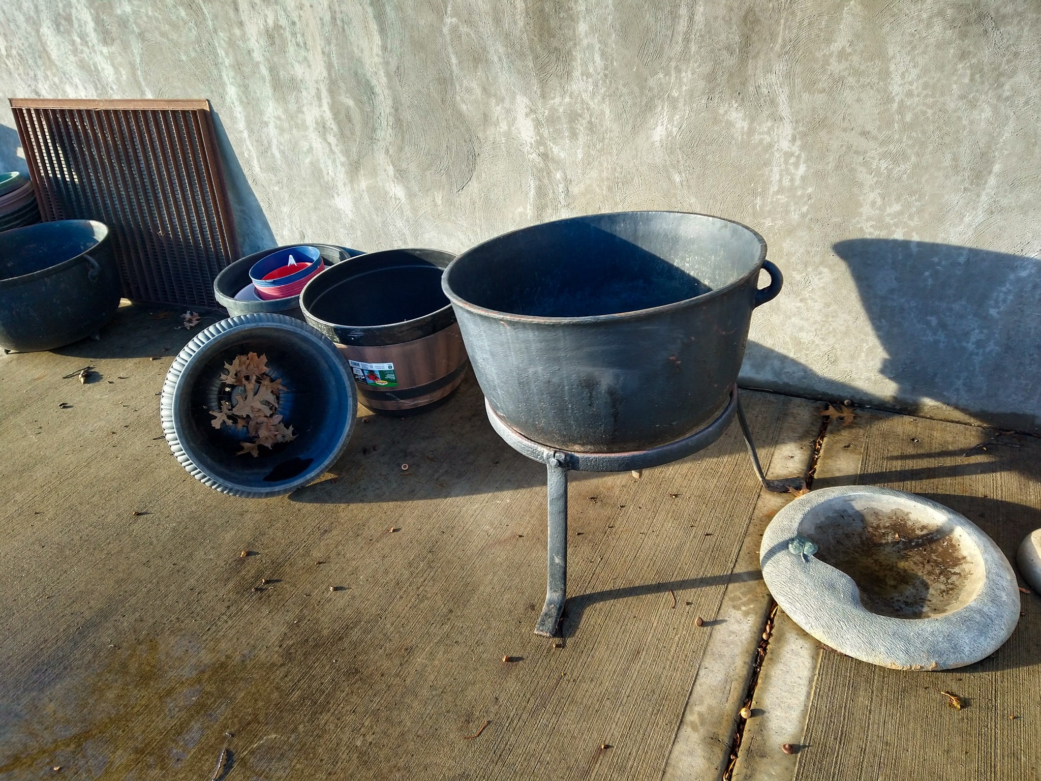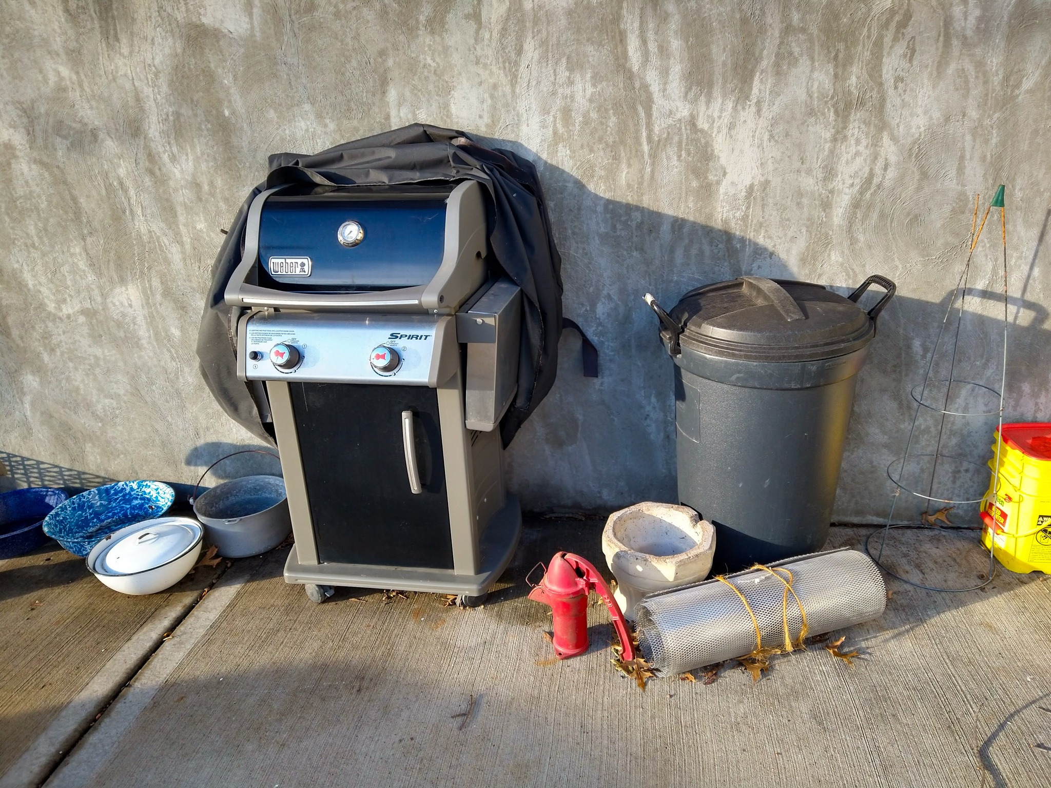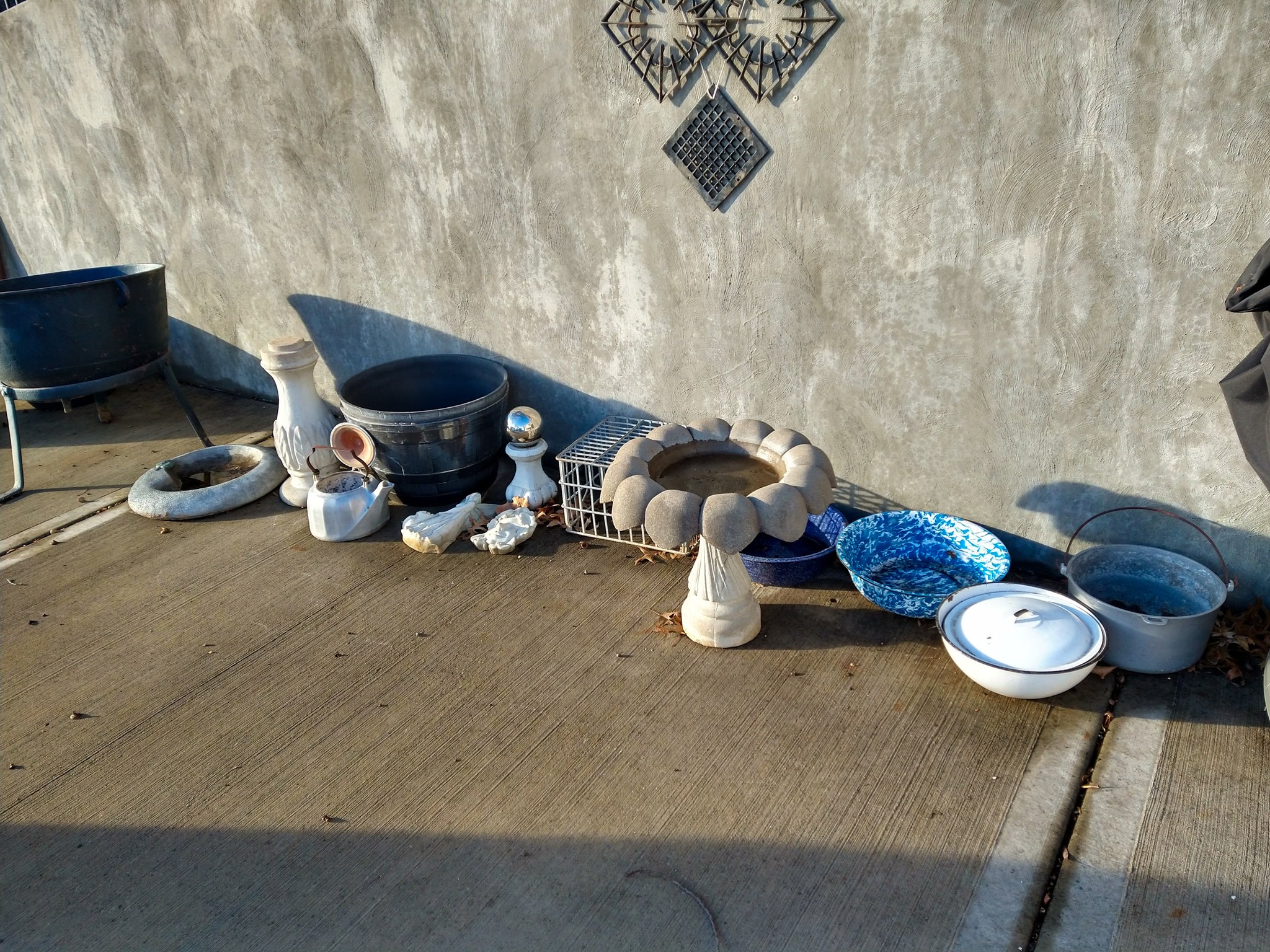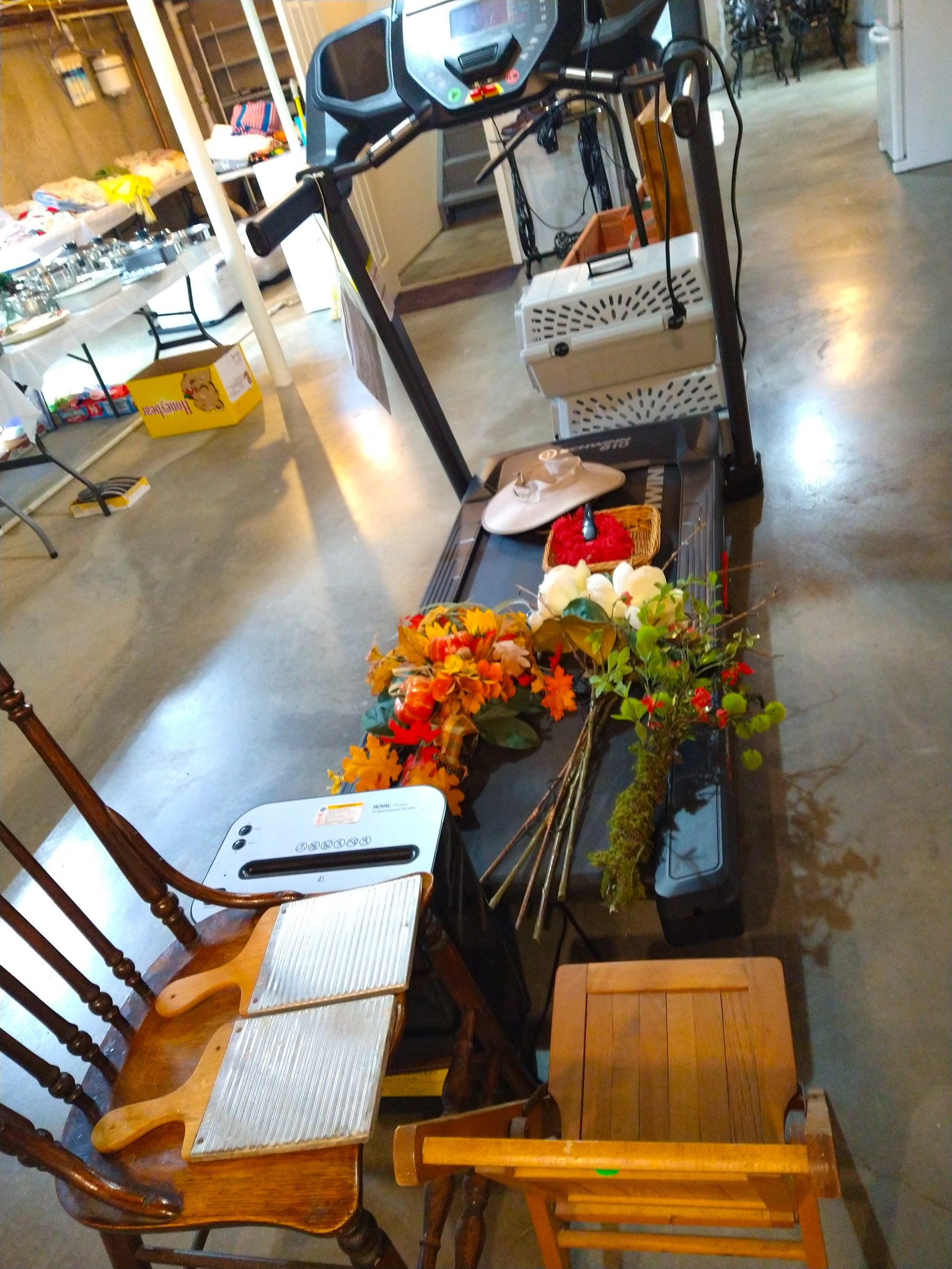 MISCELLANEOUS: FOCAL MICROSCOPE 1 TO 300X – PET BEDS – WIRE KENNELS 29X48, 20X36, 28X42 & 24X36 – SET MANON 10X50 BINOCULARS w/ CASE – MANY FLOWER POTS – BIRD CAGE WATERS – DETECTO MEDIC STANDING SCALE – CONTINENTAL STANDING SCALE – 2 METAL FLOWER VASES w/ LIGHTED ART DISPLAY – HAND WASH BOARDS – NICE SCHWINN # 810 TREADMILL – LARGE OFFERING ARTIFICIAL FLOWERS – 2 PET CARRIERS – DOCKERS MENS SHOES – WESTINGHOUSE BLUE RIBBED INSULATOR – OVER 40 TOTES w/ LIDS, ASST SIZES – HAND WEIGHTS – TARPS – WREATH STORAGE CONTAINERS – SHOE SHINE KIT – CDS – IRON MAIL BOX – LUGGAGE – PACKING BLANKETS – 4 DRAWER METAL FILE CABINET – STEEL TOE RUBBER BOOTS SIZE 9 – NICE GORILLA 4 WHEEL WAGON – IGLOO ICE CHESTS – BIRD FEEDERS – NEW 1000 FT OUTDOOR BWIRE – SEVERAL WIND CHIMES – JUSTRITE MILK CRATE – RUBBER MAID TRASH CAN – FOLDING YARD CHAIRS – NEW 17 IN X 24 IN WIRE KENNEL – NEW XTRA WIDE PET GATE – NEW PLAY YARD PASSAGE, 6 PANELS, 18.5 SQ FT – NEW CONVERTIBLE WALK THRU PET GATE & PLAY YARD, 20 FT – 2 METAL CABINETS w/ SHELVES & LOCKING DOORS – WATER HOSE – 5 GAL BUCKETS – NICE WEBER GAS 2 BURNER GRILL w/ COVER – BIRD BATH – MANY PLANTERS – LARGE IRON KETTLE PLANTER w/ BASE – LARGE IRON KETTLE PLANTER ON LEGS – DECORATOR BRICK – LARGE FLOWER POTS – YARD ART ON POLES & MORE