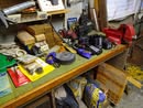 HAND & POWER TOOLS: 6 & 8 FT STEP LADDERS – NEW WORX 20 V ADJ POLE & CHAIN SAW – SET BOOSTER CABLES – ELECT POWER WASHER – RIGID 4 GAL PORT SHOP VAC – 2 WHEEL DOLLY – CLAW HAMMERS – PLIERS – MEASURE TAPES – POST HOLE AUGER – SHOVELS – SCRAPER – SPADE – SNOW SHOVELS – EXT CORDS – 28 FT METAL EXT LADDER – NEW 8 FT X 10 FT TARP – 12 VOLT 220 PSI PORT AIR COMP – 10 FT WOOD EXT LADDER – 3 FT STEP LADDER – CREEPER – B&D WORKMATE – METAL TOOL BOXES w/ TRAYS – NEW CRAFTSMAN RECIPROCATING SAW – FLUKE 77 MULTI METER – NEW GE BATTERY CHARGER – NEW CRAFTSMAN 4 IN 1 LASER TRAC LEVEL – NEW 75TH ANNIV RECIP SAW w/ CASE – NEW VISE GRIPS – NEW CRAFTSMAN 16 PC DRILL & POWER SCREW DRIVER SET – 1 ½ IN CLAMP ON VISE – NEW WELLER ELECT SOLDER GUN – GRAFTSMAN ROTARY TOOL – NEW B&D BELT SANDER – CRAFTSMAN ½ IN ELECT DRILL – SEARS PORT JIG SAW – NEW 12 IN TILE CUTTER – MITER SAW – B&D 7 ¼ IN CIRCULAR SAW – LARGE SEARS MITER SAW & METAL GUIDE – RIGID 12,18 & 24 IN PIPE WRENCHES – RIGID ALUM PIPE WRENCH – NAIL BARS – POP RIVETER – B&D 3 / 8 IN MILWAUKEE 3 / 8 IN DRILL – CRAFTSMAN 8.4 V DRILL – 4 IN BENCH VISE – IDEAL FISH TAPE – NEW FILE GUIDE & FILES – NEW CRAFTSMAN CLENCH WRENCH SET – NEW CRAFTSMAN 7 PC ROUTER BIT SET – NEW C.P. AIR CUT OFF TOOL – NEW CRAFTSMAN AIR RATCHET – NEW C.H. AIR GRINDER – NEW IMPACT DRIVER – WIGGINTON AC&DC VOLT METER – 2 SETS ROBINSON AIR GAUGES – B&D STAPLER – NEW SOLDER GUN – HAND SAWS – SLEDGES – SCOOP SHOVEL – 5 TINE FORK – WRECKING BARS – HATCHET – 2 NEW SELF IGNITING TORCH LIGHTS – BAR CLAMPS – SEARS 30 AMP BATTERY CHARGER – ADJ EXT ROLLER – NEW CRAFTSMAN 20 PC SCREWDRIVER SET –